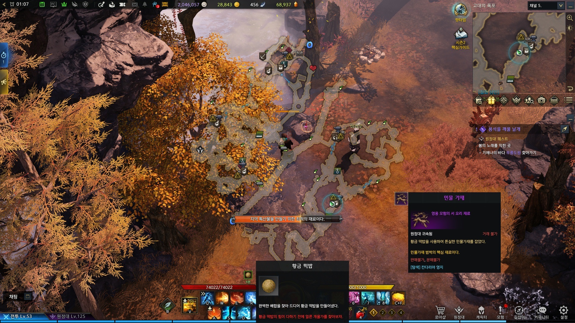 그 상태로 폭포 근처로 가면 버프가 황금 떡밥으로 변한다. 그 후 가재를 캐면 된다
