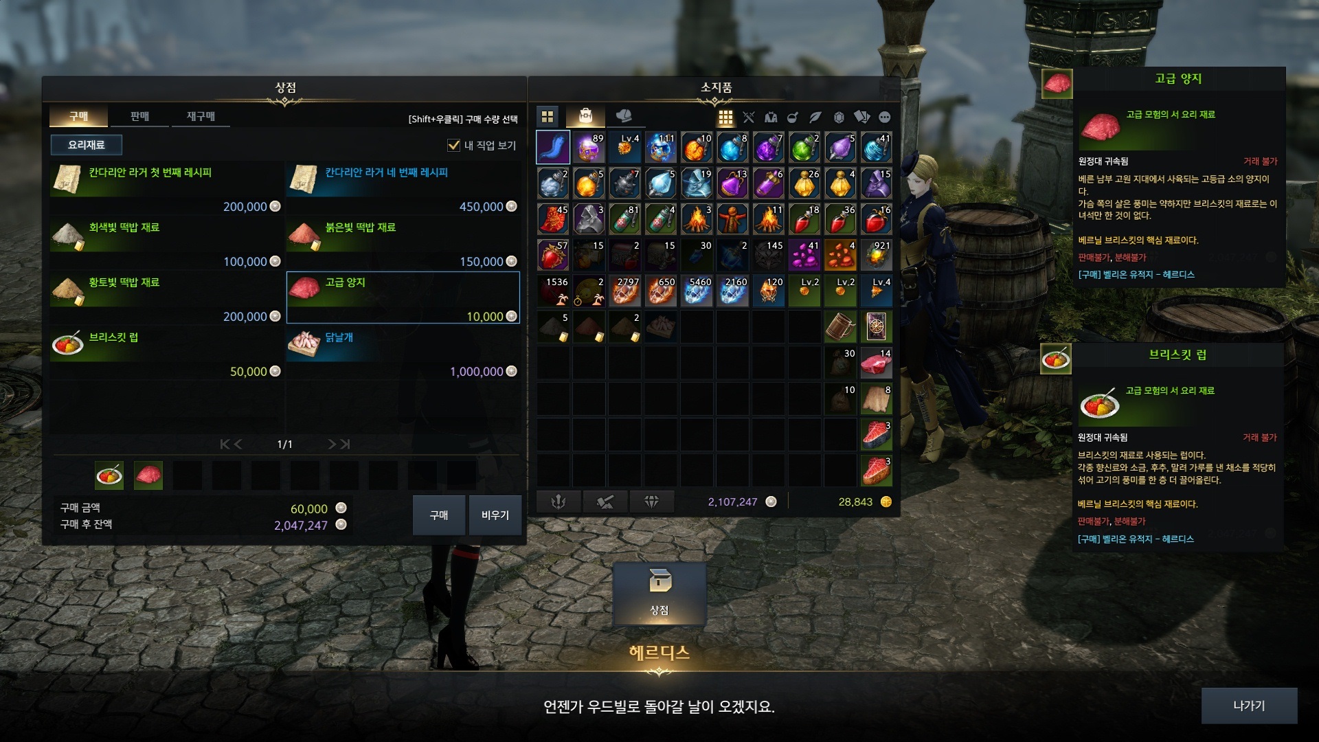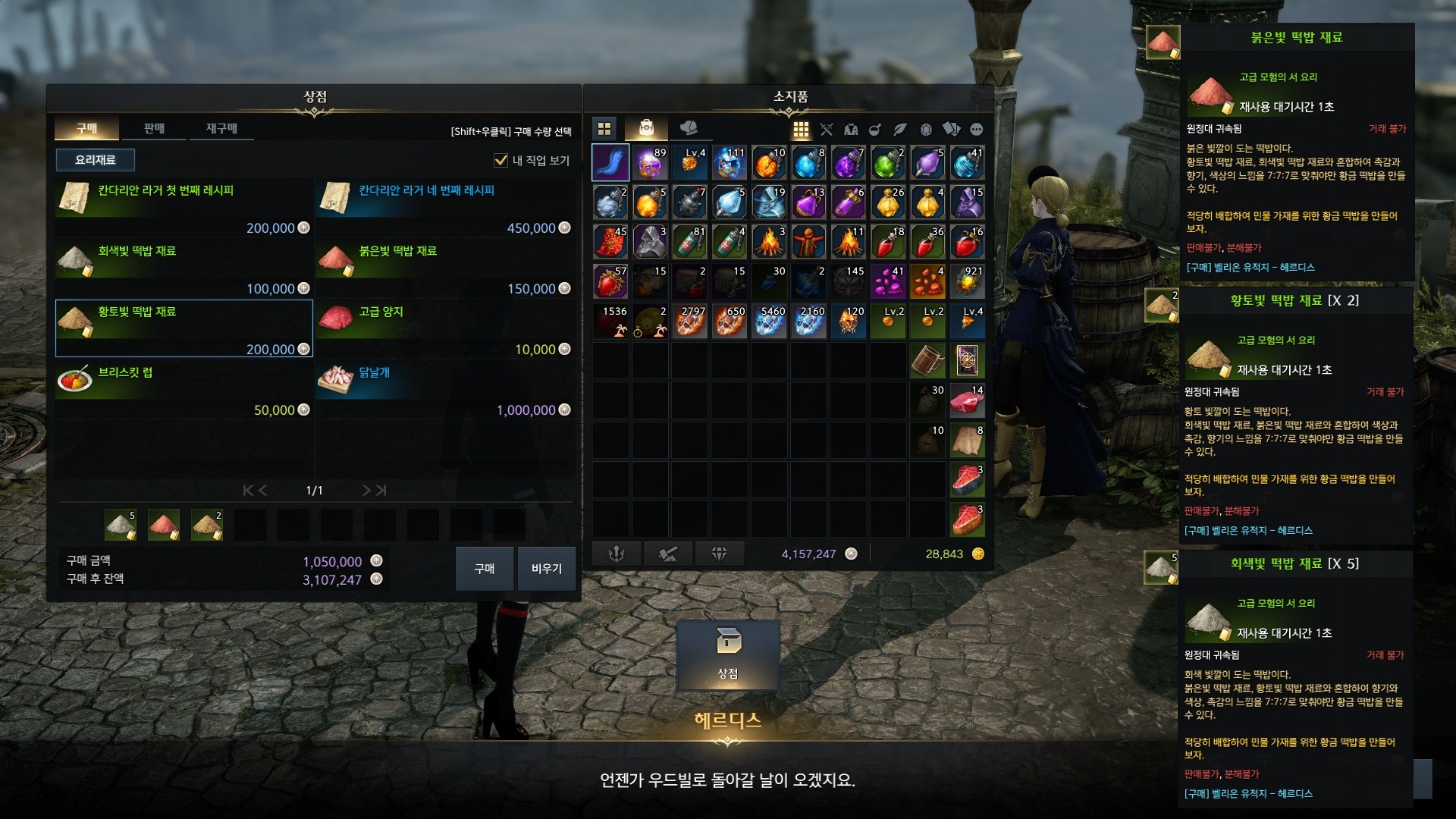 ※ 재료는 꼭 칸다리아 영지로 넘어간 후 쓰세요