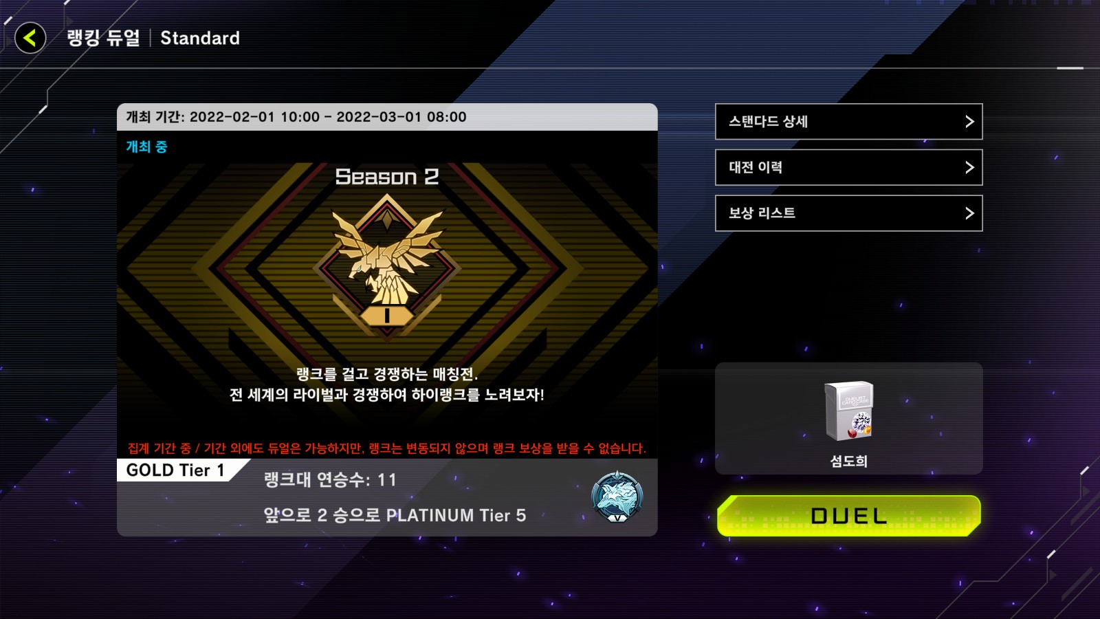 개인적으로 뒷심 있는 덱이라 생각해서 상대가 5성 호텔급으로 전개해놔도 패가 좋으면 뚫고 비빌만하니 서렌안치고 바짓가랭이 끝까지 잡아보자