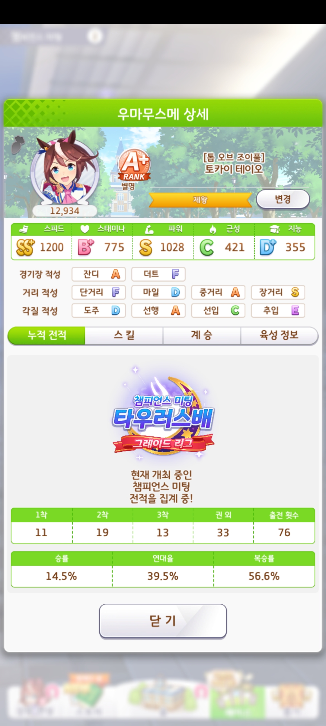 팀레용 테이오랑 급하게 깎은 애들 데리고 우승한거보니 운빨갓흥겜인듯?