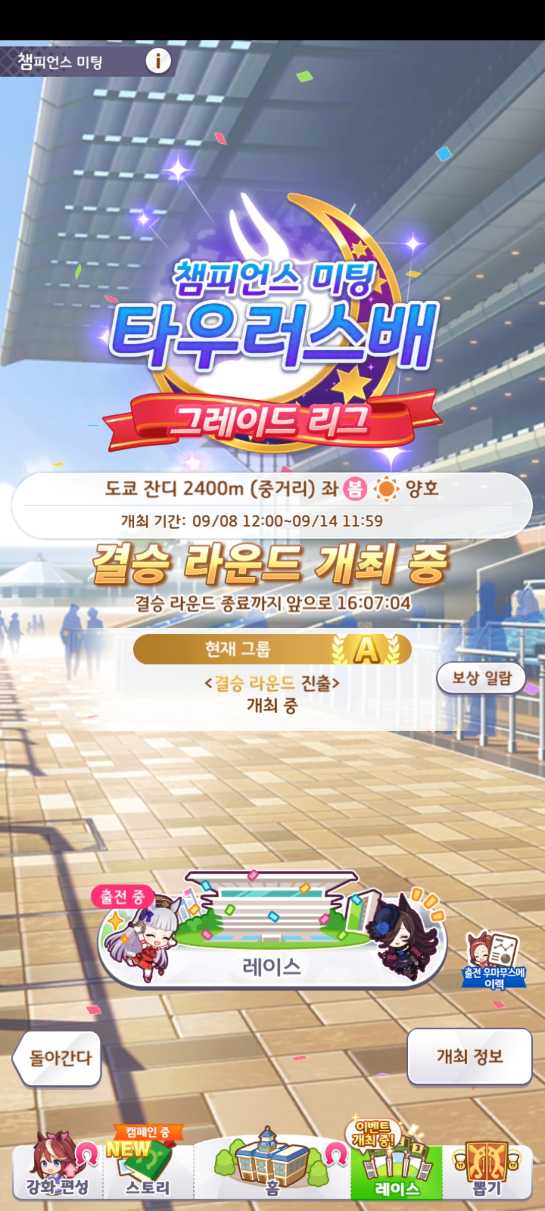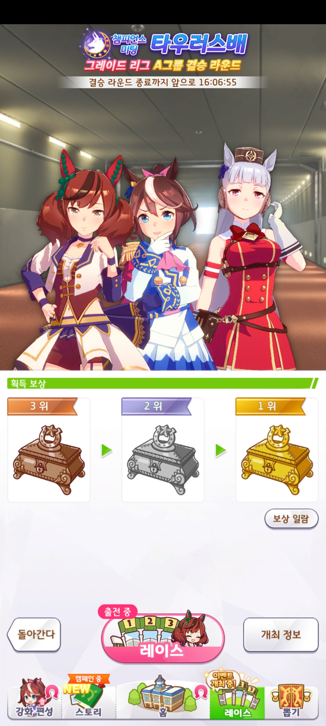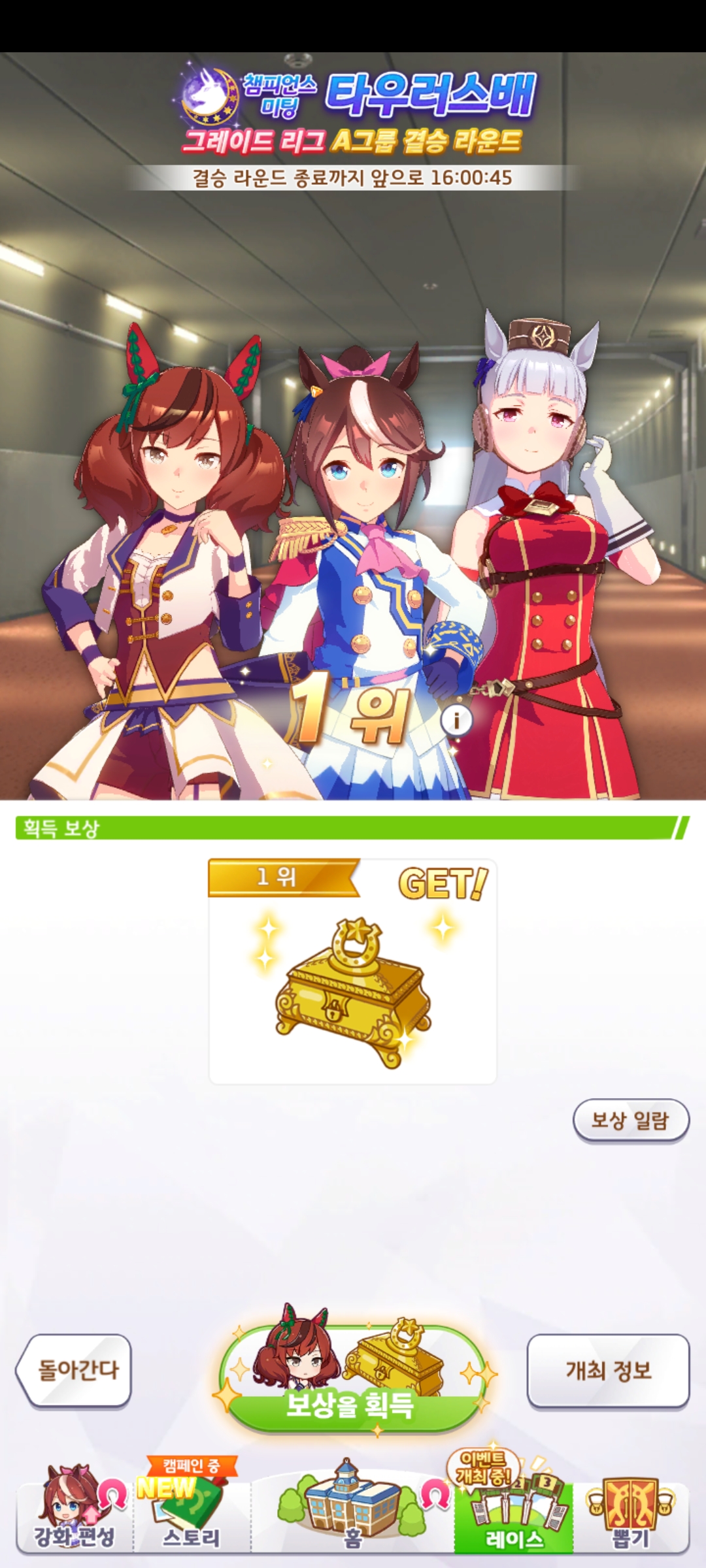 | 우마무스메 프리티 더비 챔피언스 미팅 2회차 아쿠아리우스배 우승 (0) | 2024.06.16 |