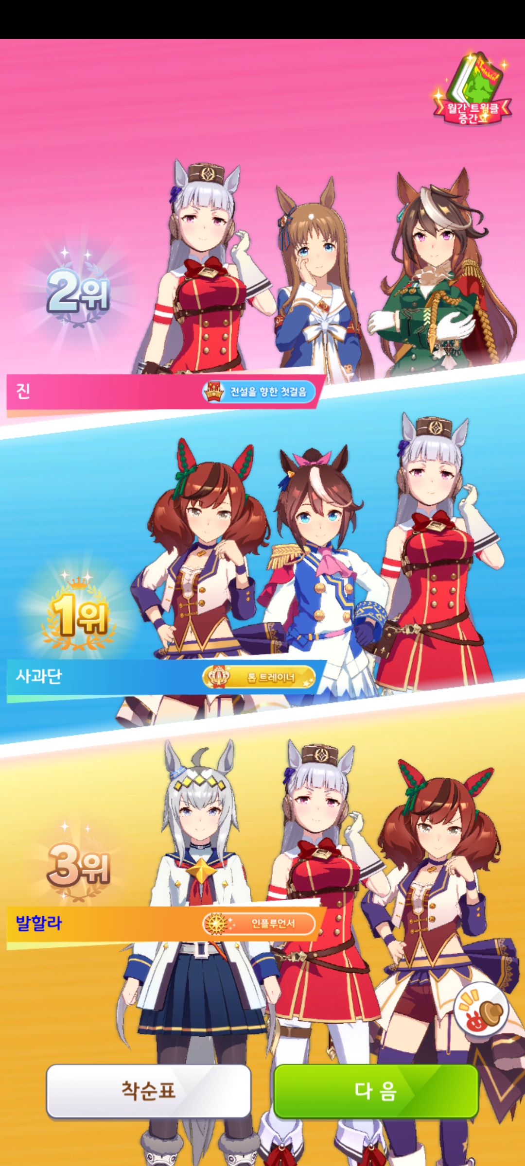 | 우마무스메 프리티 더비 1회차 리그 오브 히어로스 플래티넘4 (0) | 2024.10.10 |