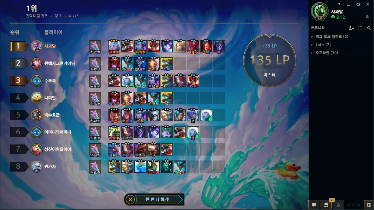 | 전략적 팀 전투 시즌6.5 마스터 (0) | 2022.04.02 |