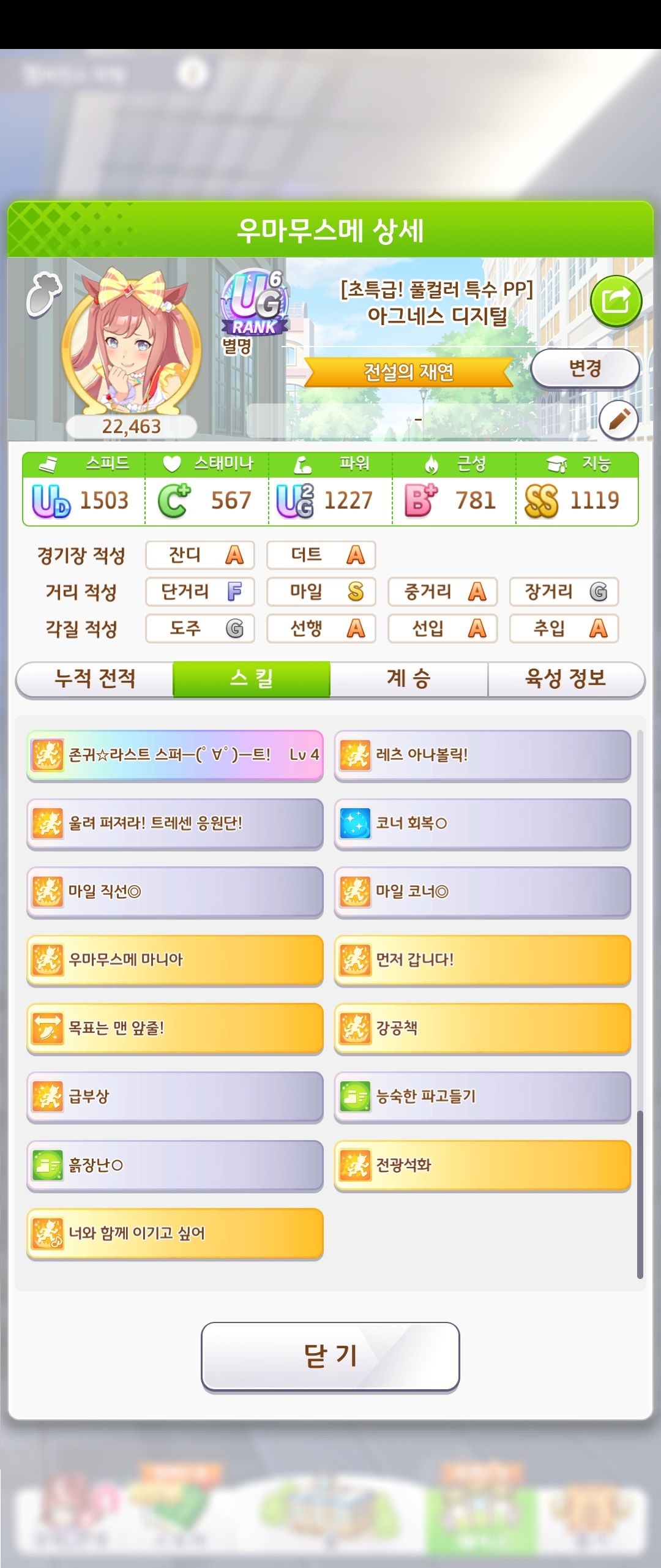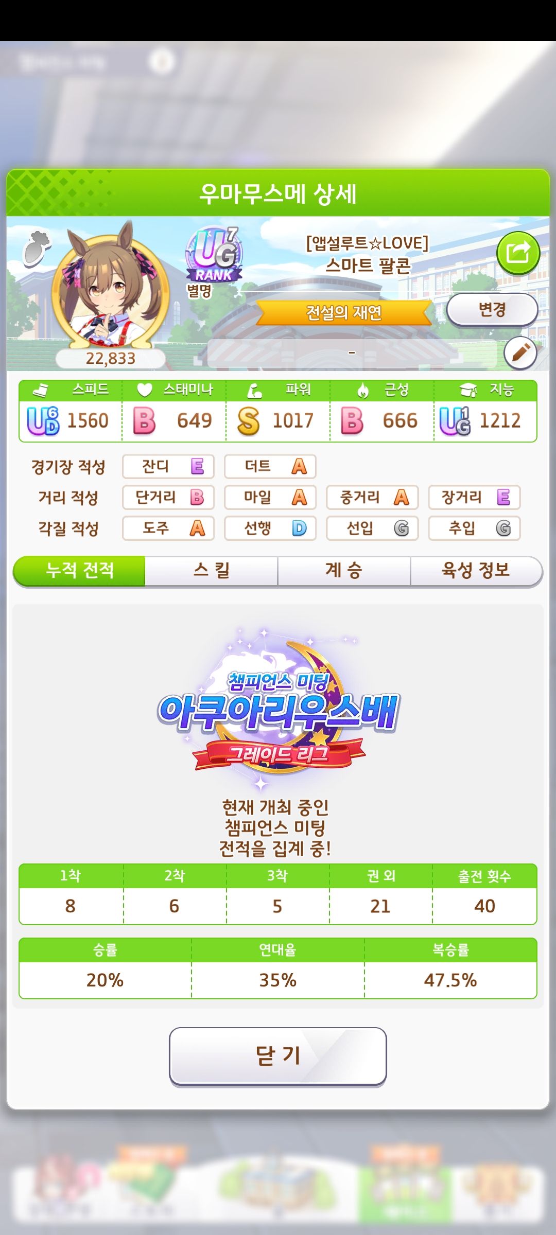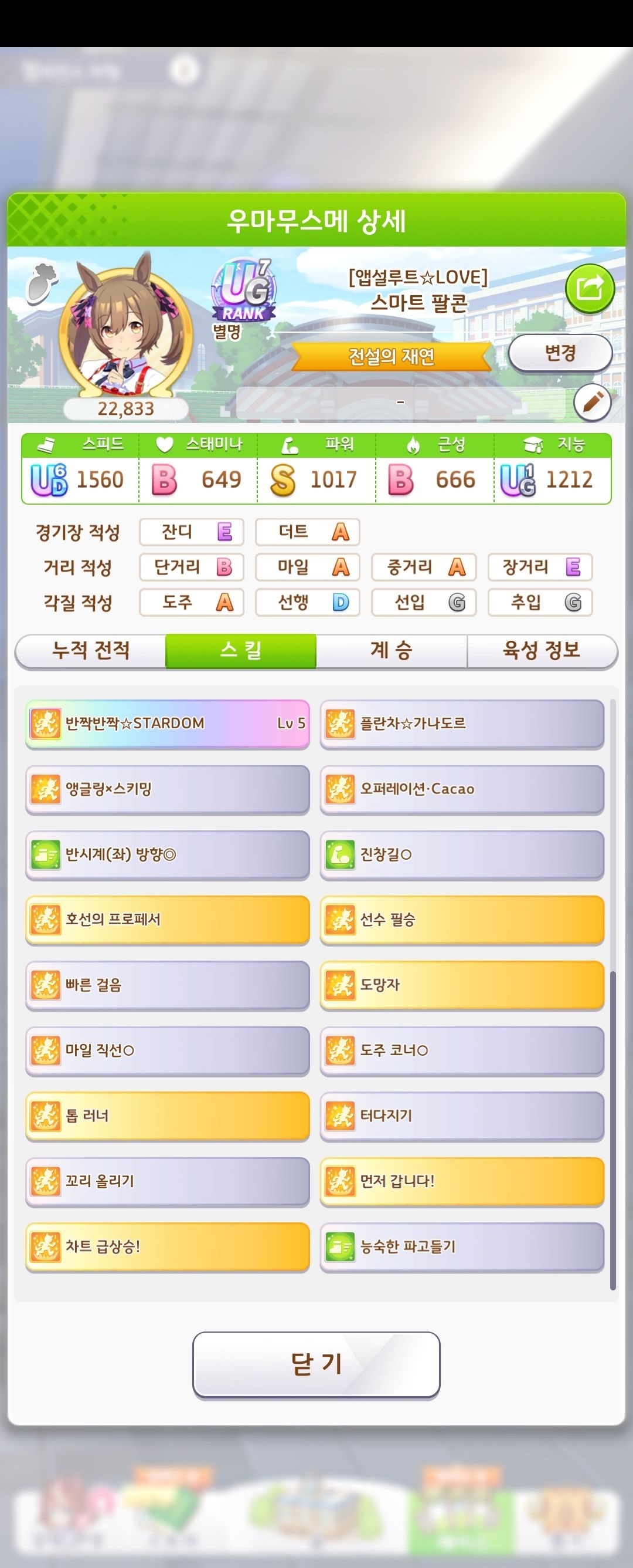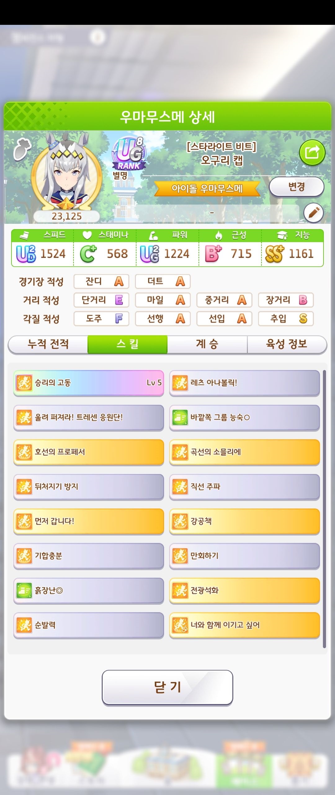 거리는 못받았는데 적당히 스탯붙고 금딱 다붙어서 던진 우승마 오구리 캡