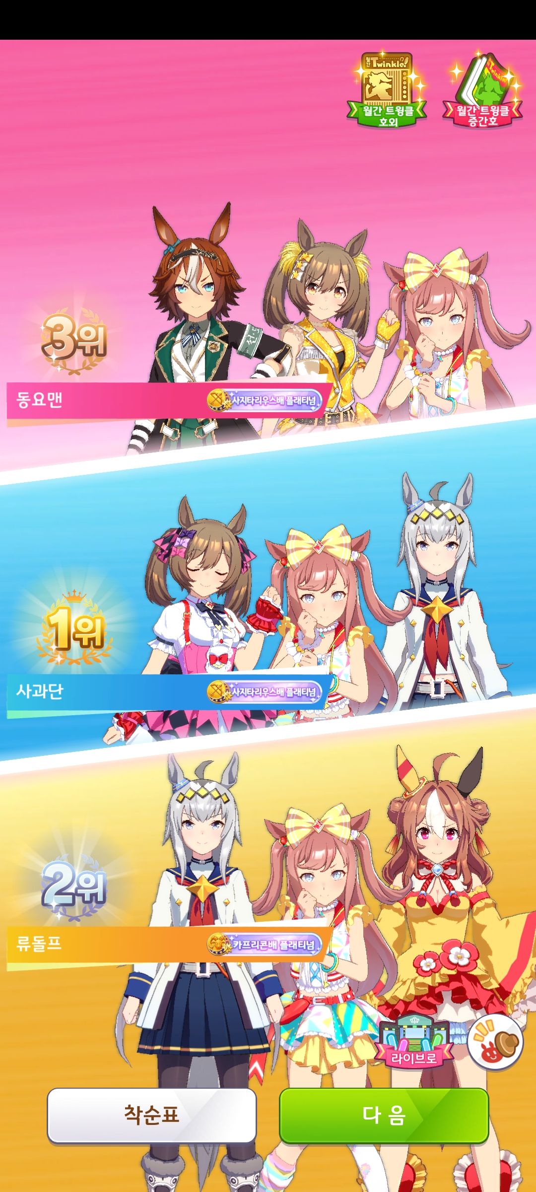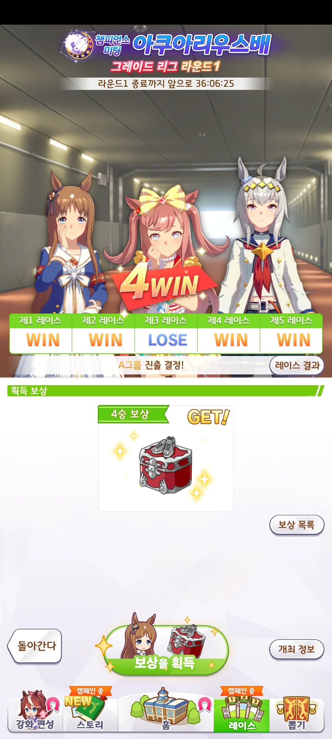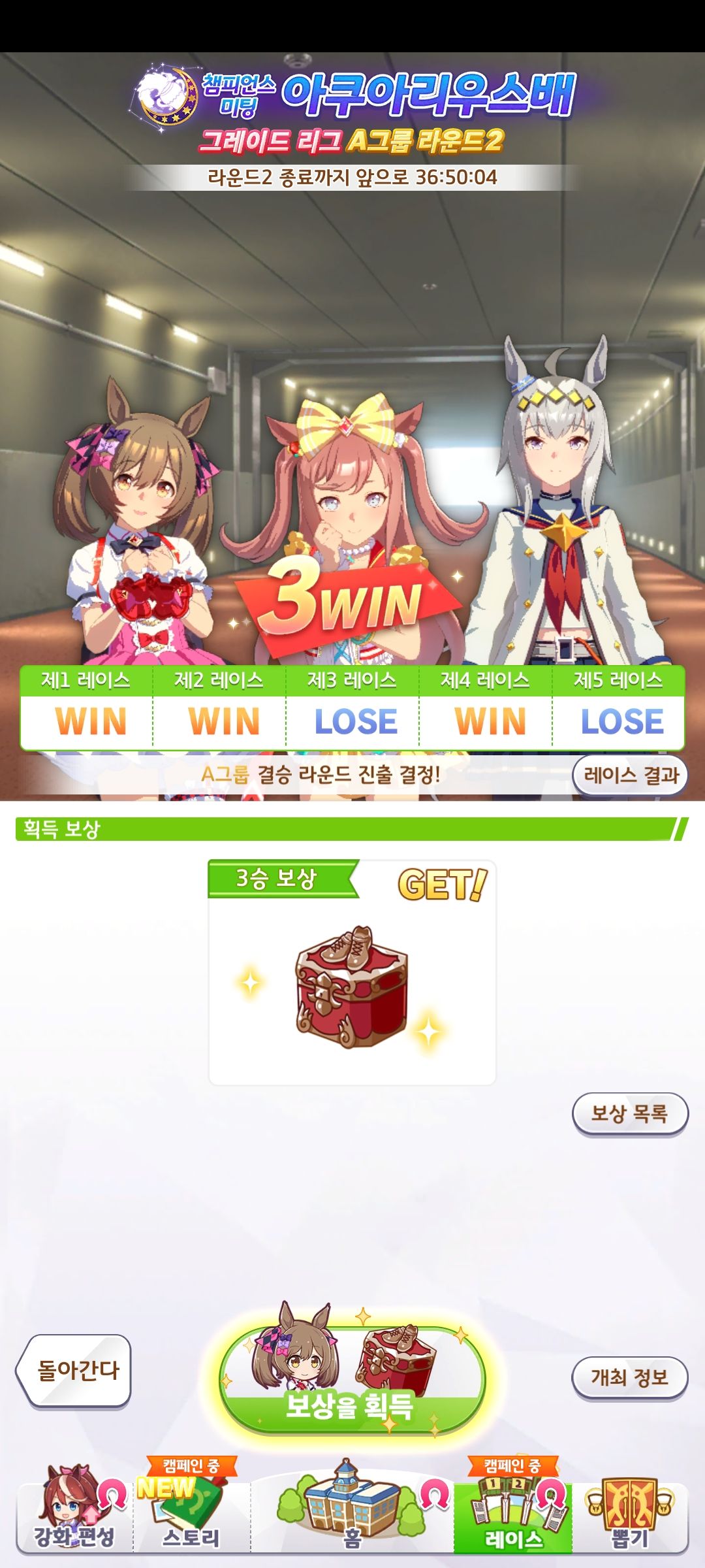 | 우마무스메 프리티 더비 챔피언스 미팅 2회차 타우러스배 우승 (0) | 2023.09.18 |
