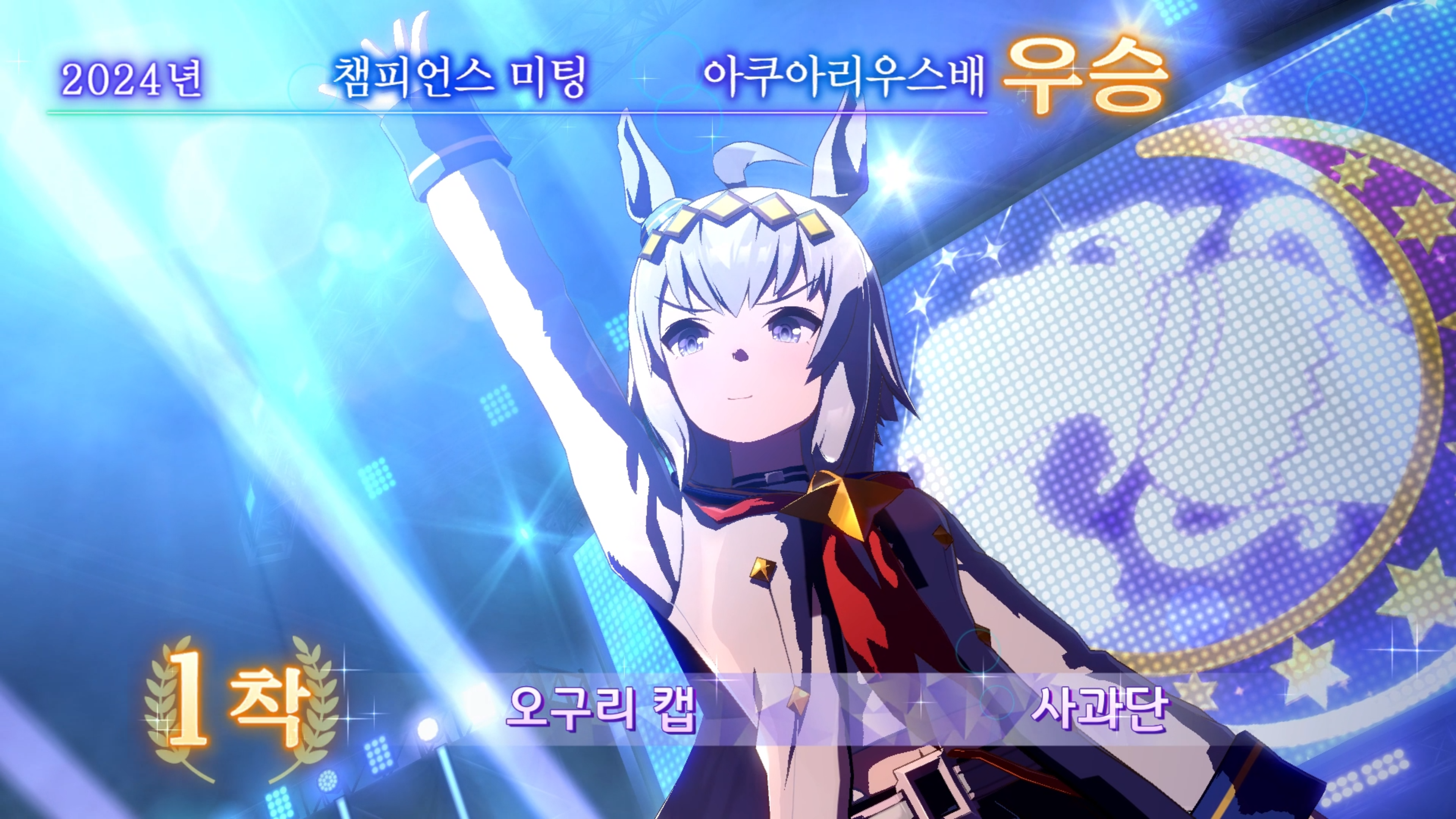 | 우마무스메 프리티 더비 챔피언스 미팅 MILE 우승 (0) | 2024.10.11 |