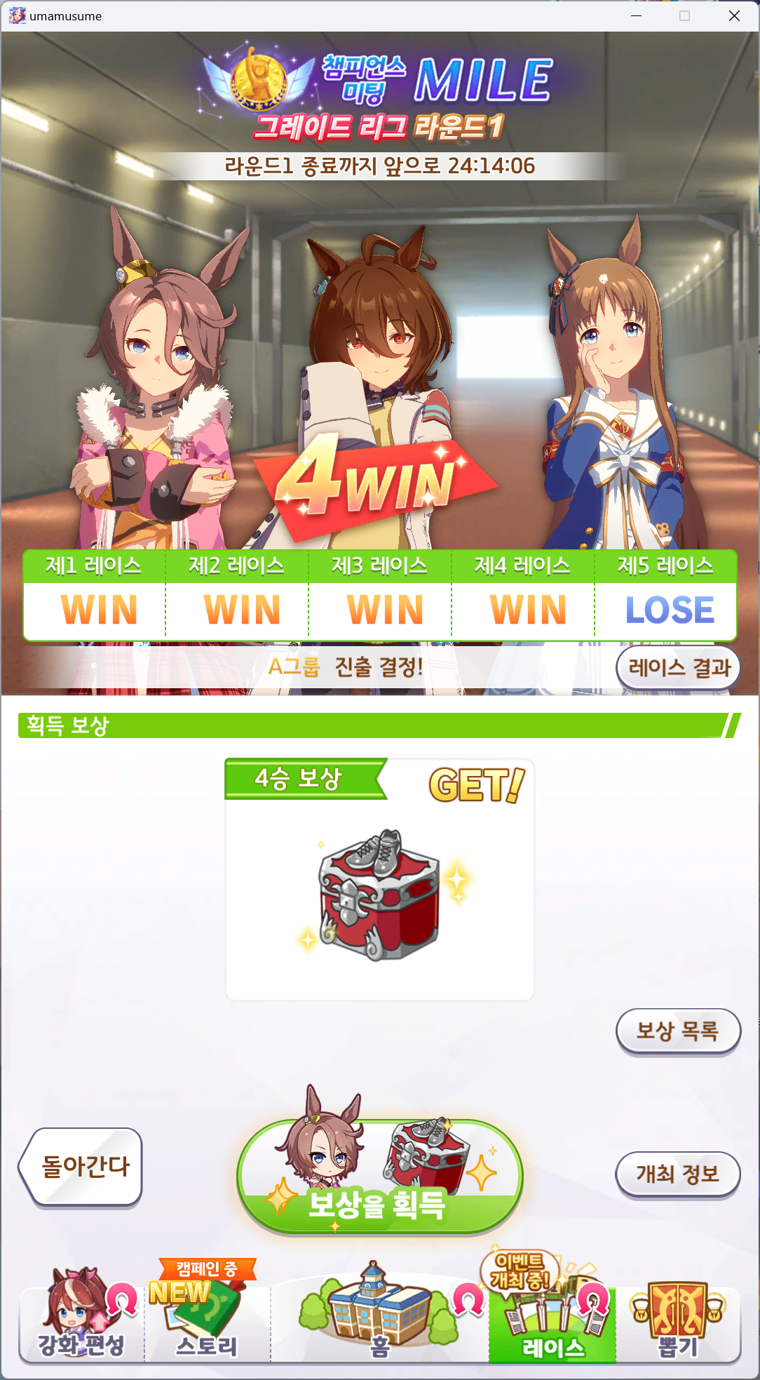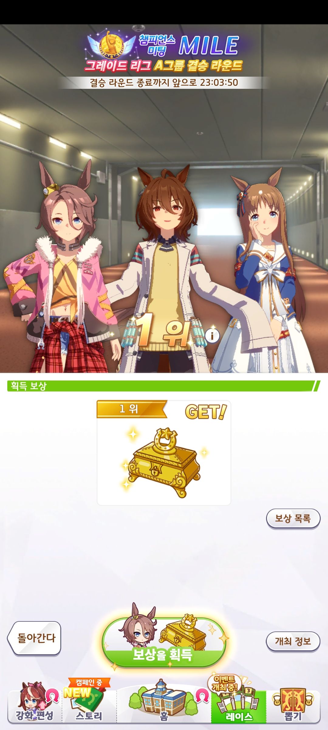 | 우마무스메 프리티 더비 챔피언스 미팅 2회차 아쿠아리우스배 우승 (0) | 2024.06.16 |