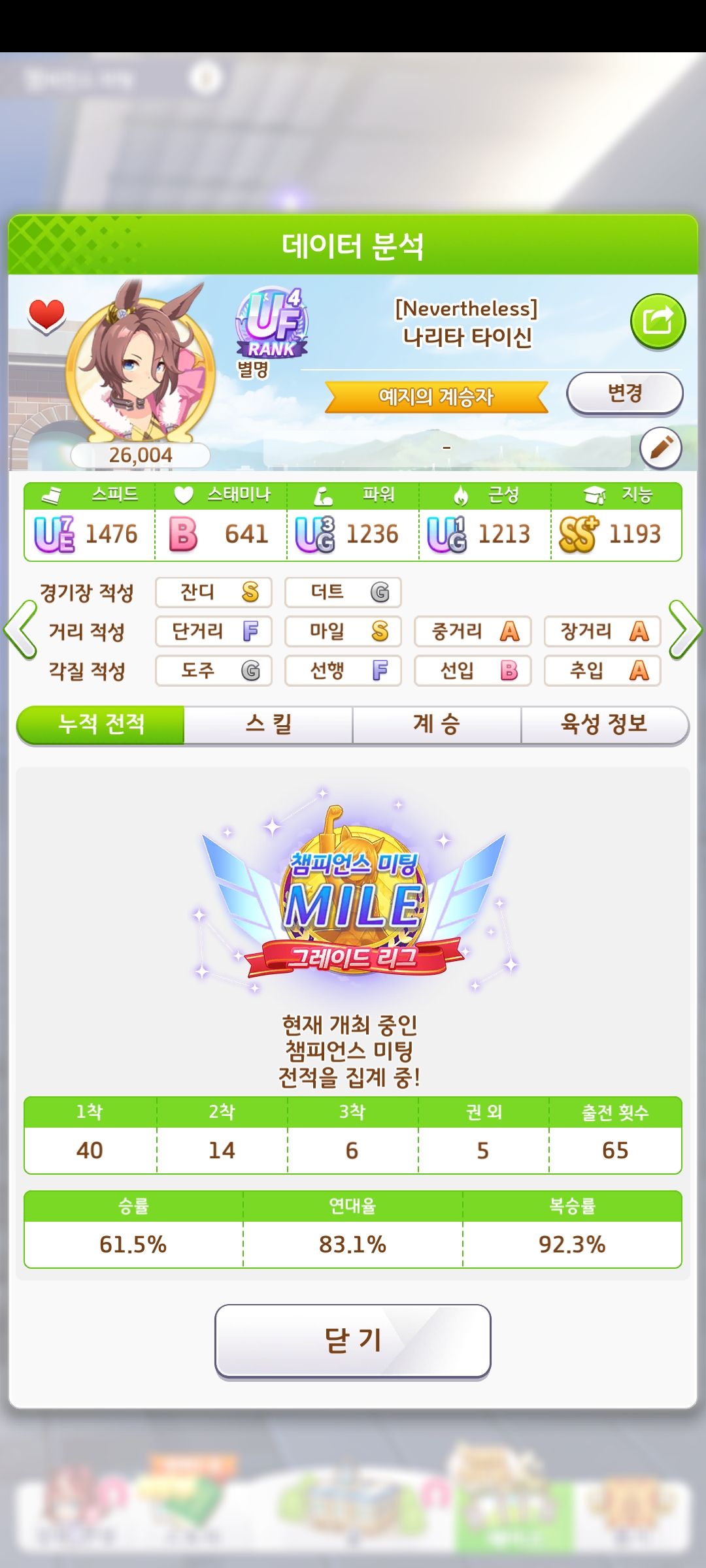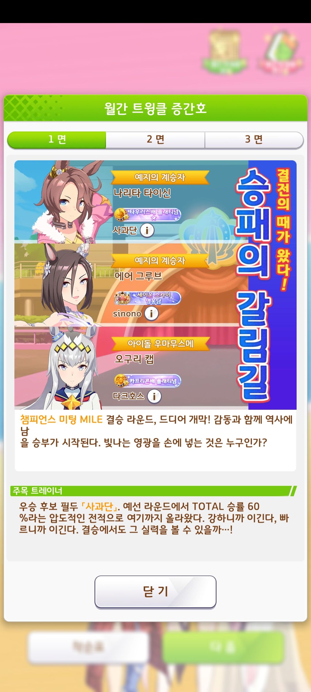 금딱, 마일S는 다 붙어서 독독이랑 냈더니 우승시켜준 나리타 타이신