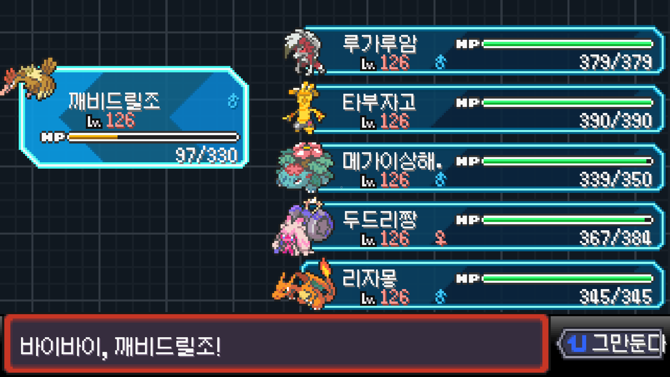 용춤 2스택쌓은 메가갸라도스로 메타그로스 컷