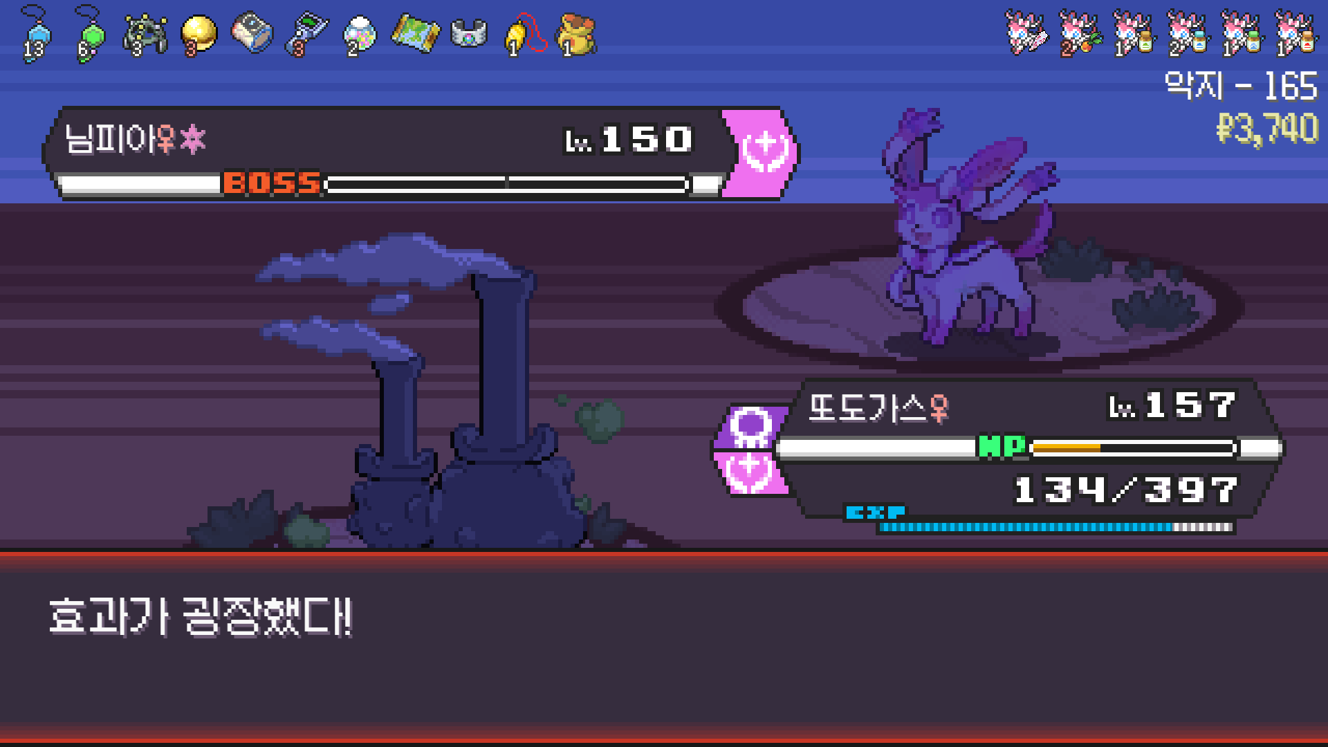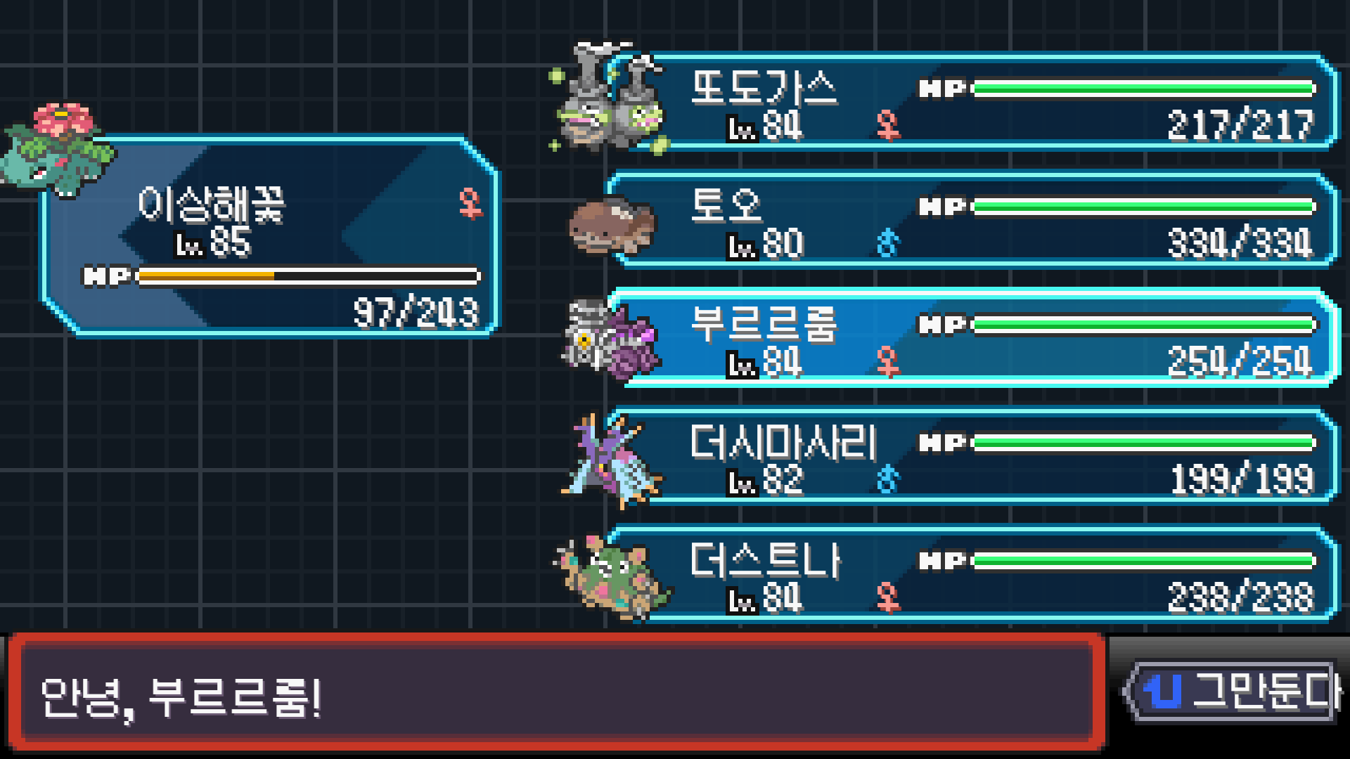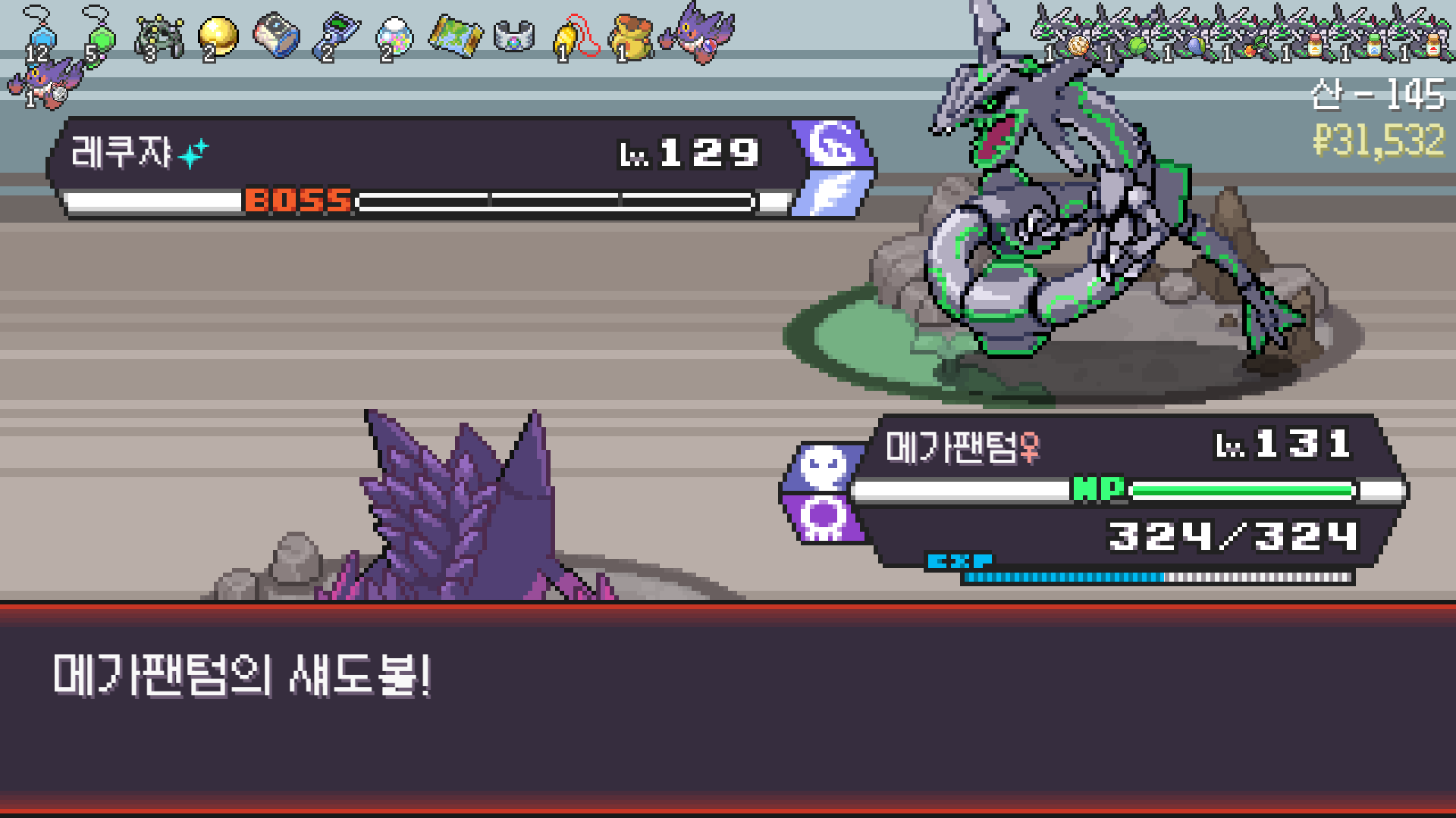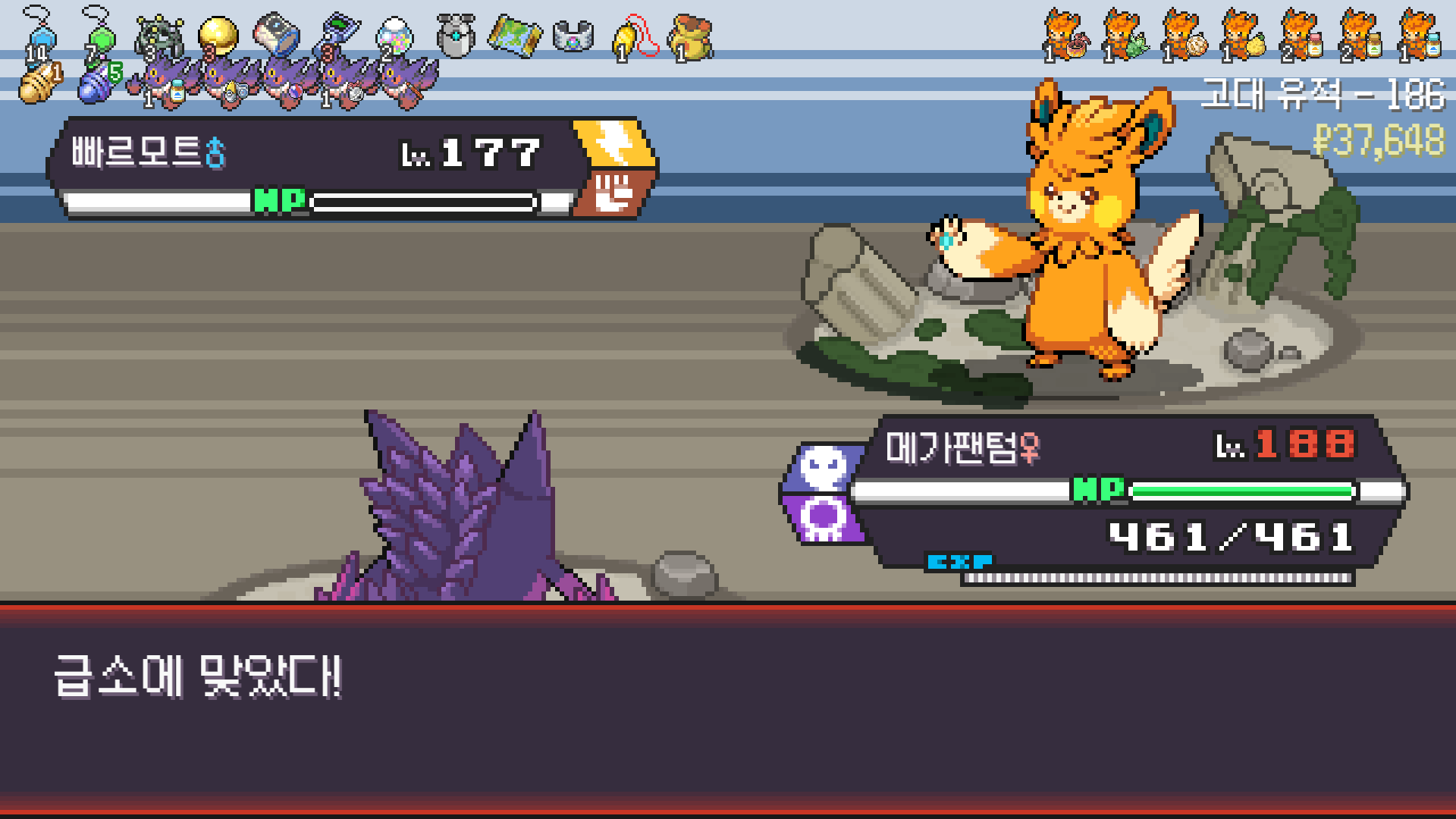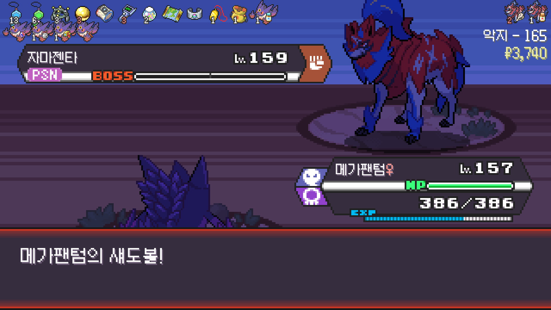 패배의 경험을 토대로 체감 구렸던 부르르룸은 팬텀나왔을때 바로 유기시키고 메가진화 못시키니 쓸모없는 독침붕대신 든든한 탱커라인들 추가하니 돈 관리도 잘되서 버프도 다 찾는등 선순환이 계속 이어져서 무난하게 클리어했다.