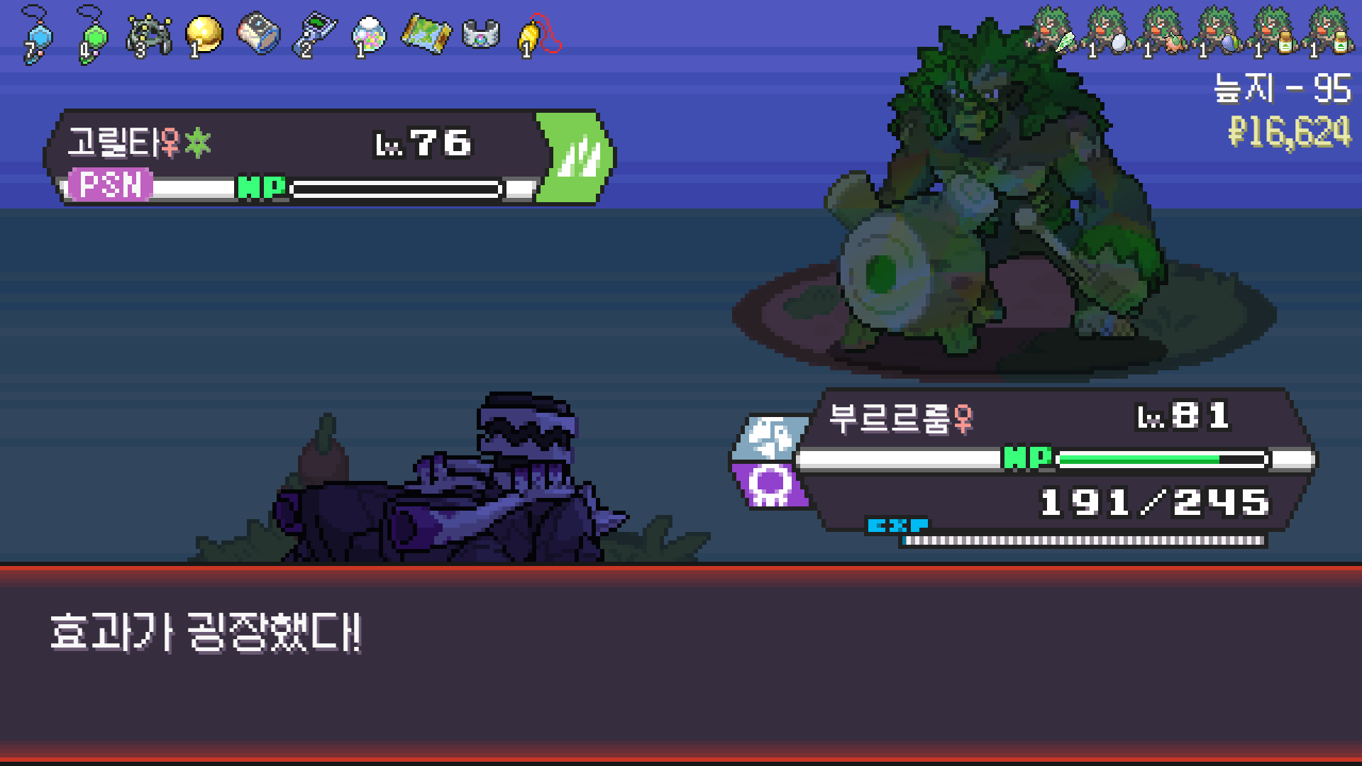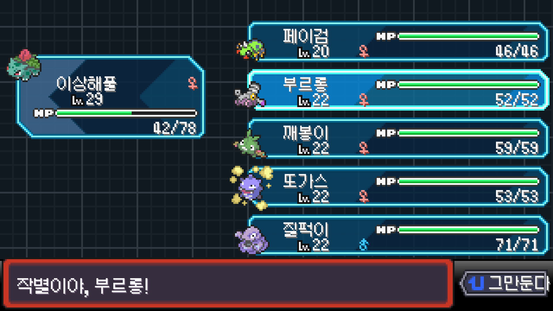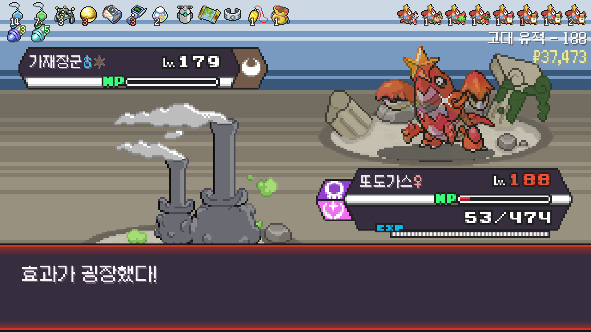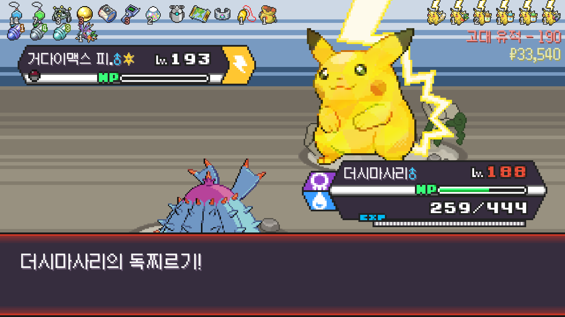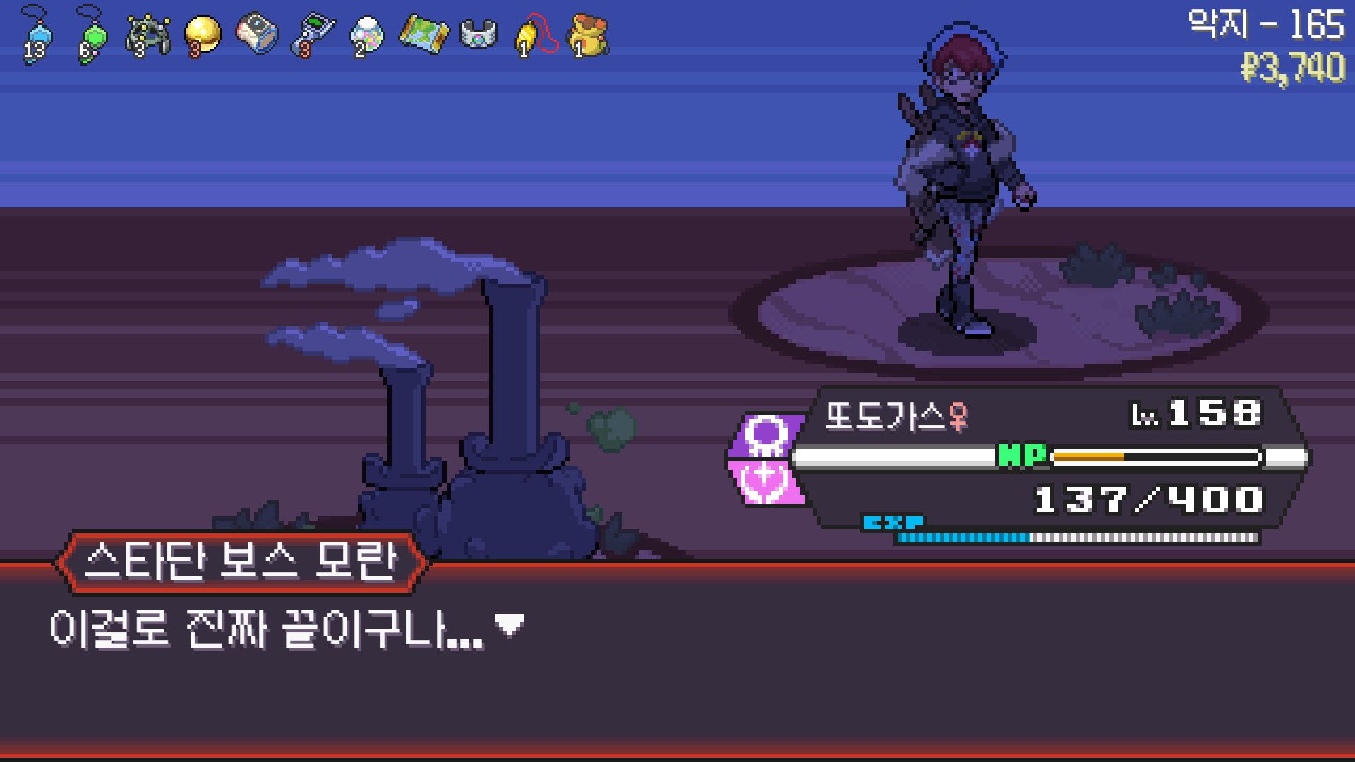 패배의 경험을 토대로 체감 구렸던 부르르룸은 팬텀나왔을때 바로 유기시키고 메가진화 못시키니 쓸모없는 독침붕대신 든든한 탱커라인들 추가하니 돈 관리도 잘되서 버프도 다 찾는등 선순환이 계속 이어져서 무난하게 클리어했다.