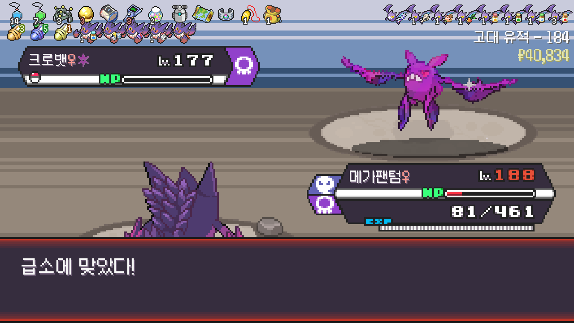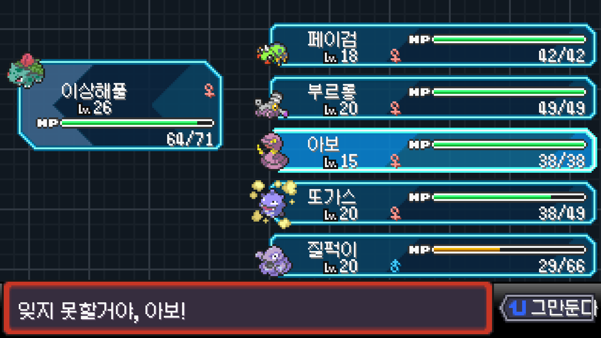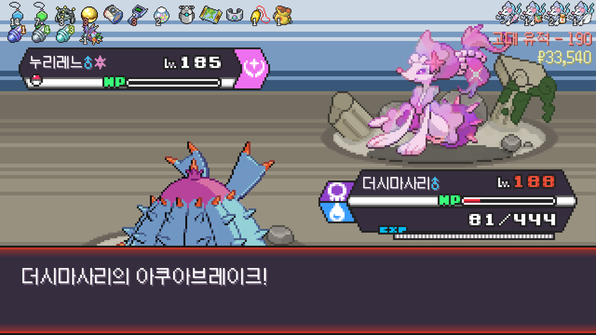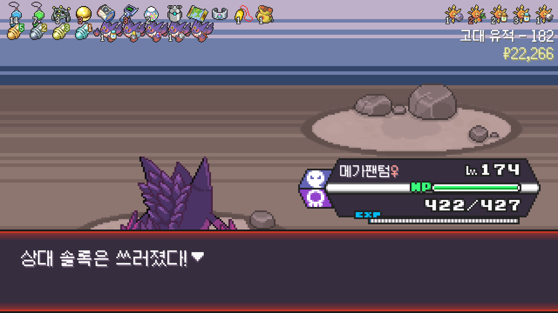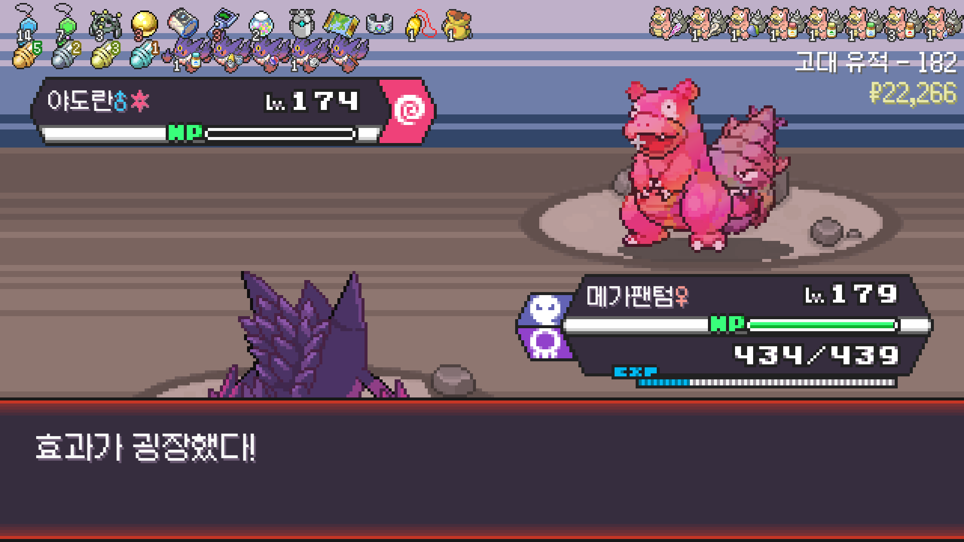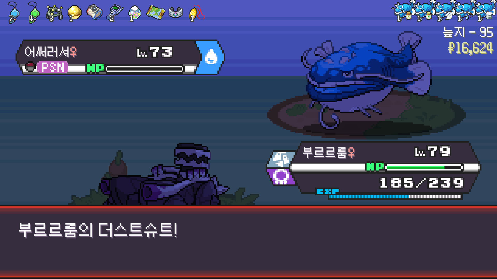 패배의 경험을 토대로 체감 구렸던 부르르룸은 팬텀나왔을때 바로 유기시키고 메가진화 못시키니 쓸모없는 독침붕대신 든든한 탱커라인들 추가하니 돈 관리도 잘되서 버프도 다 찾는등 선순환이 계속 이어져서 무난하게 클리어했다.