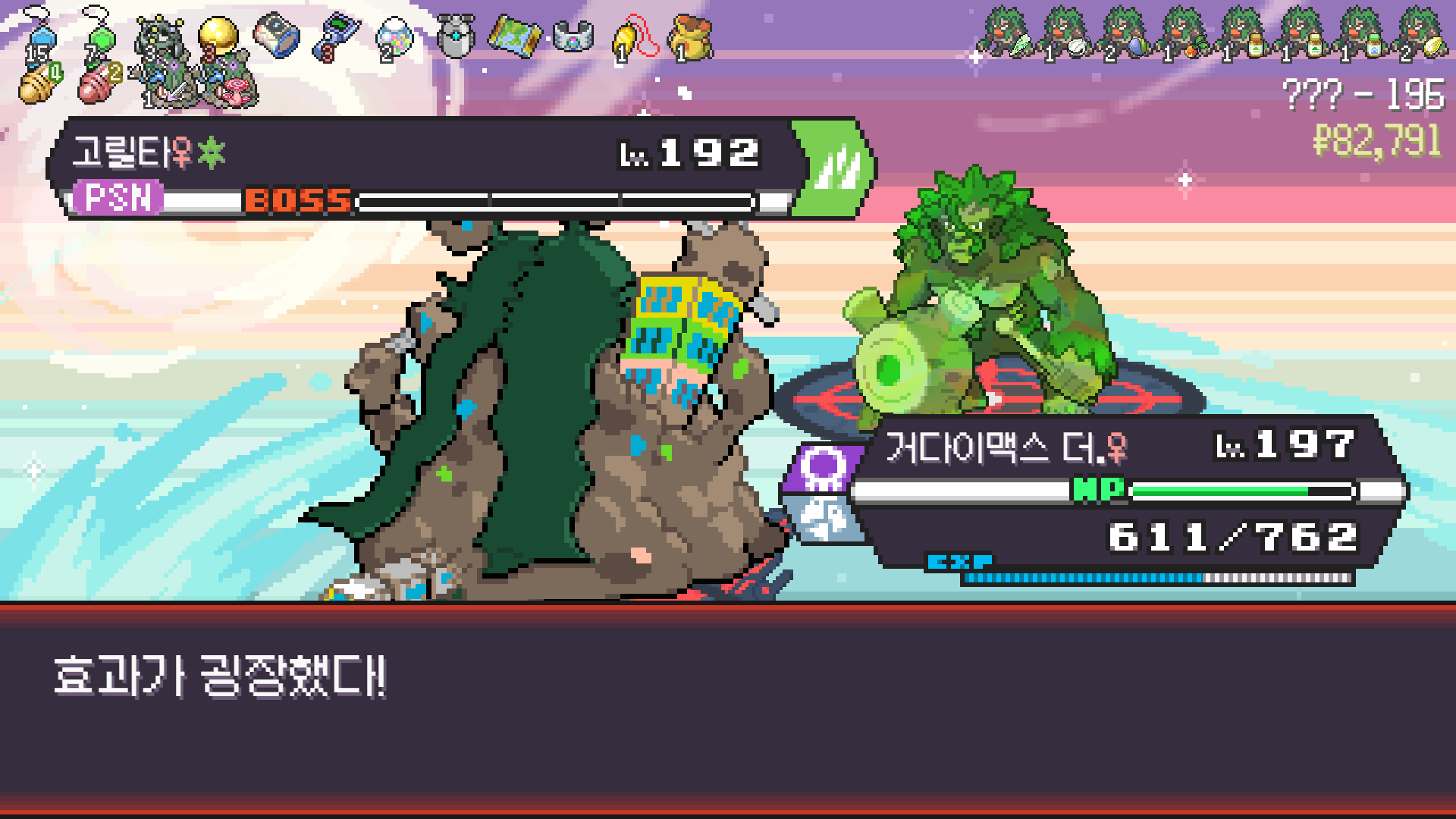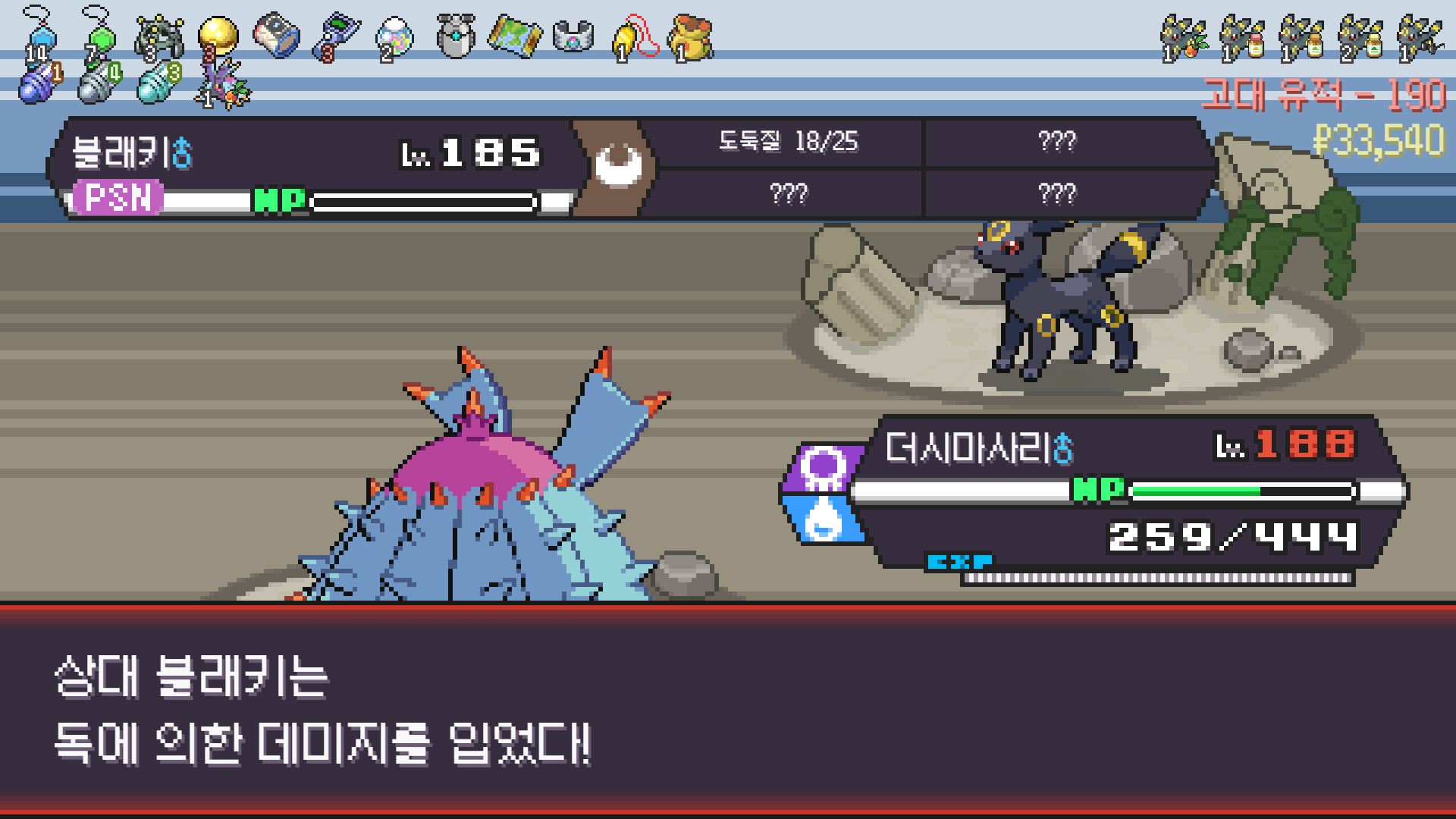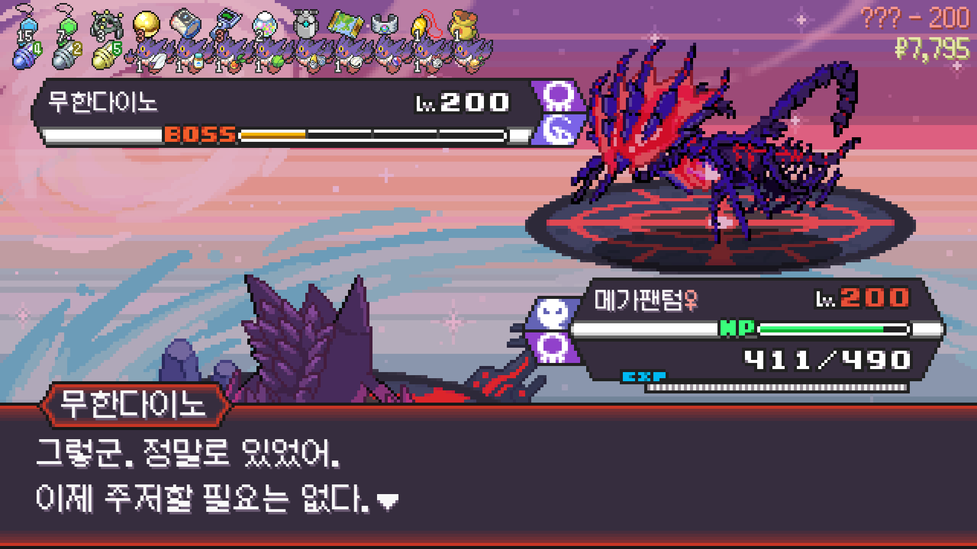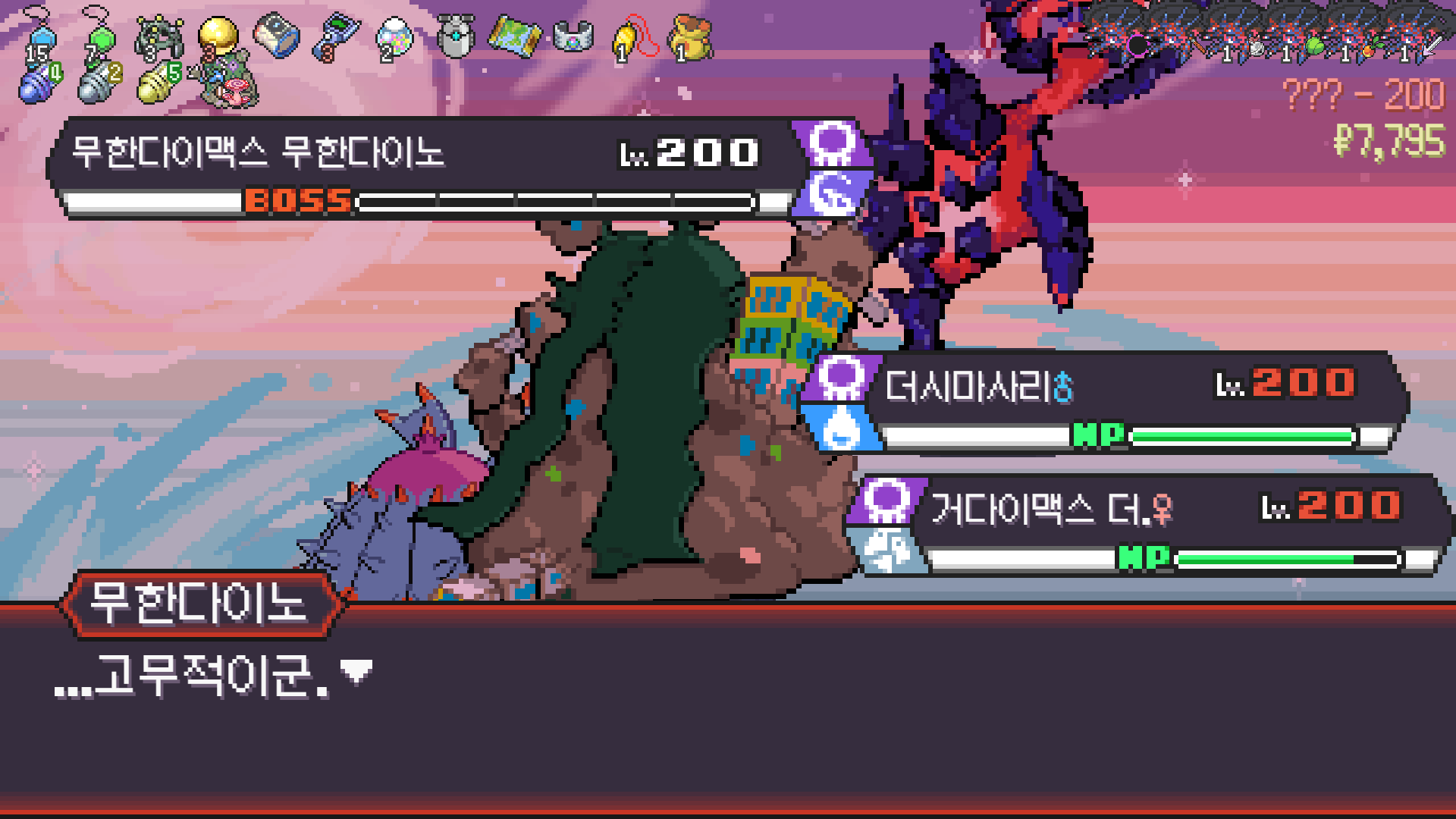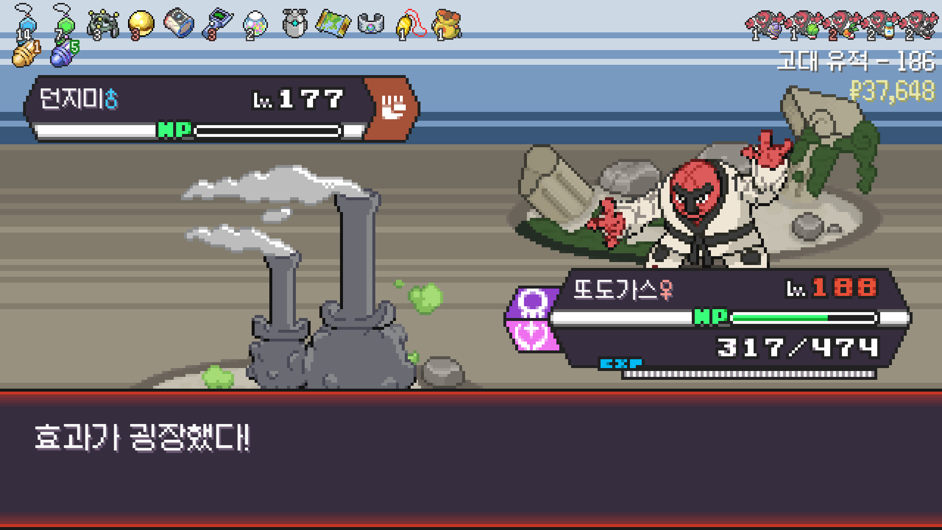 패배의 경험을 토대로 체감 구렸던 부르르룸은 팬텀나왔을때 바로 유기시키고 메가진화 못시키니 쓸모없는 독침붕대신 든든한 탱커라인들 추가하니 돈 관리도 잘되서 버프도 다 찾는등 선순환이 계속 이어져서 무난하게 클리어했다.