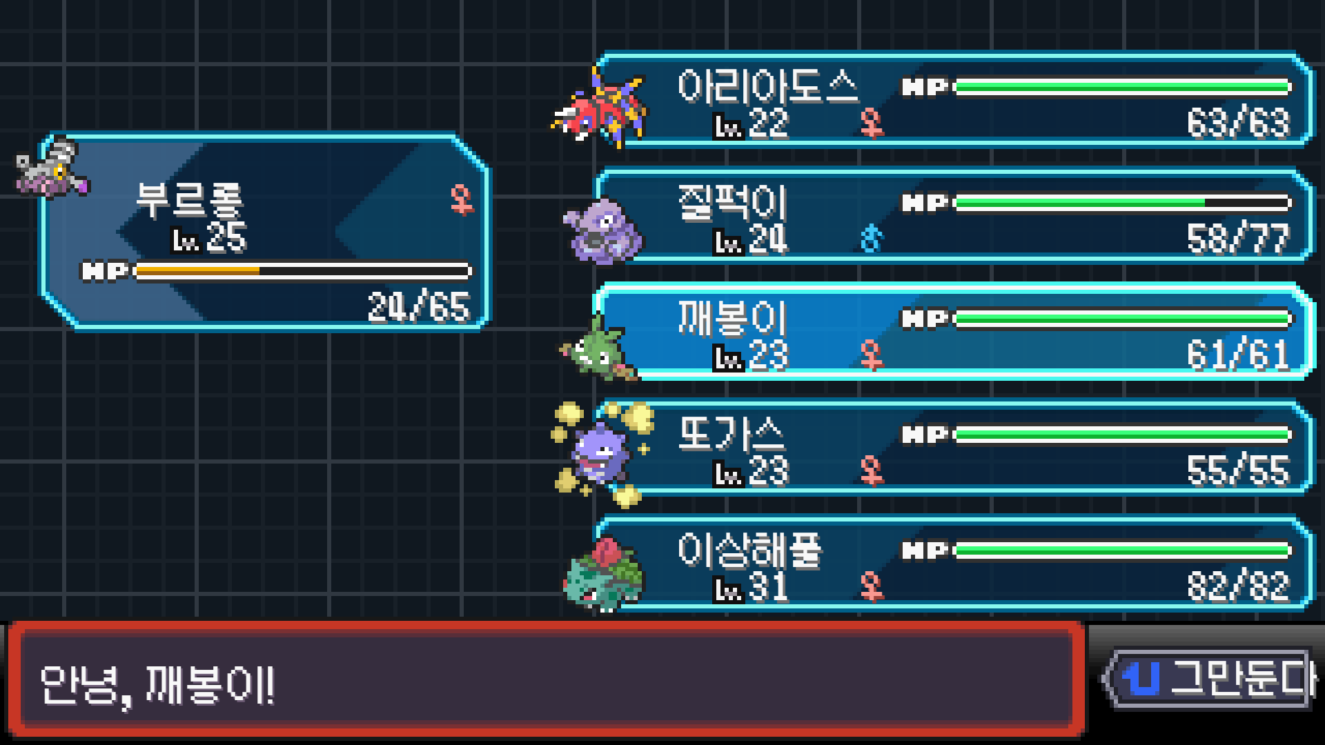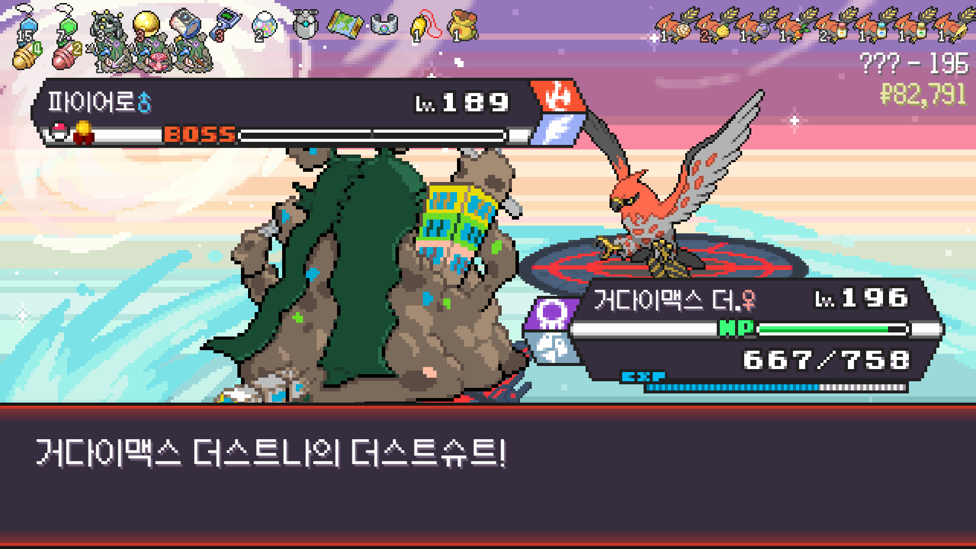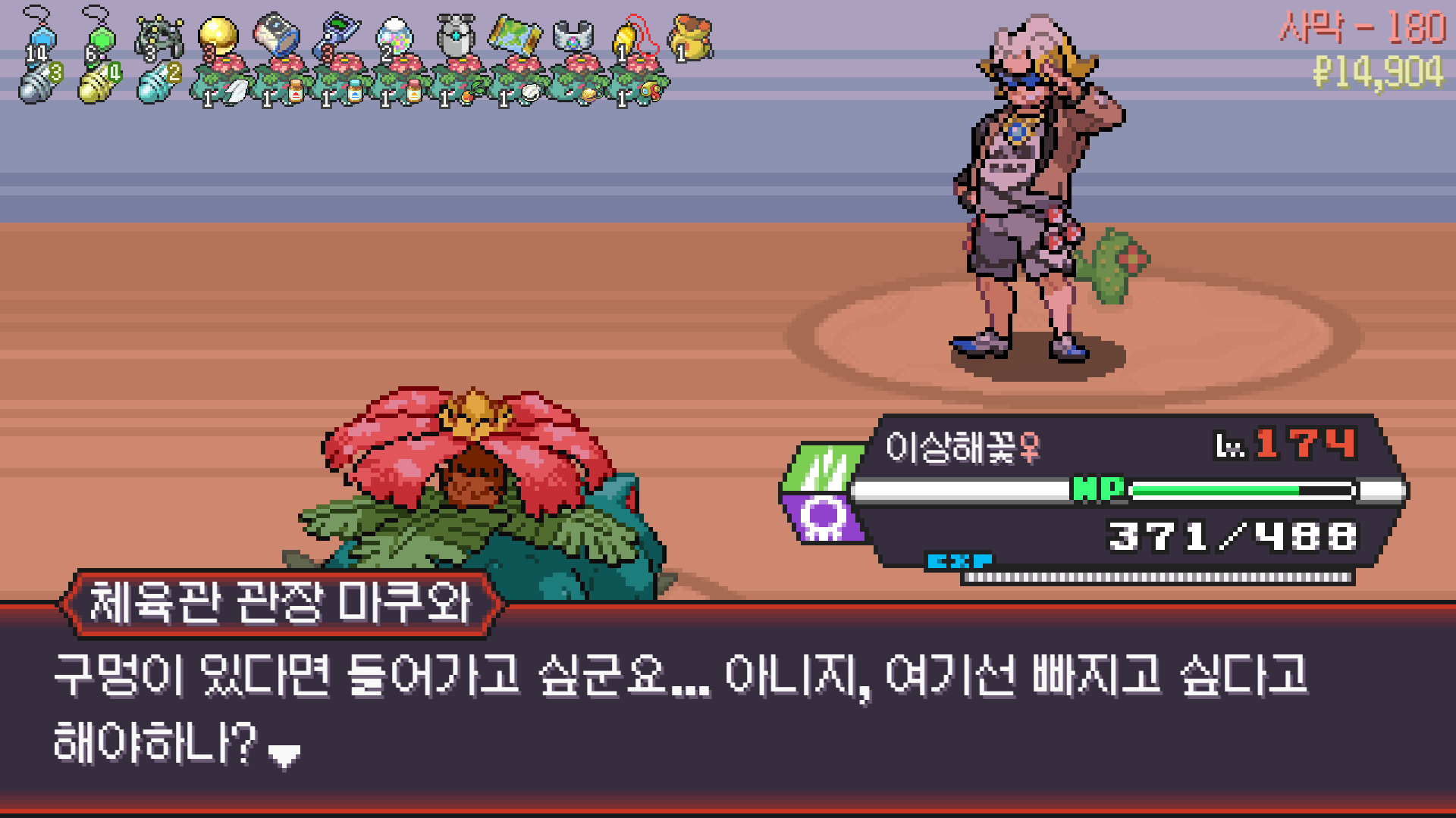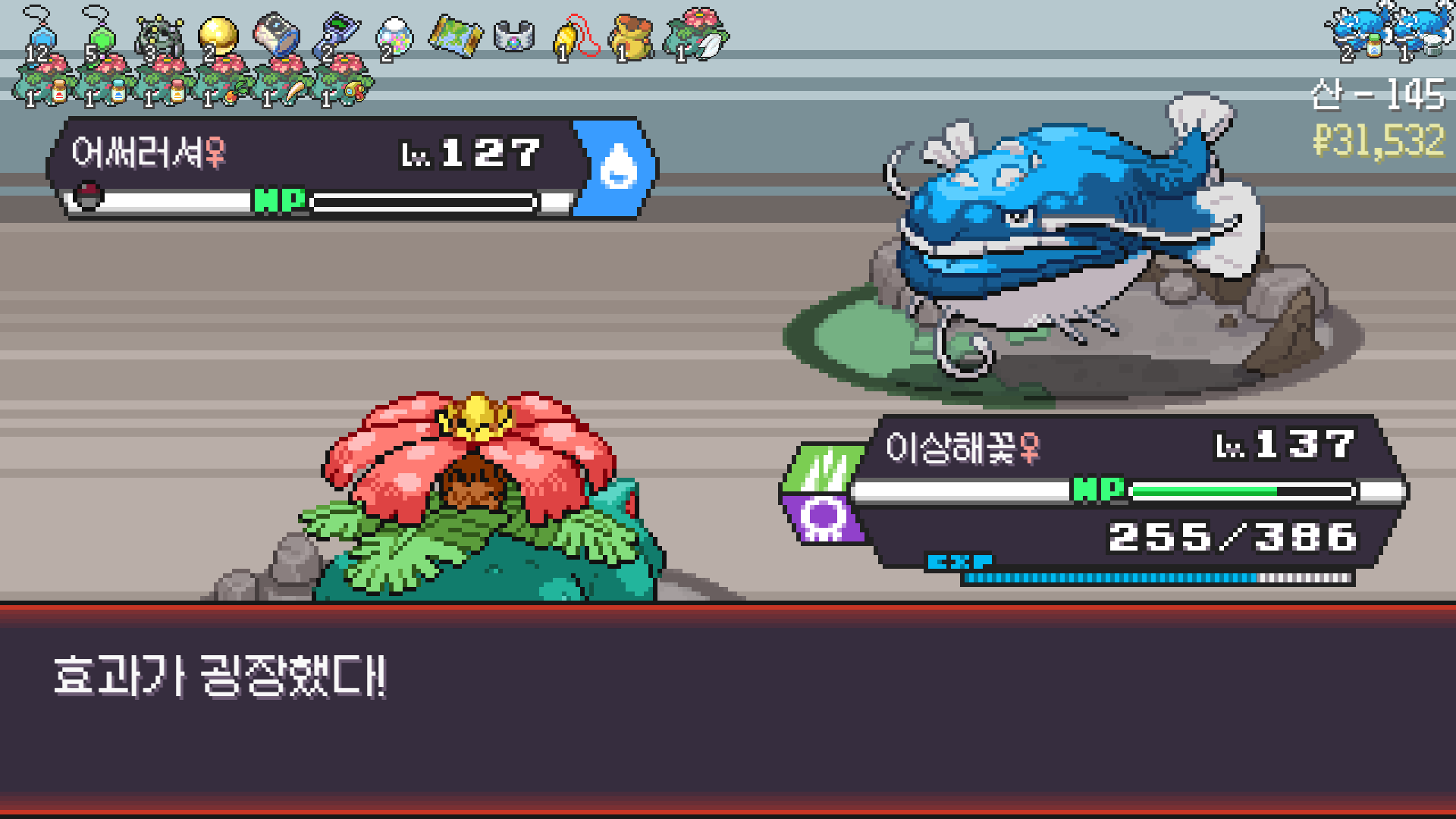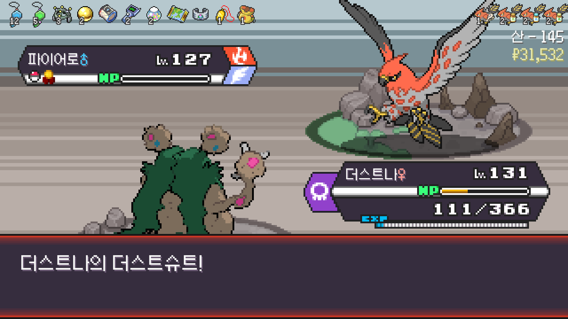 패배의 경험을 토대로 체감 구렸던 부르르룸은 팬텀나왔을때 바로 유기시키고 메가진화 못시키니 쓸모없는 독침붕대신 든든한 탱커라인들 추가하니 돈 관리도 잘되서 버프도 다 찾는등 선순환이 계속 이어져서 무난하게 클리어했다.