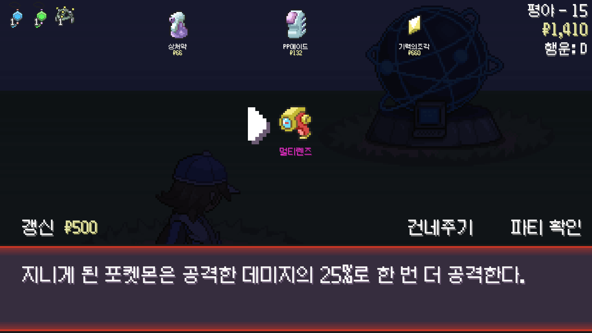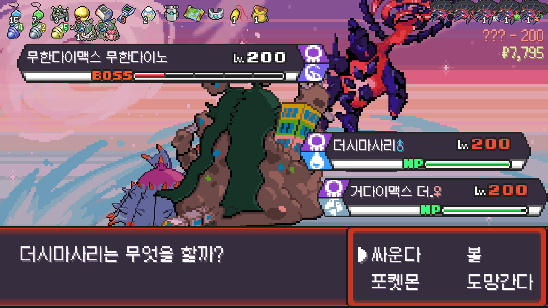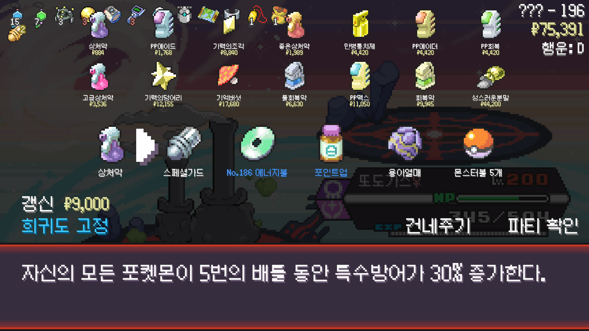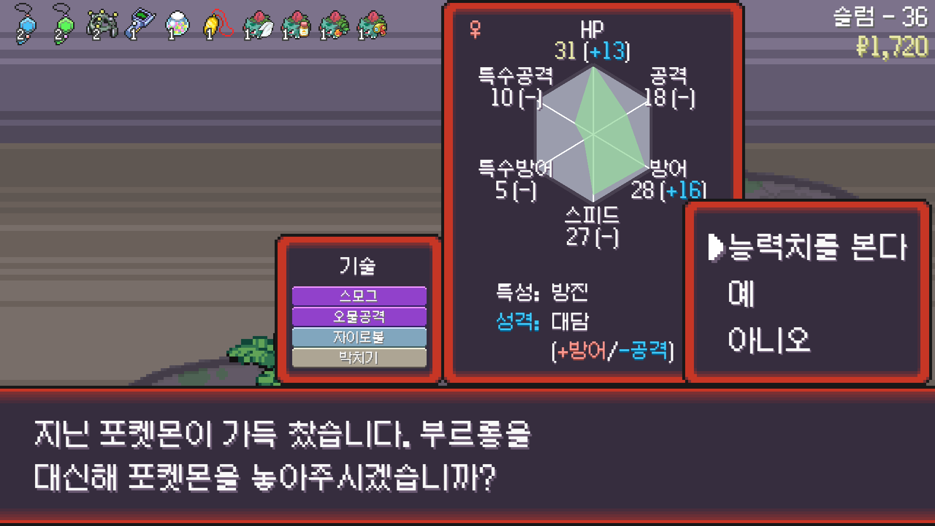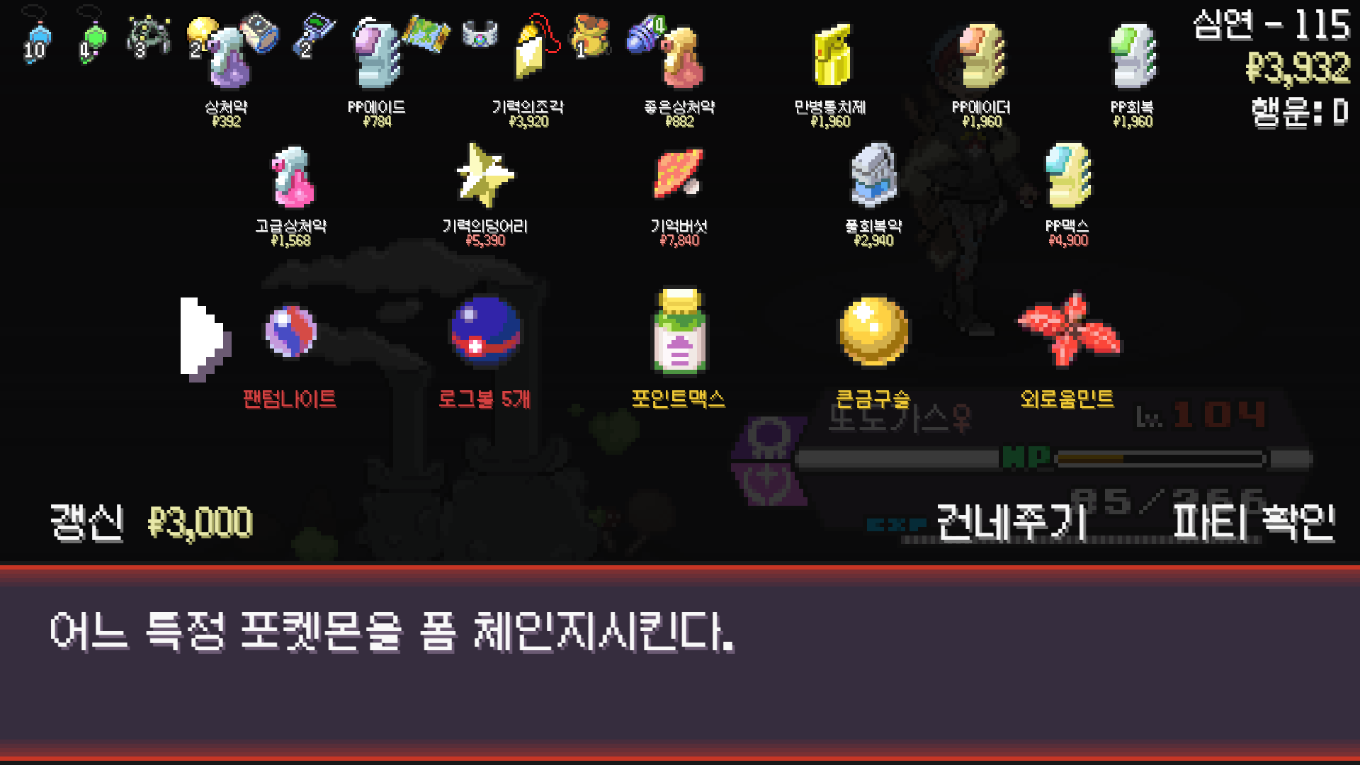 패배의 경험을 토대로 체감 구렸던 부르르룸은 팬텀나왔을때 바로 유기시키고 메가진화 못시키니 쓸모없는 독침붕대신 든든한 탱커라인들 추가하니 돈 관리도 잘되서 버프도 다 찾는등 선순환이 계속 이어져서 무난하게 클리어했다.