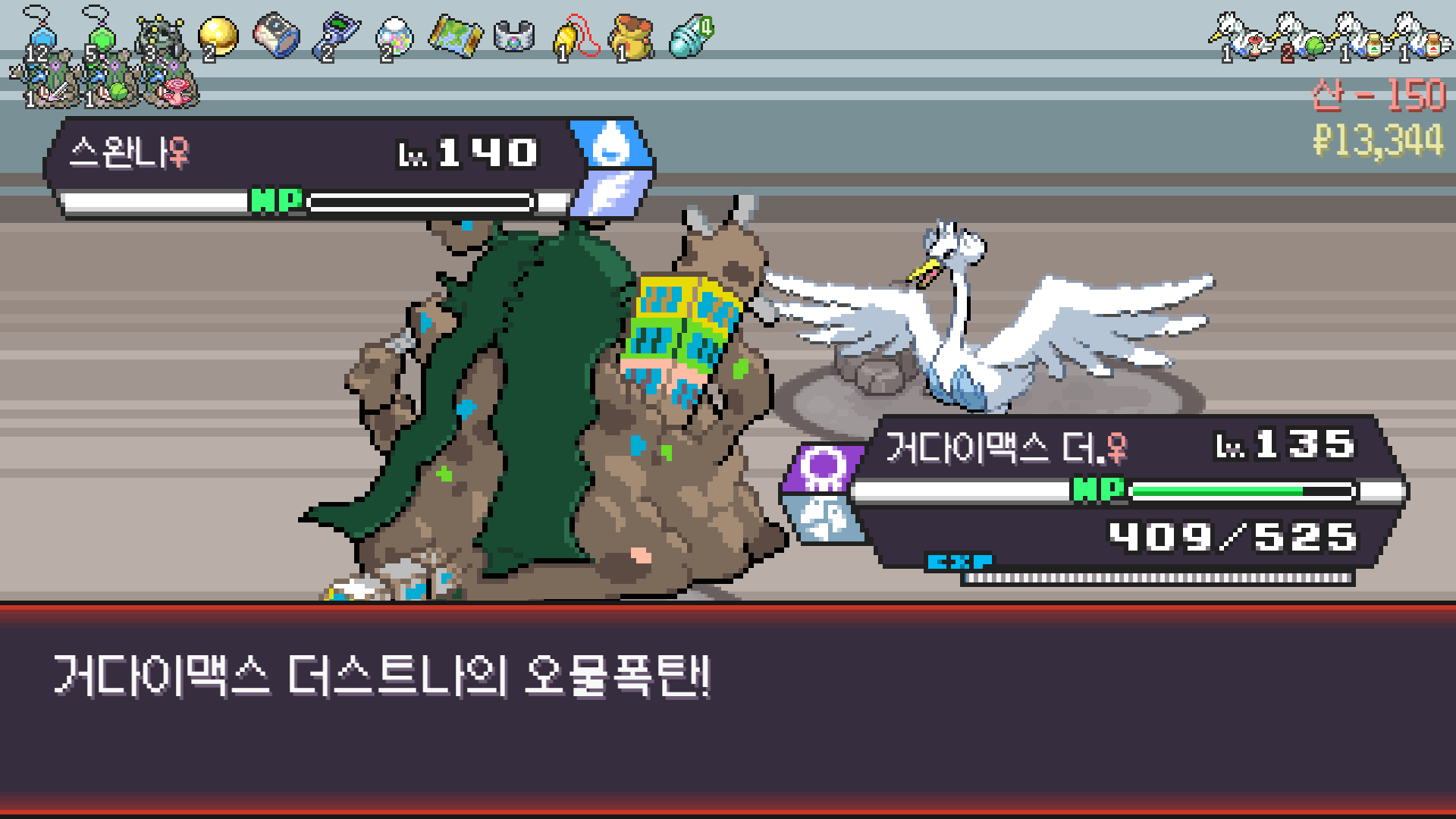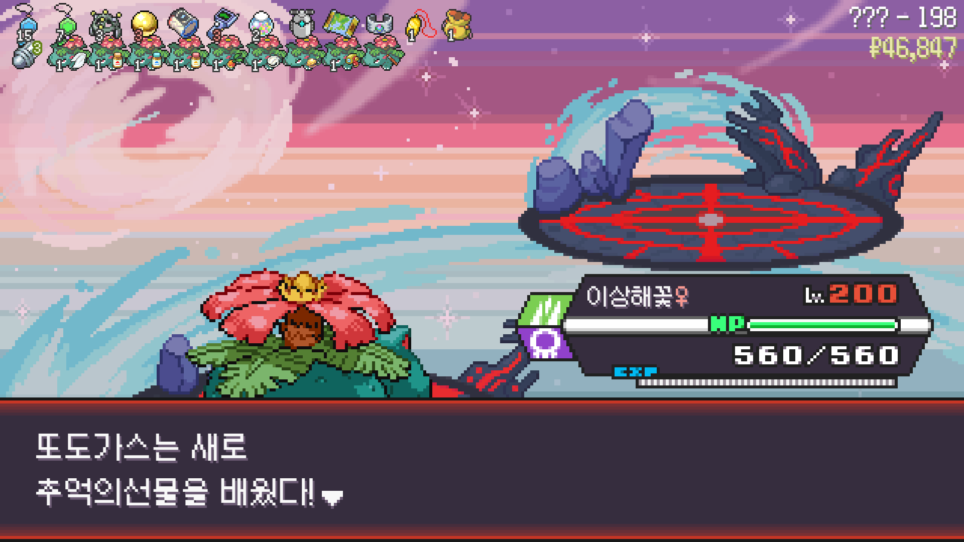 돈 말라서 라이벌전 후 랭업기 제대로 못배우고 밸류(거다이,메가 X)도 딸려서 200층에서 무한다이노한테 먹밥뺏기고 침몰된 이상해꽃/스트린더/부르르룸/독침붕/더스트나/또도가스 파티