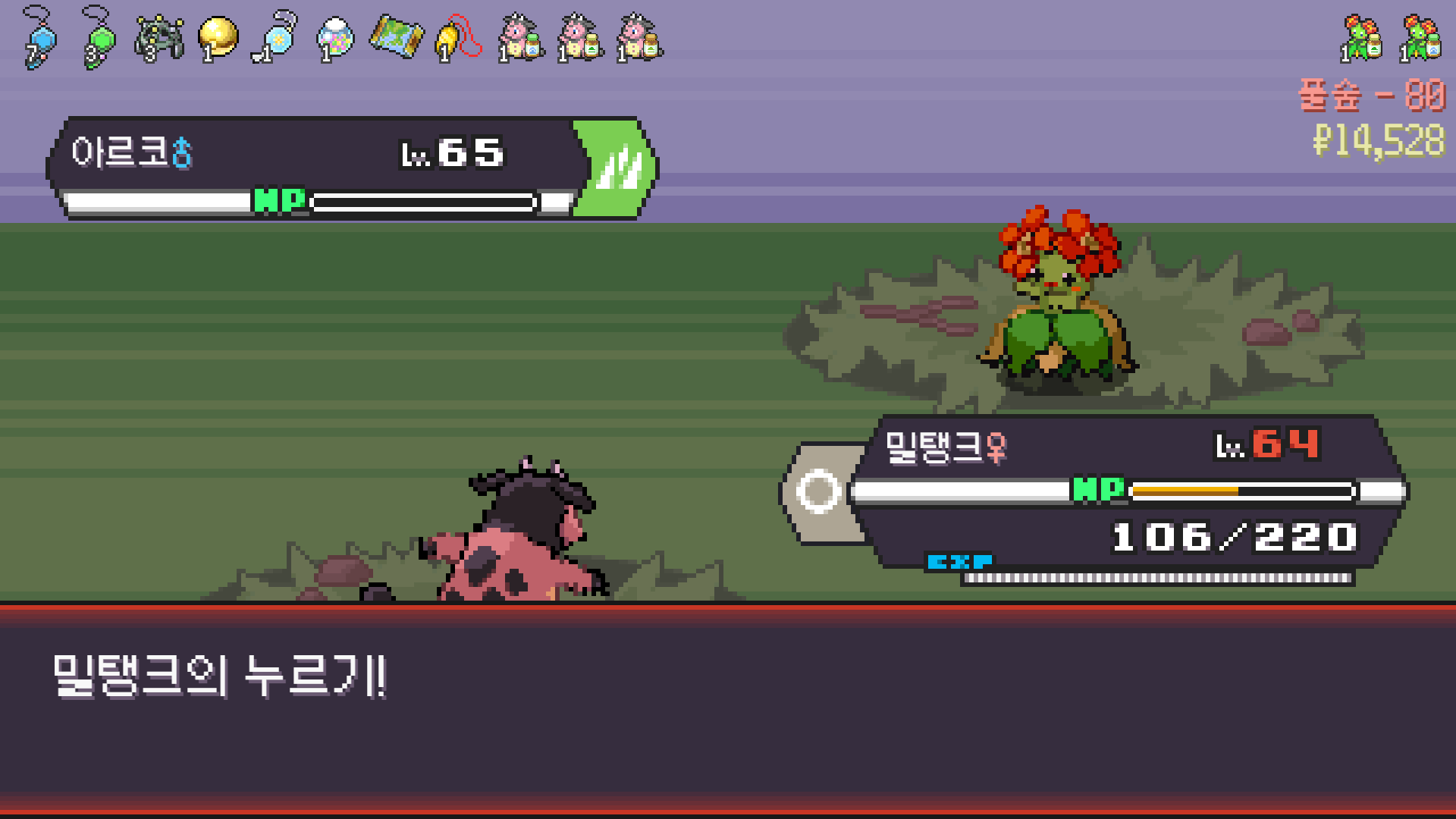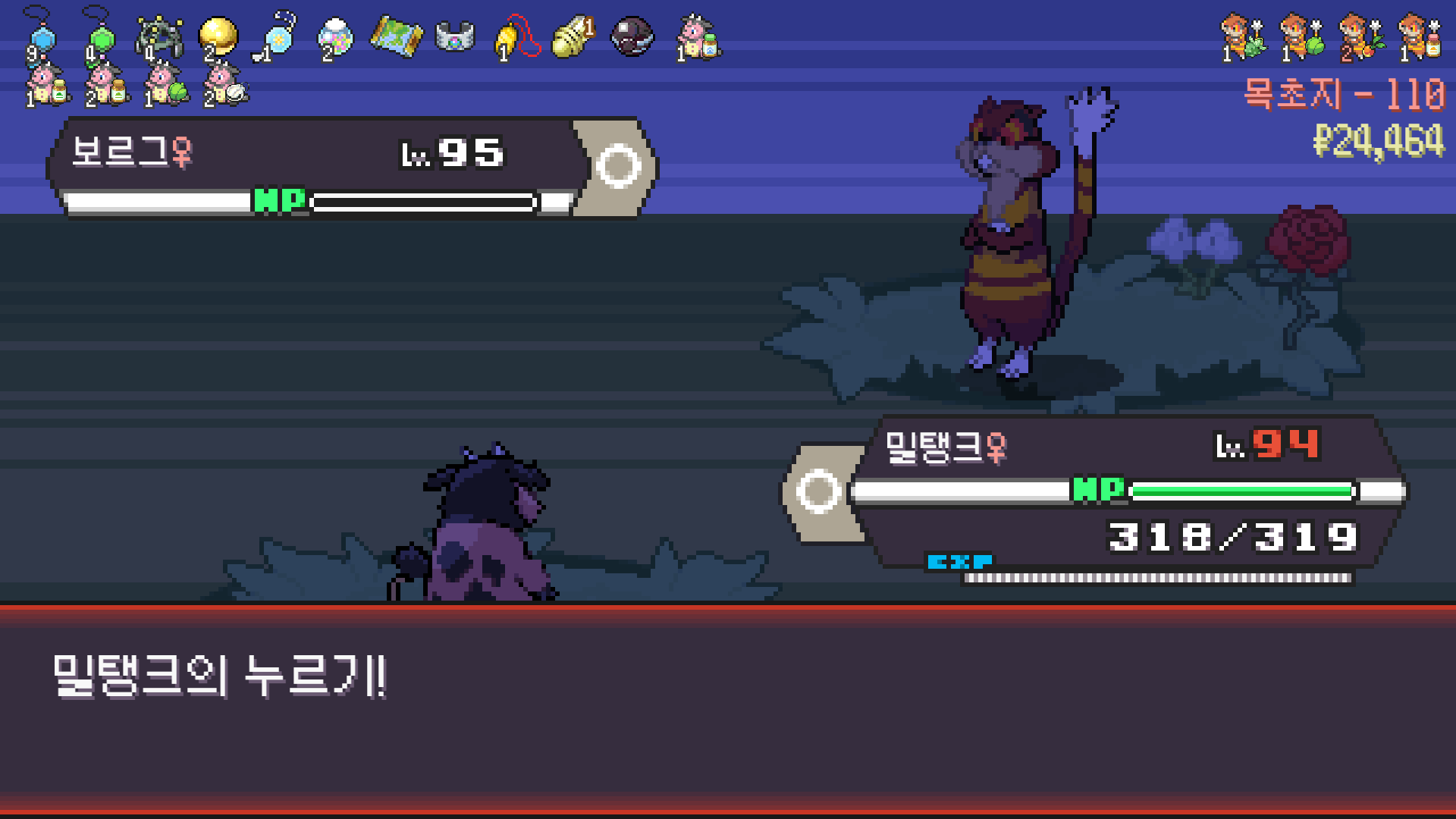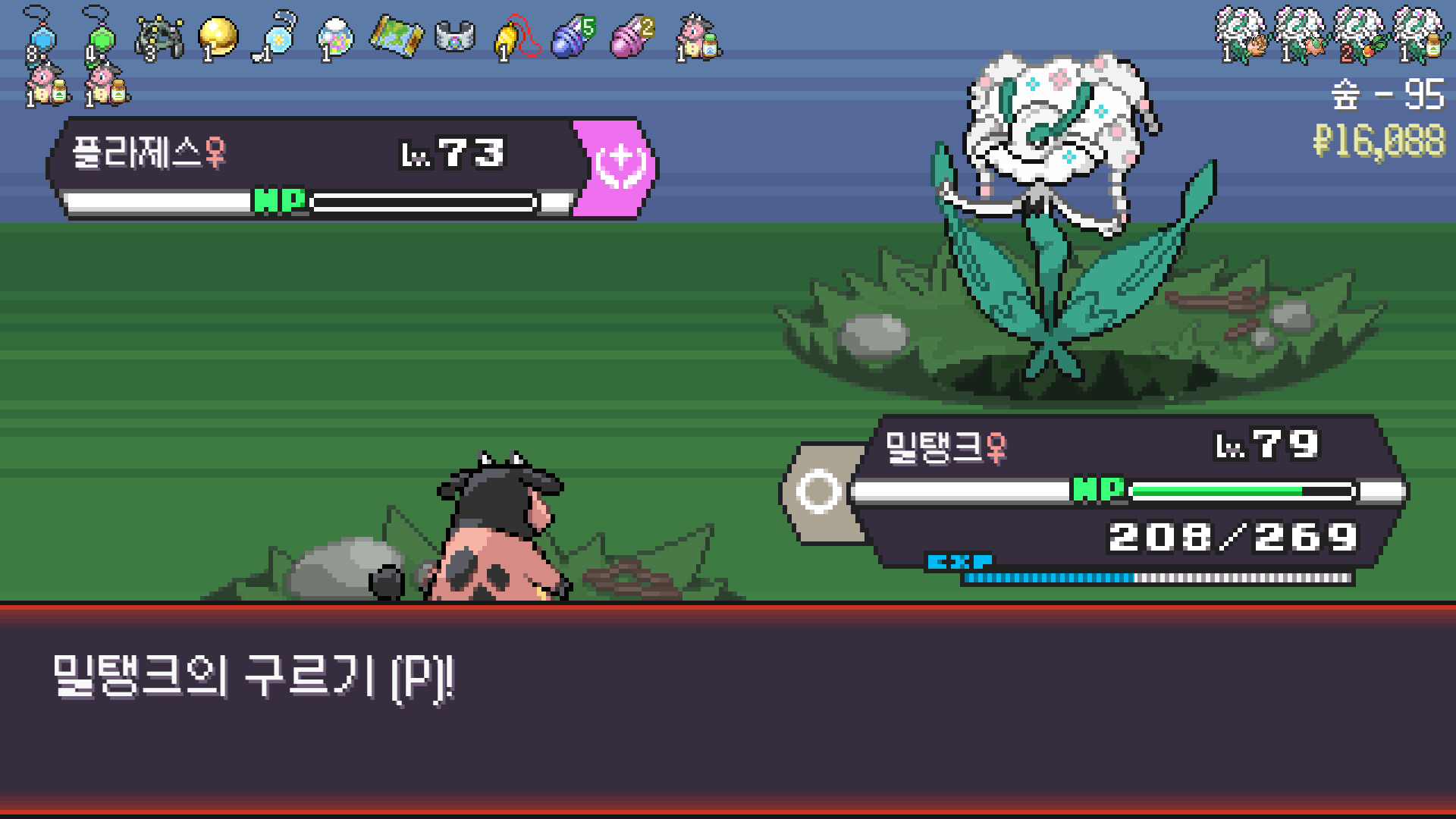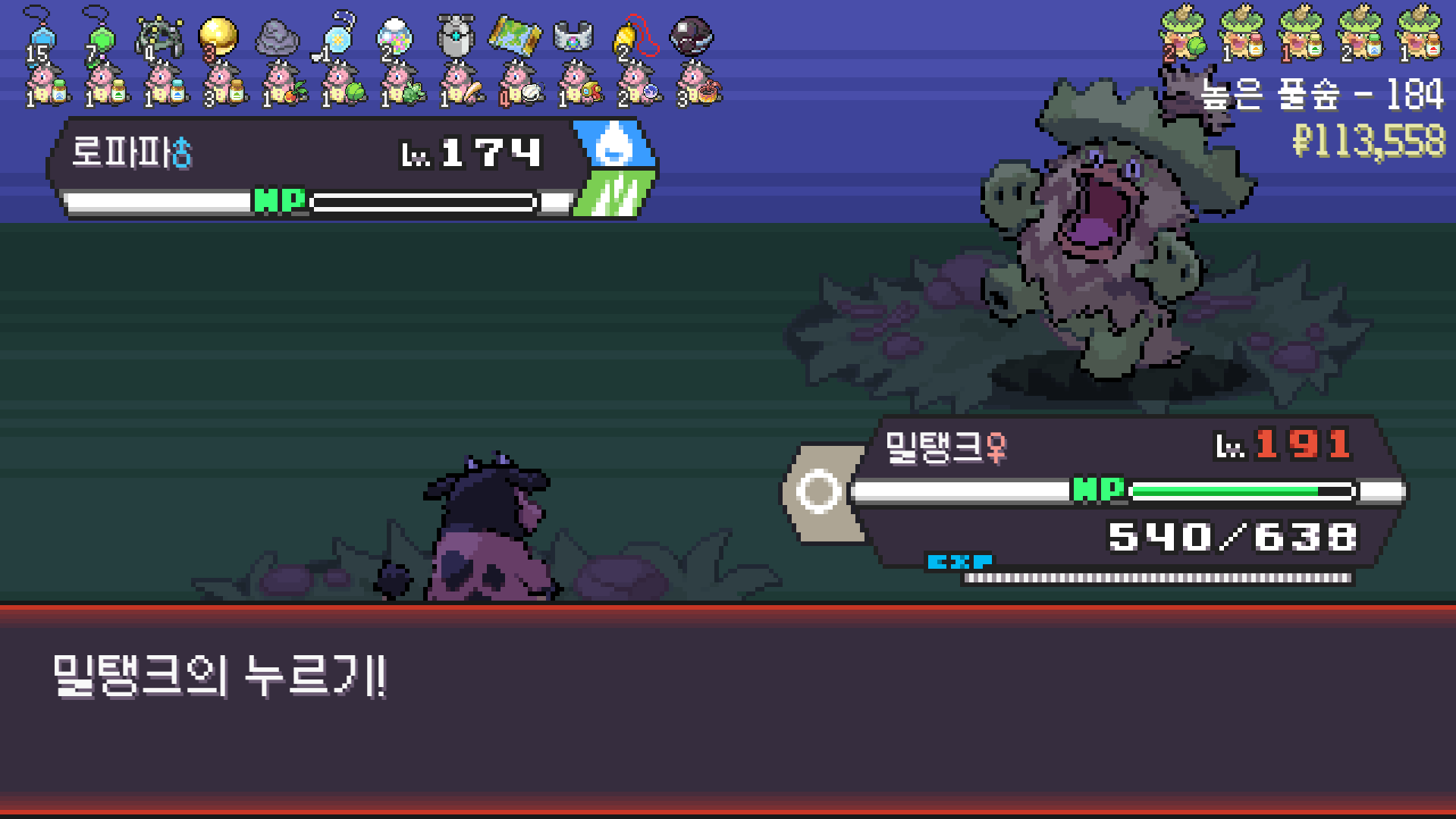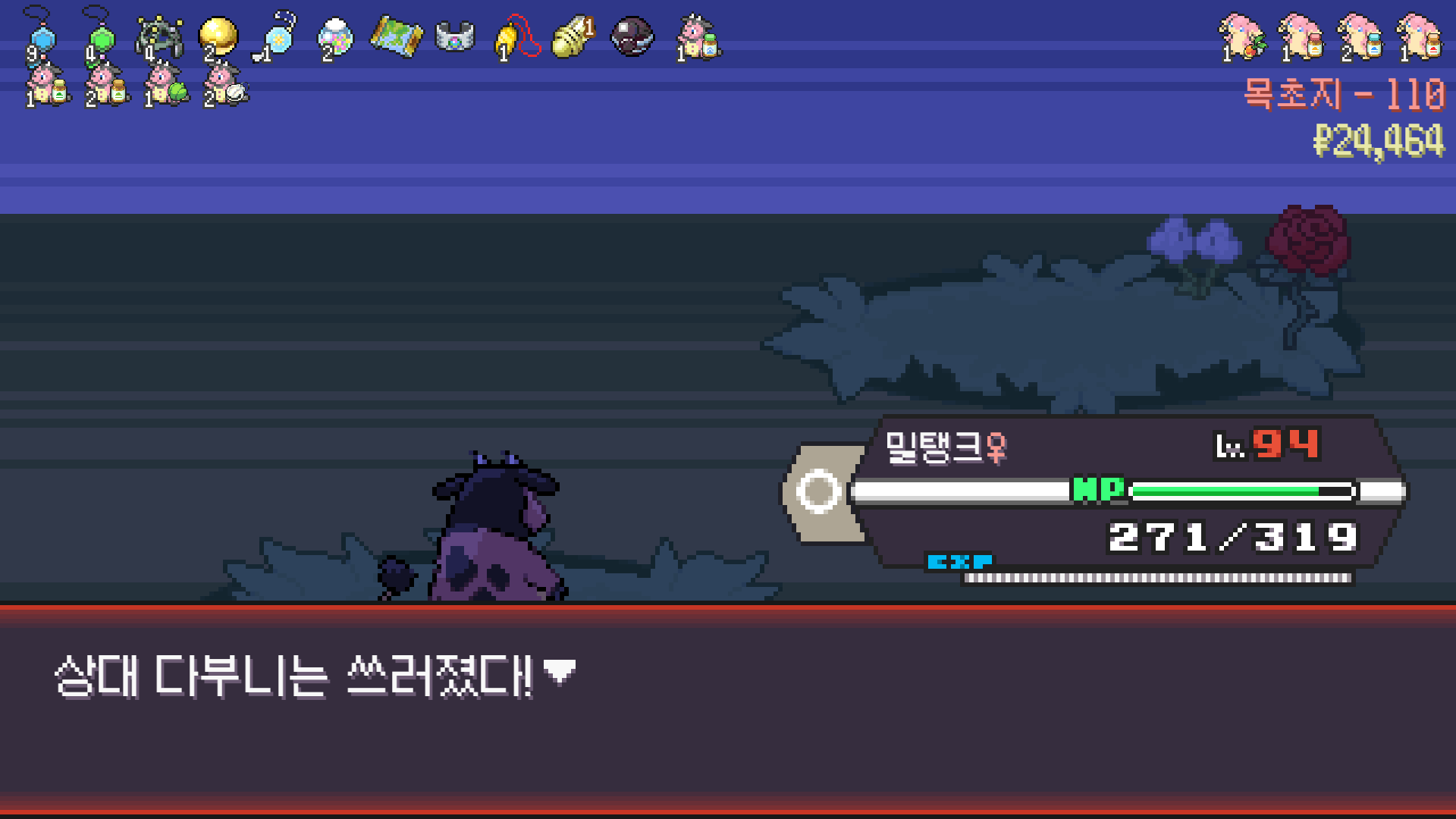 포획은 2마리 밖에 못했지만 회복템이 잘 붙어줘서 밀탱크 차력쇼로 클리어했다