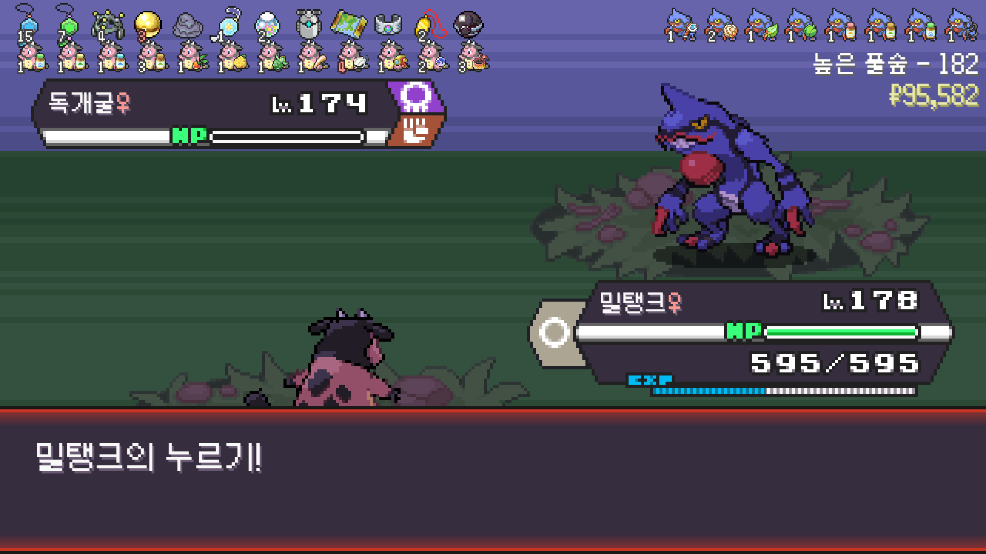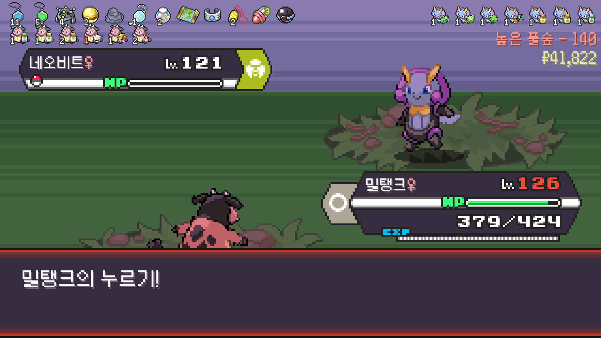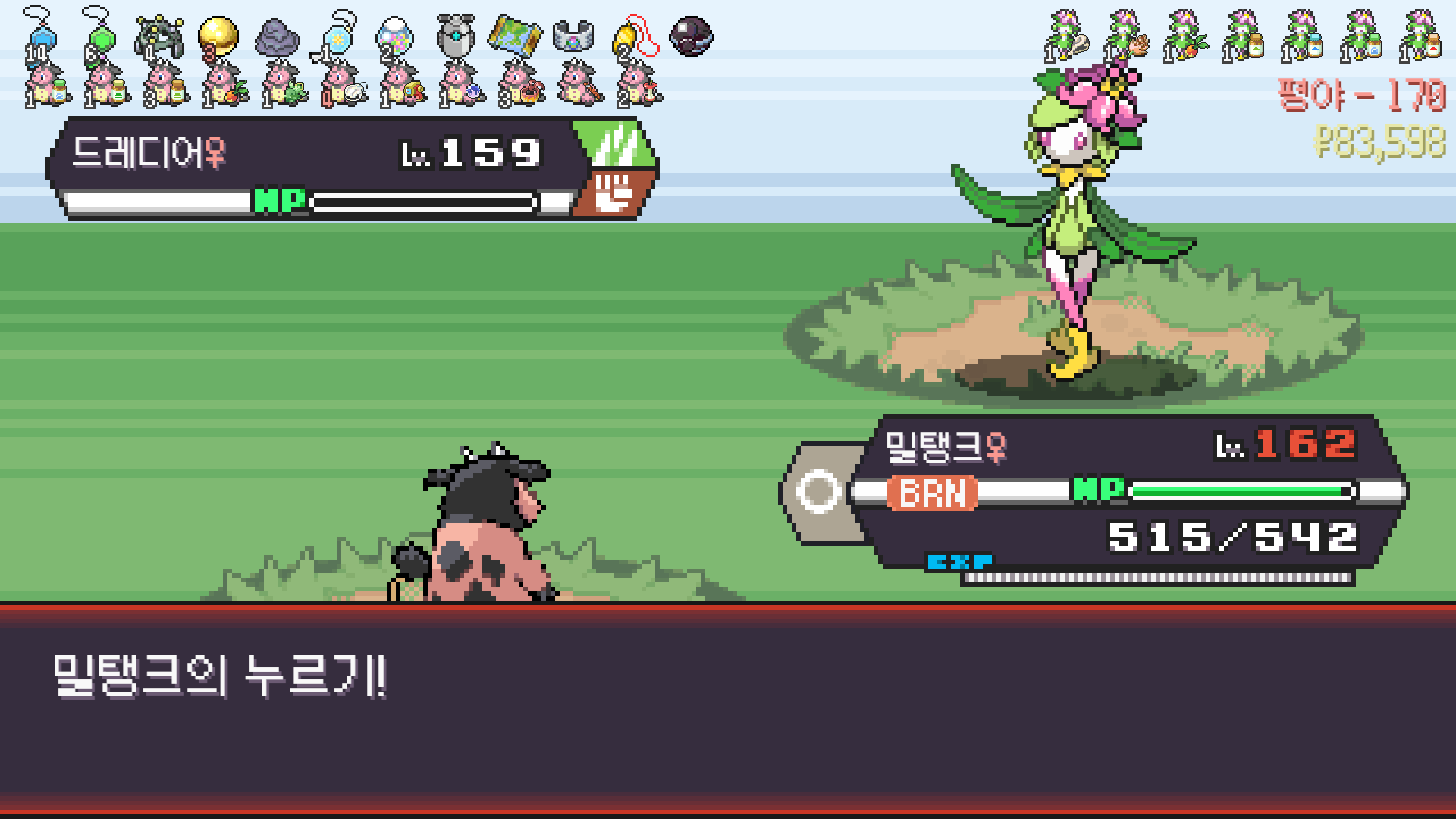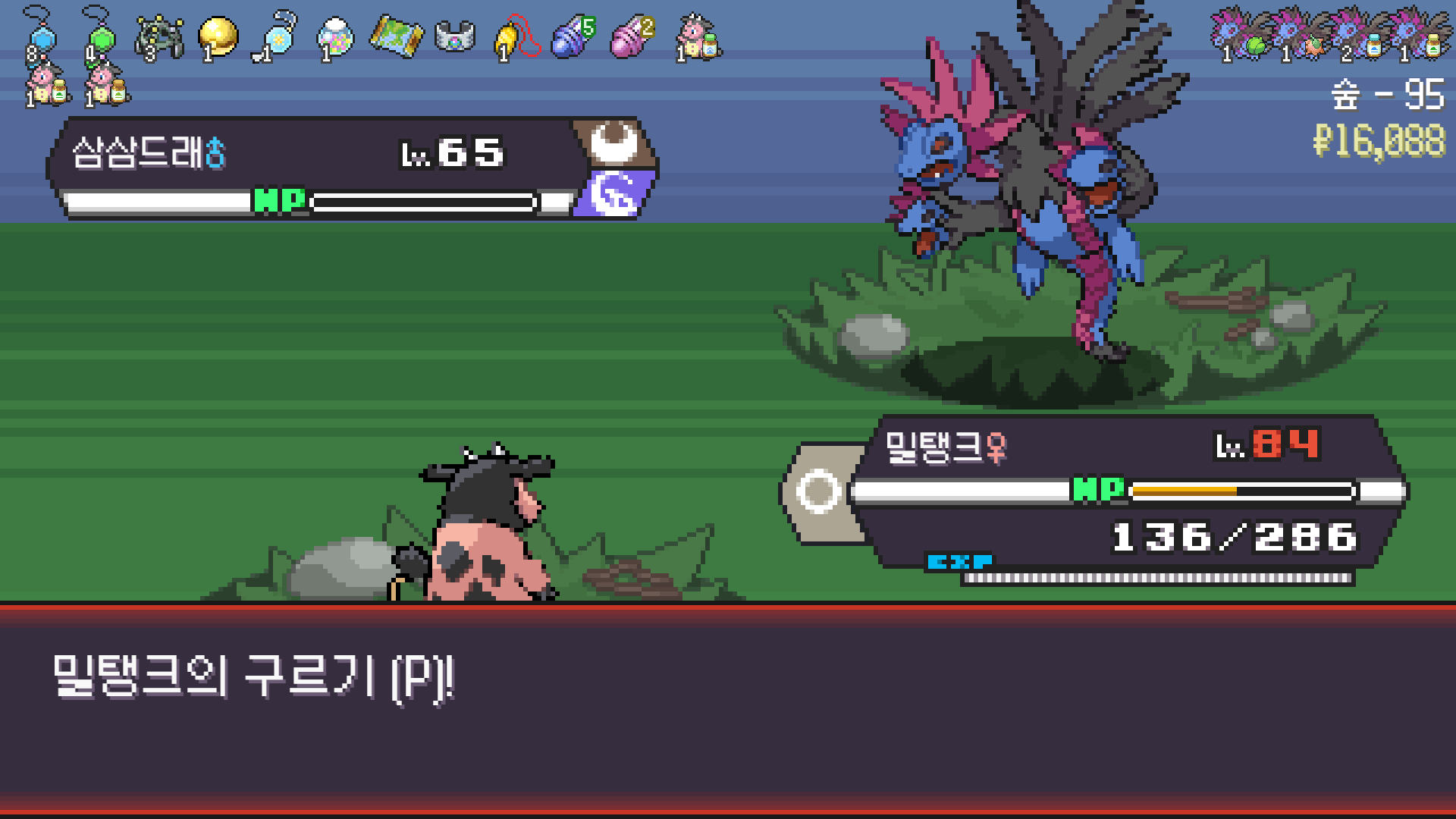 포획은 2마리 밖에 못했지만 회복템이 잘 붙어줘서 밀탱크 차력쇼로 클리어했다