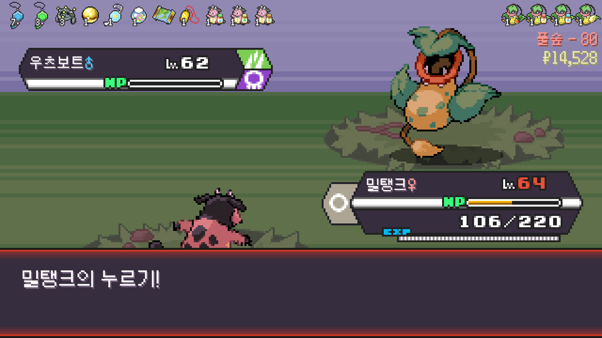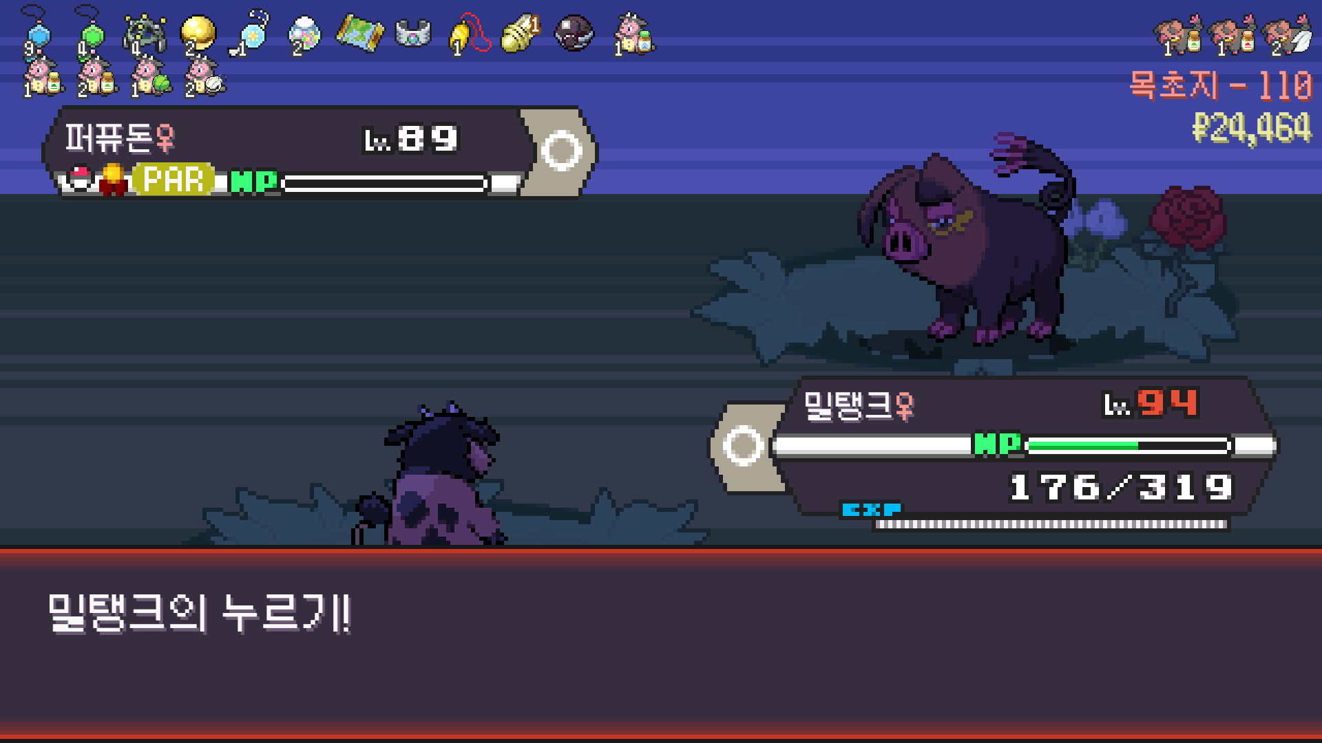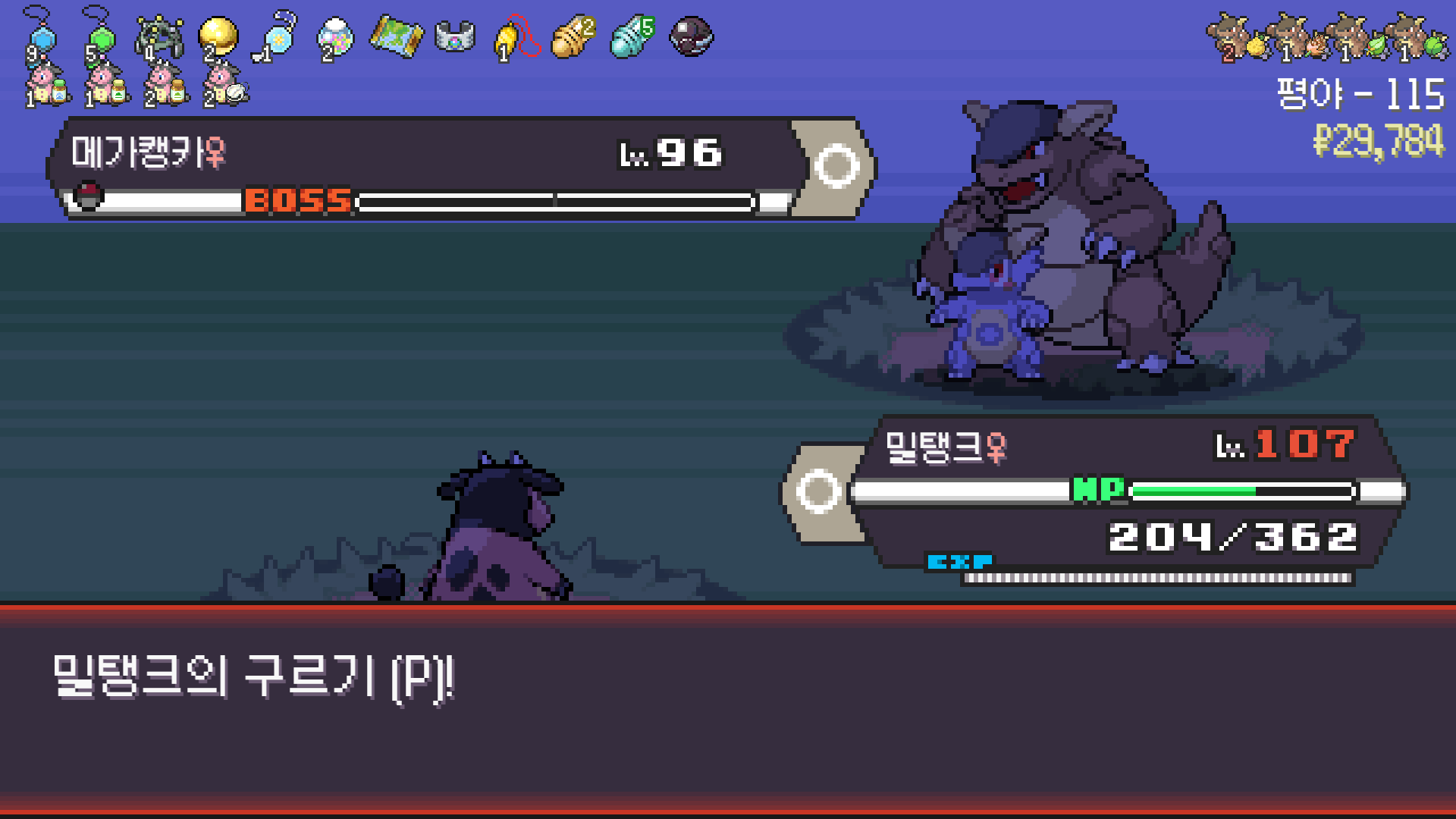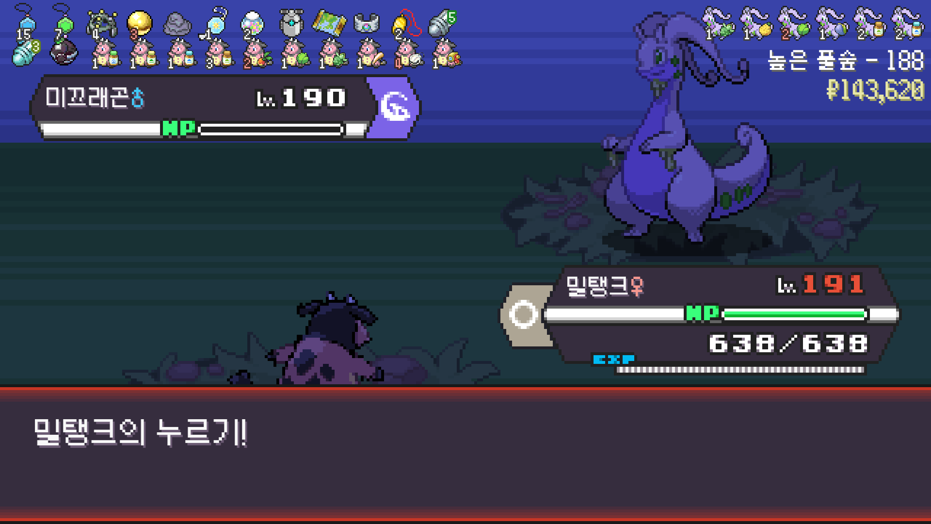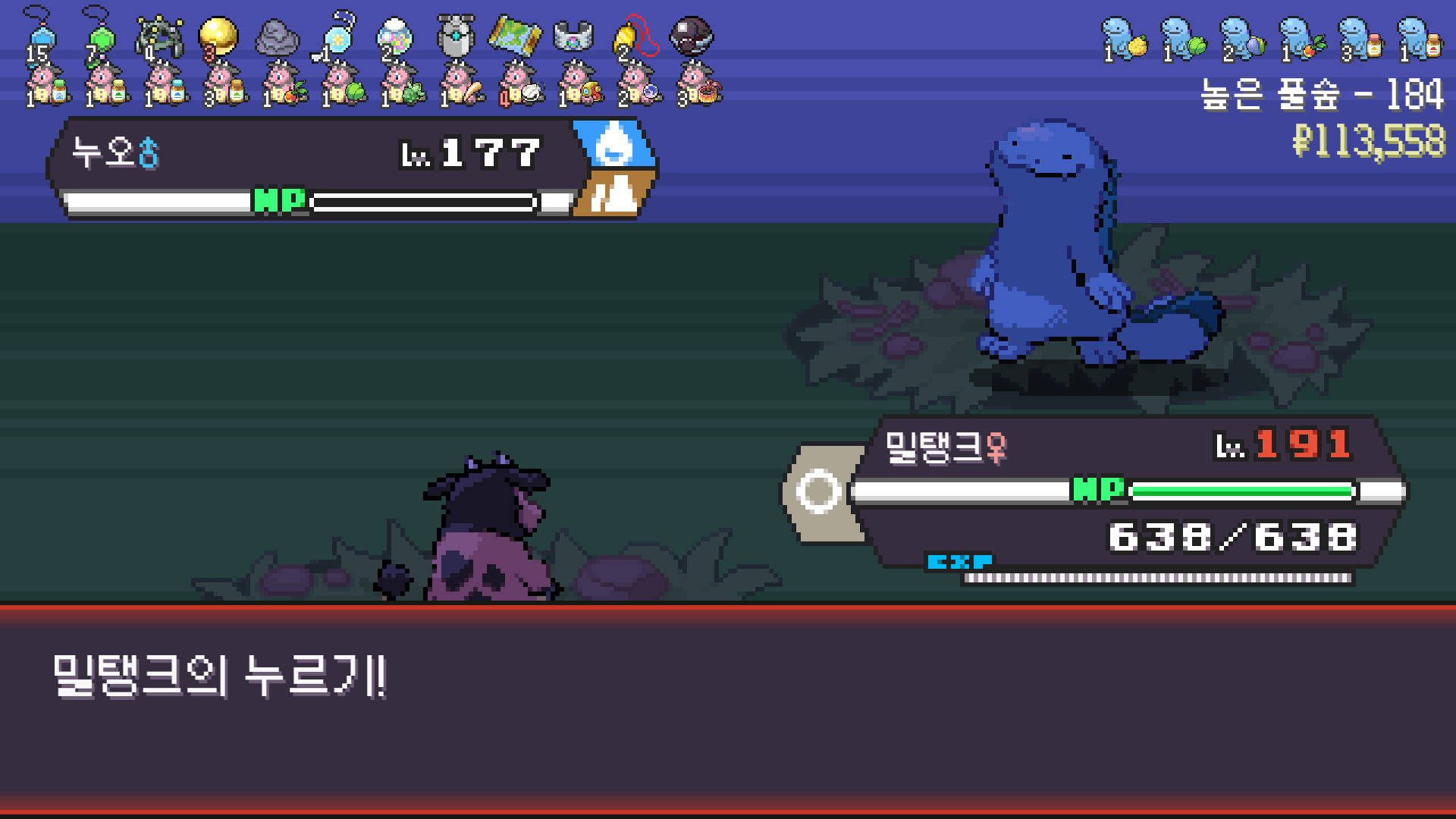 포획은 2마리 밖에 못했지만 회복템이 잘 붙어줘서 밀탱크 차력쇼로 클리어했다