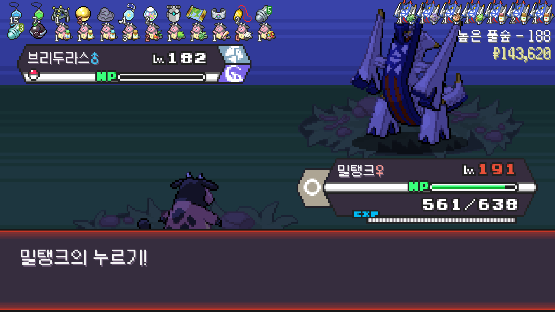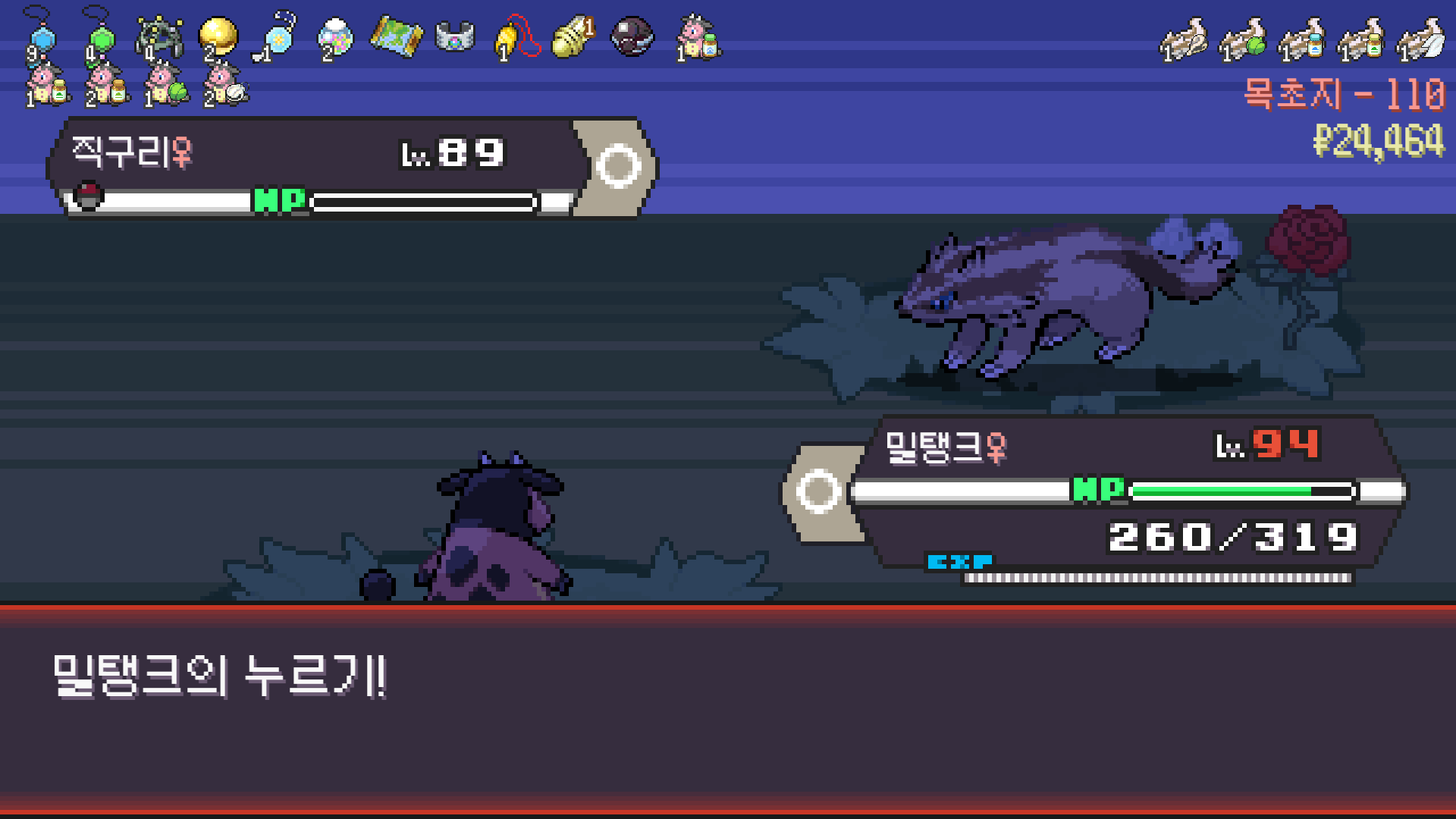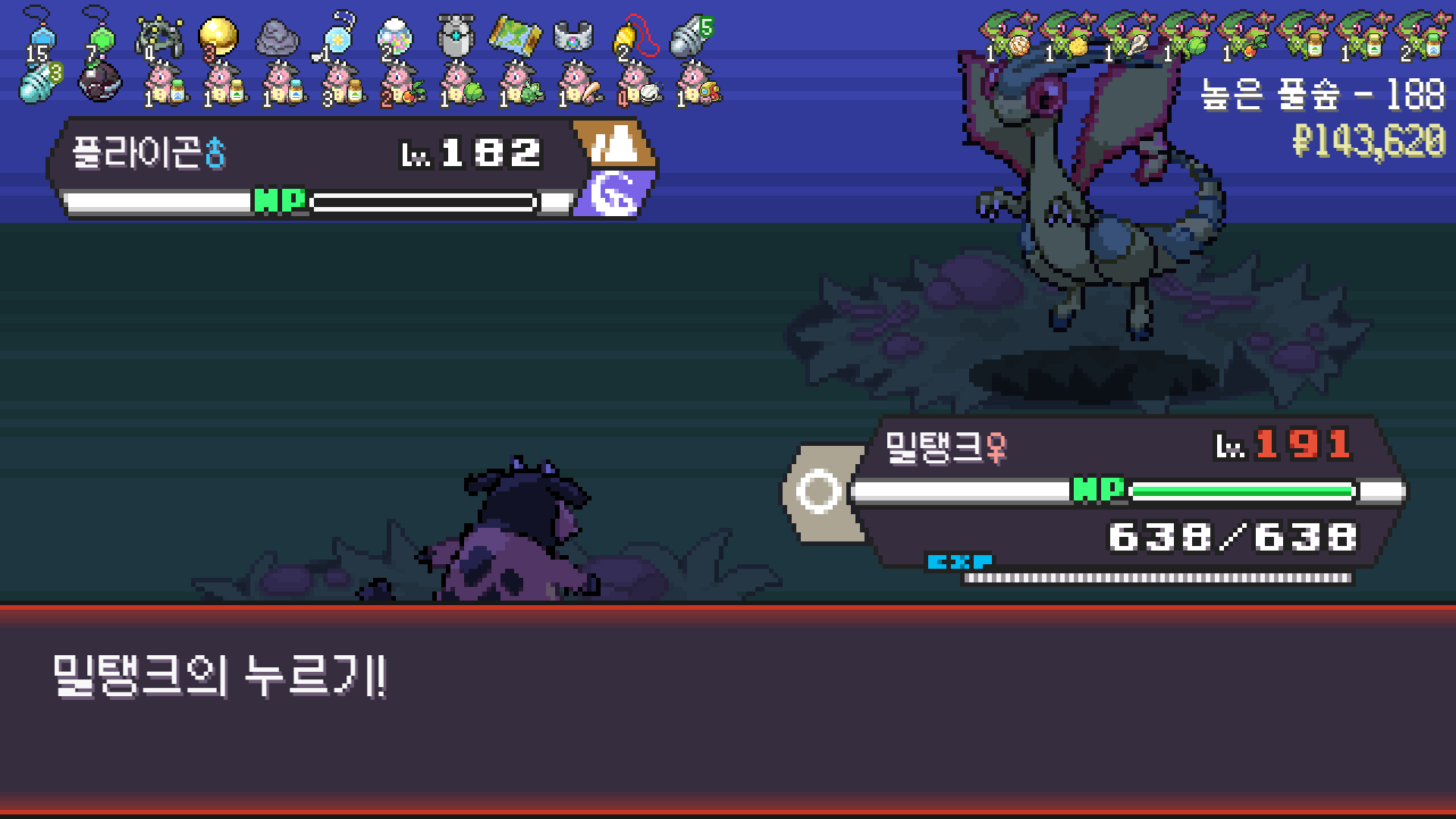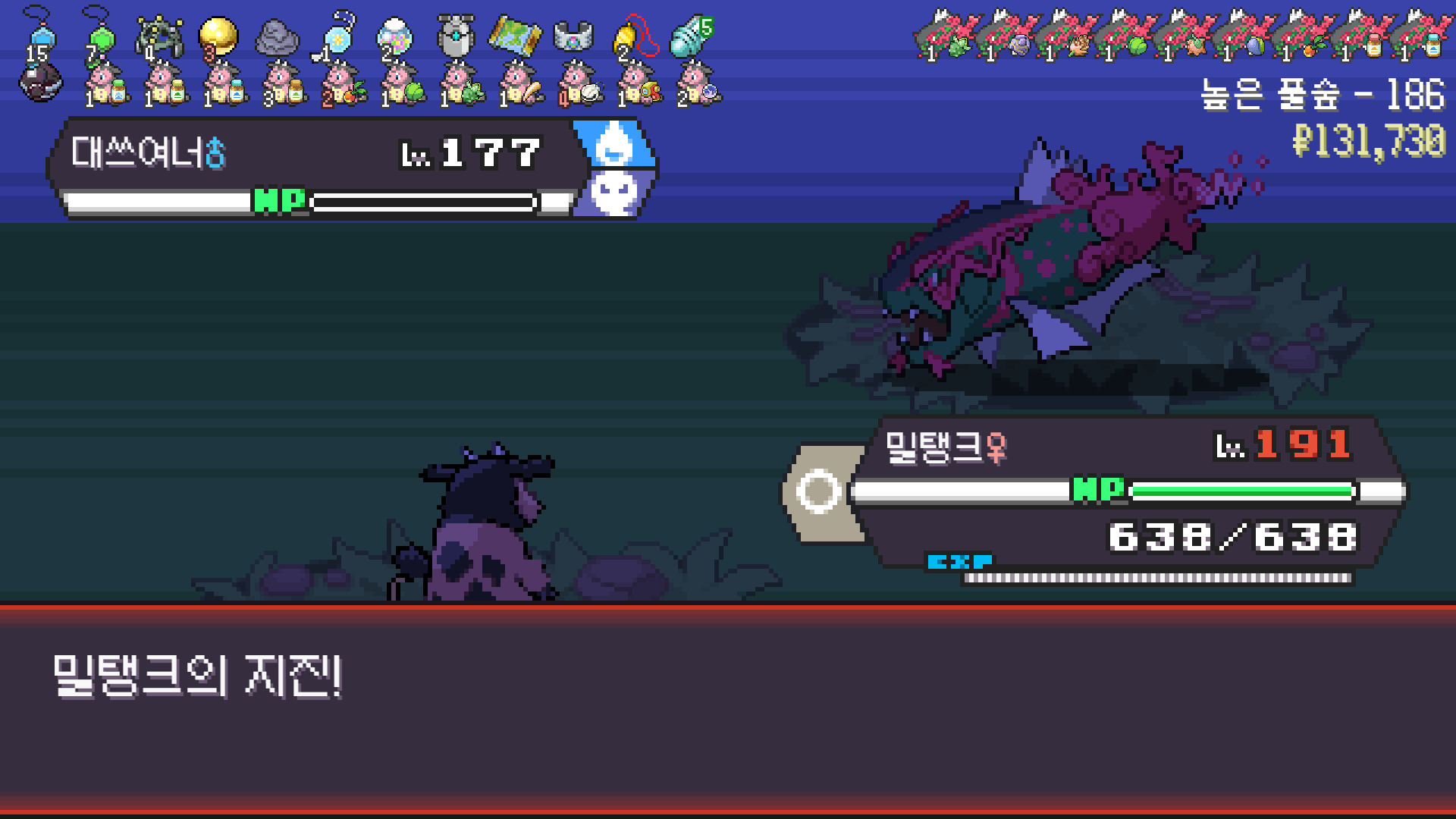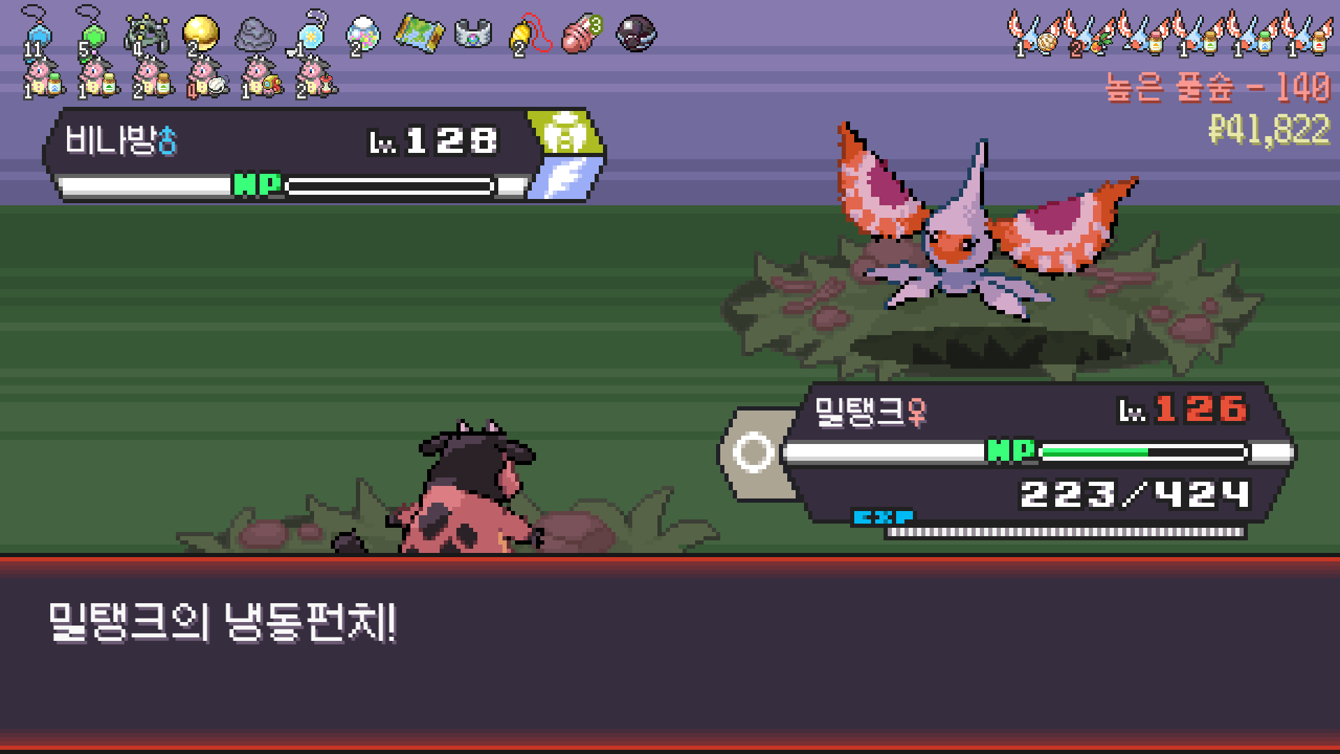 포획은 2마리 밖에 못했지만 회복템이 잘 붙어줘서 밀탱크 차력쇼로 클리어했다