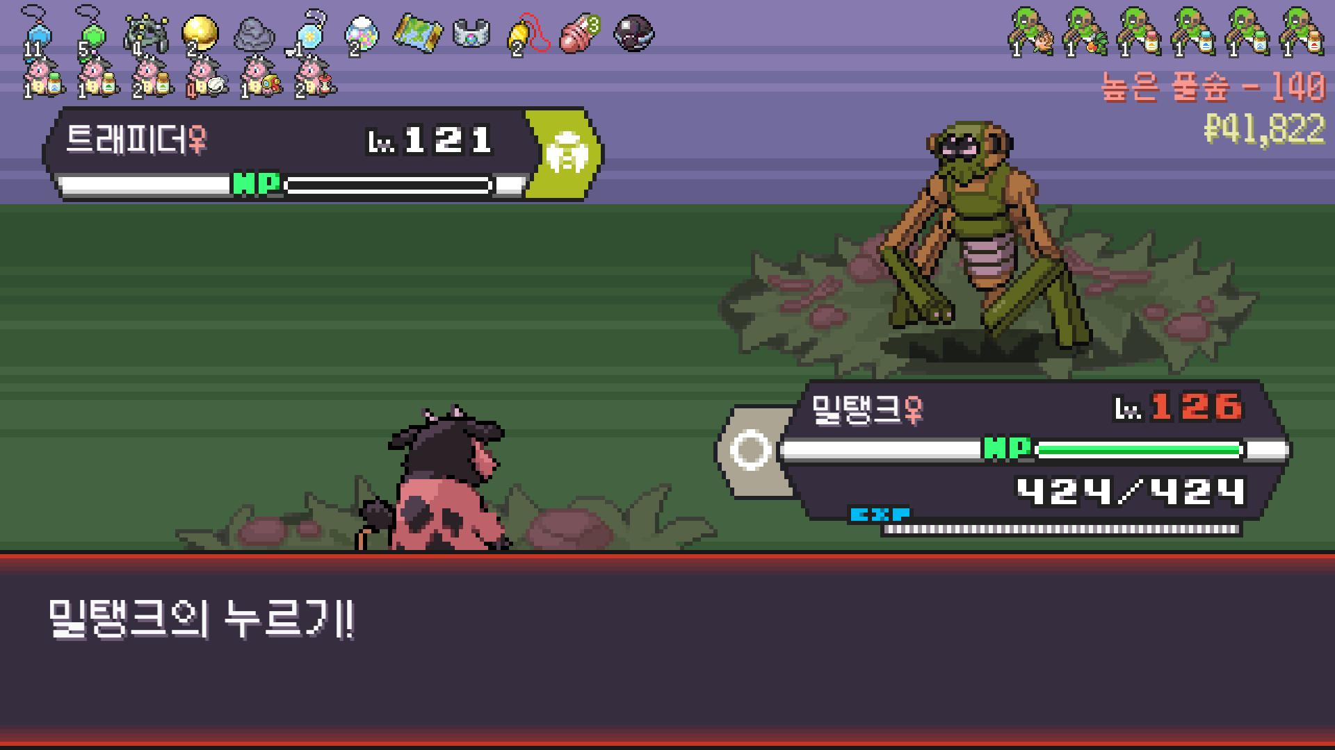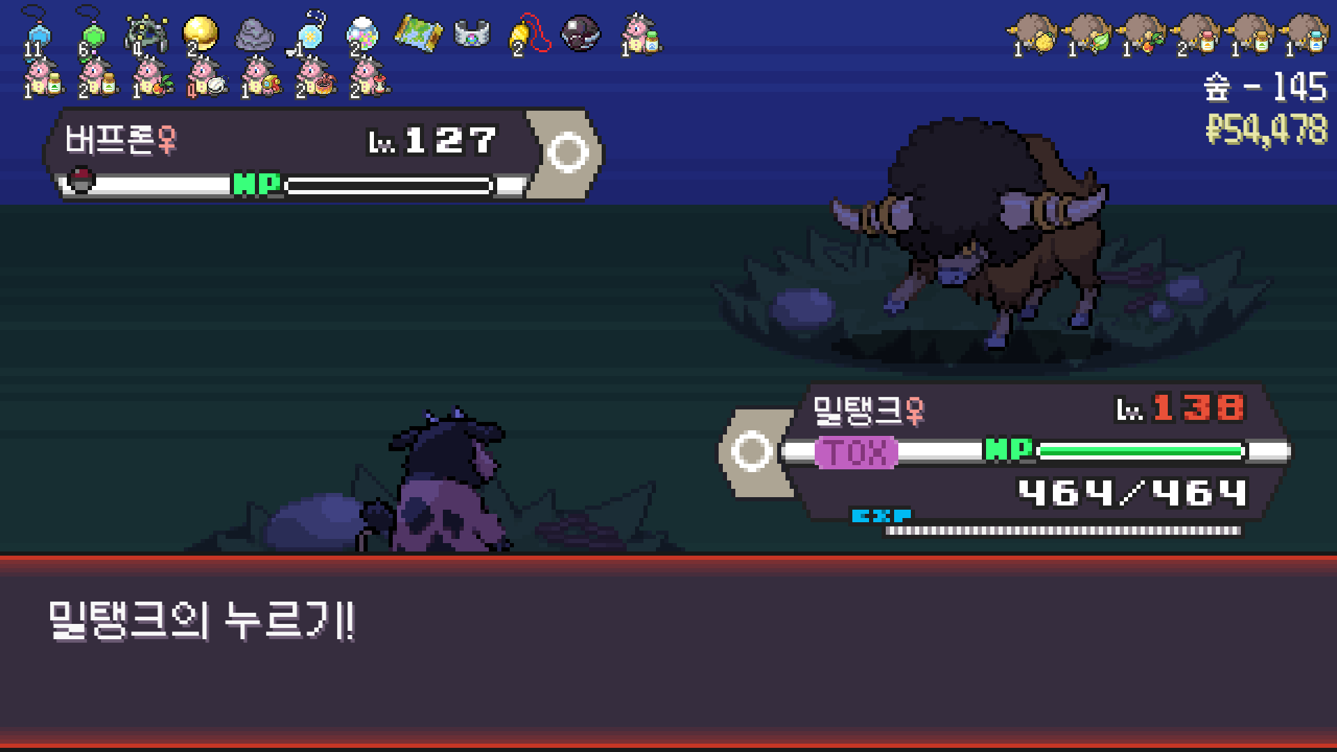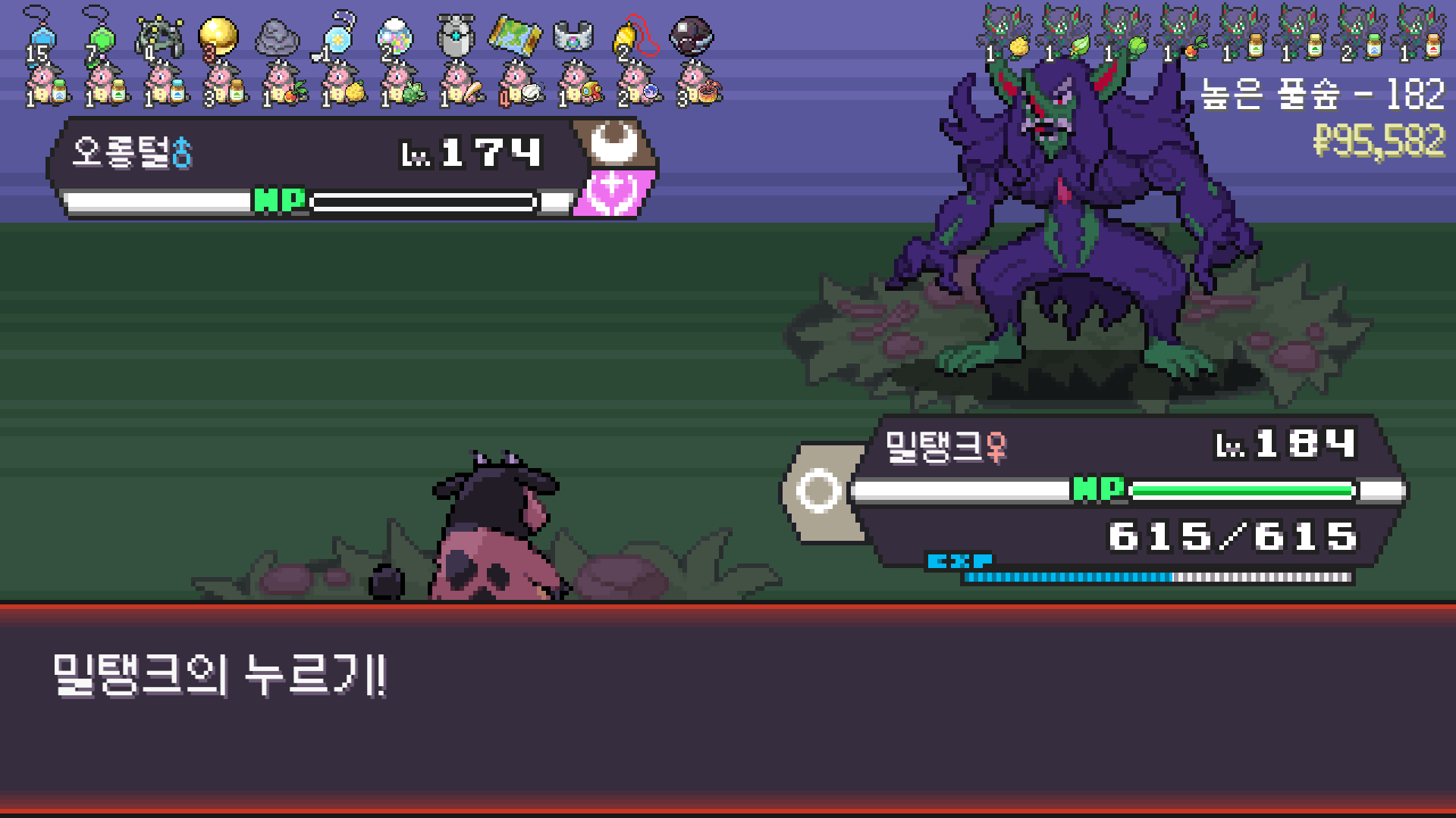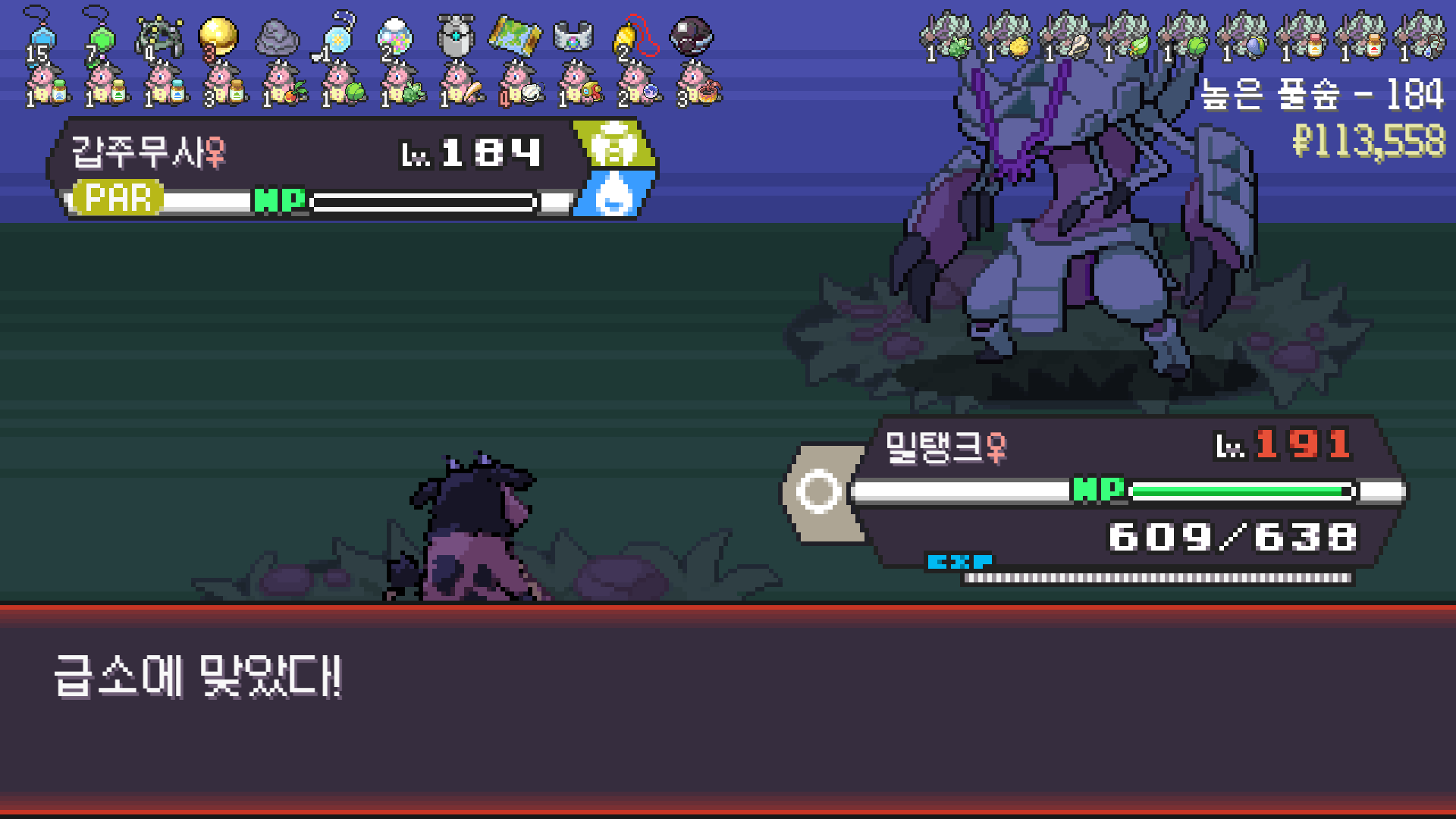 포획은 2마리 밖에 못했지만 회복템이 잘 붙어줘서 밀탱크 차력쇼로 클리어했다