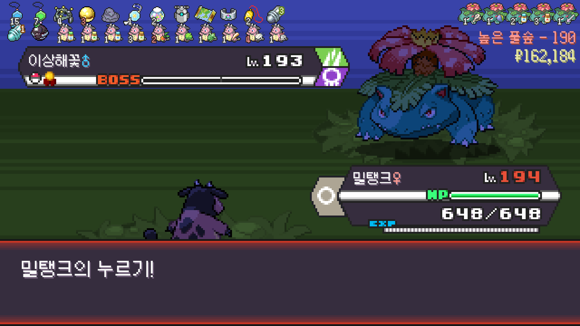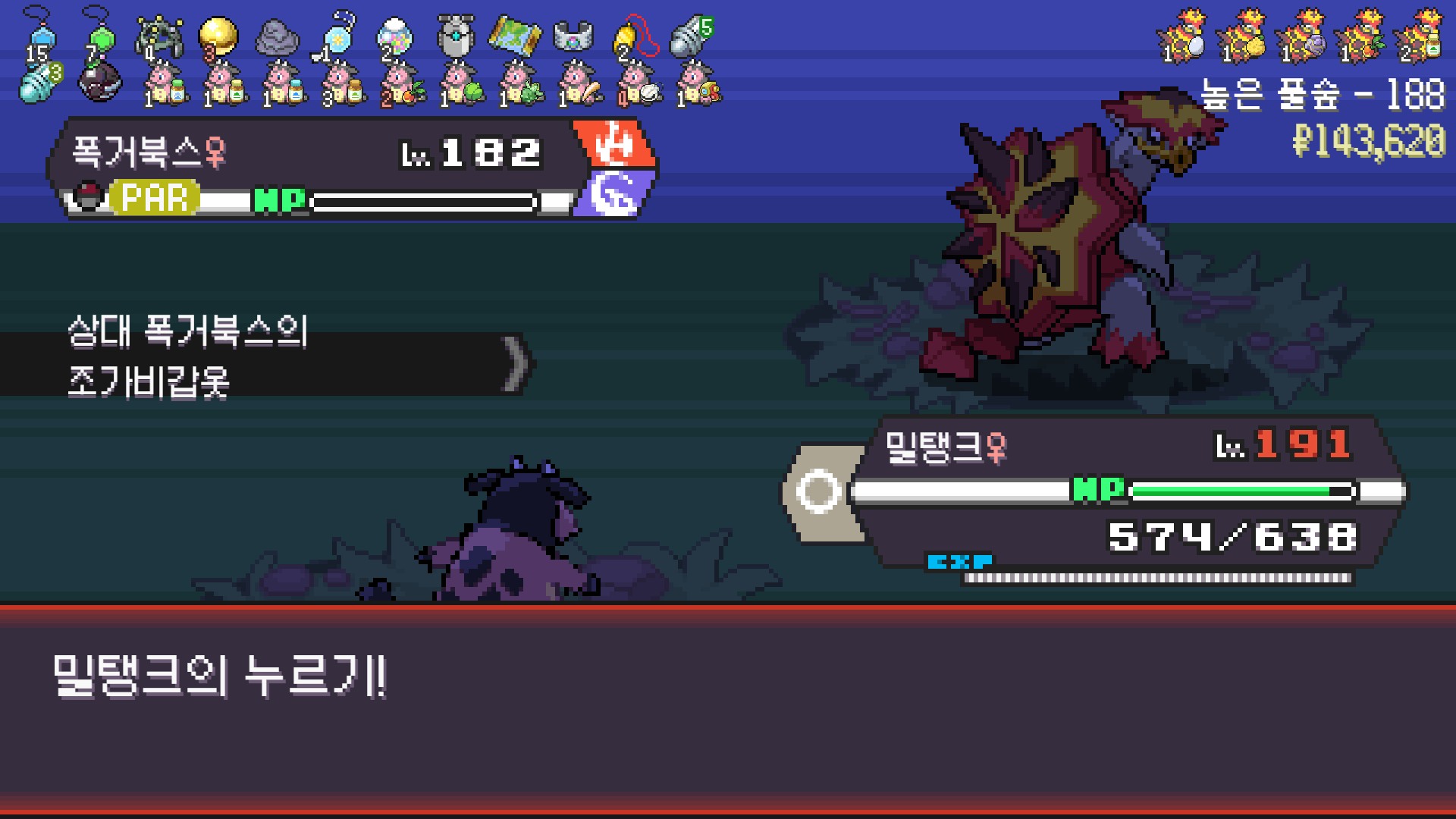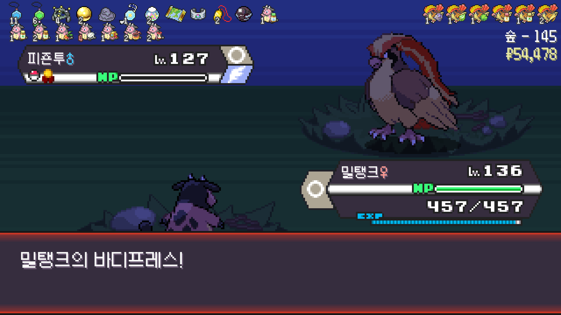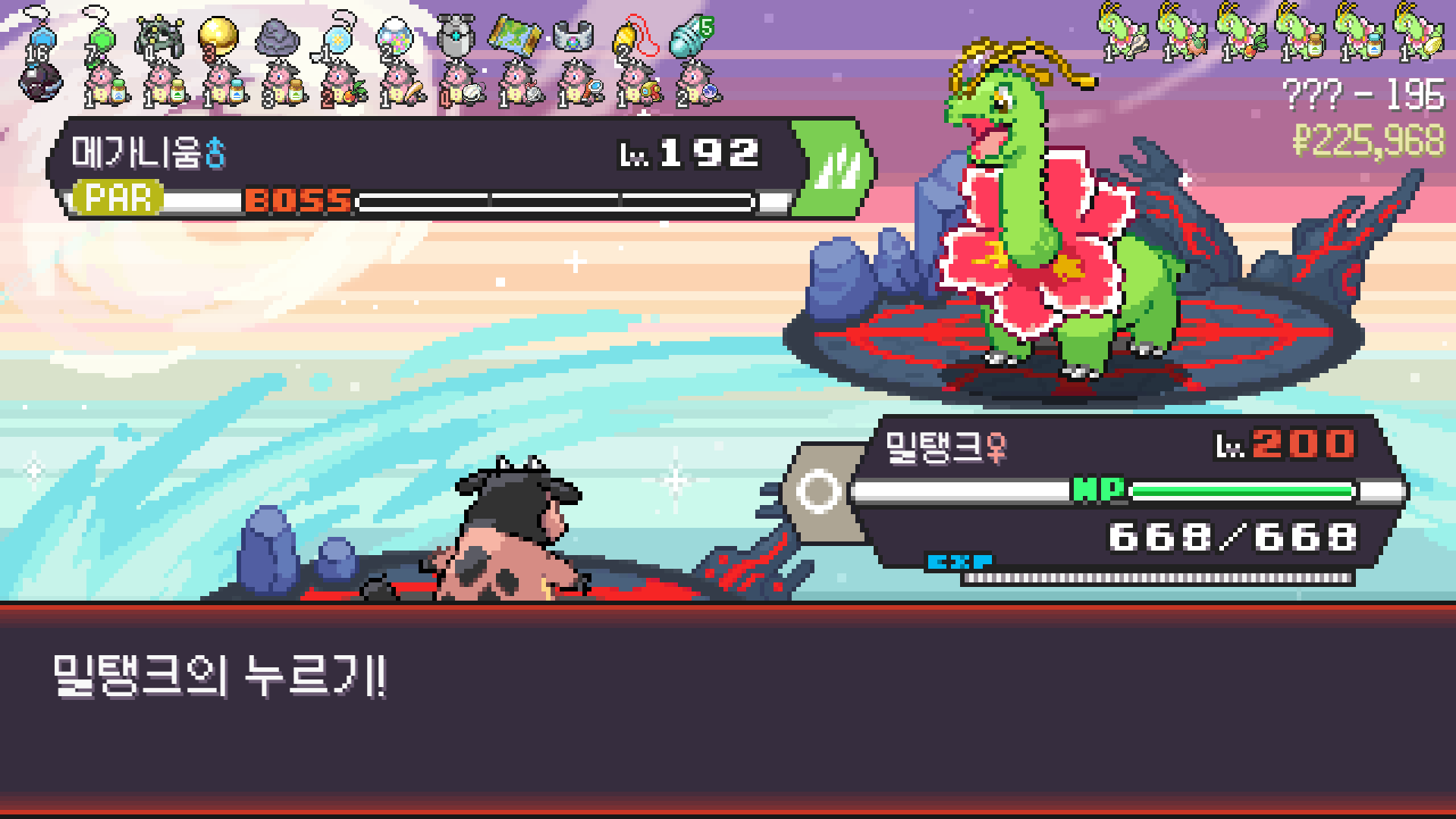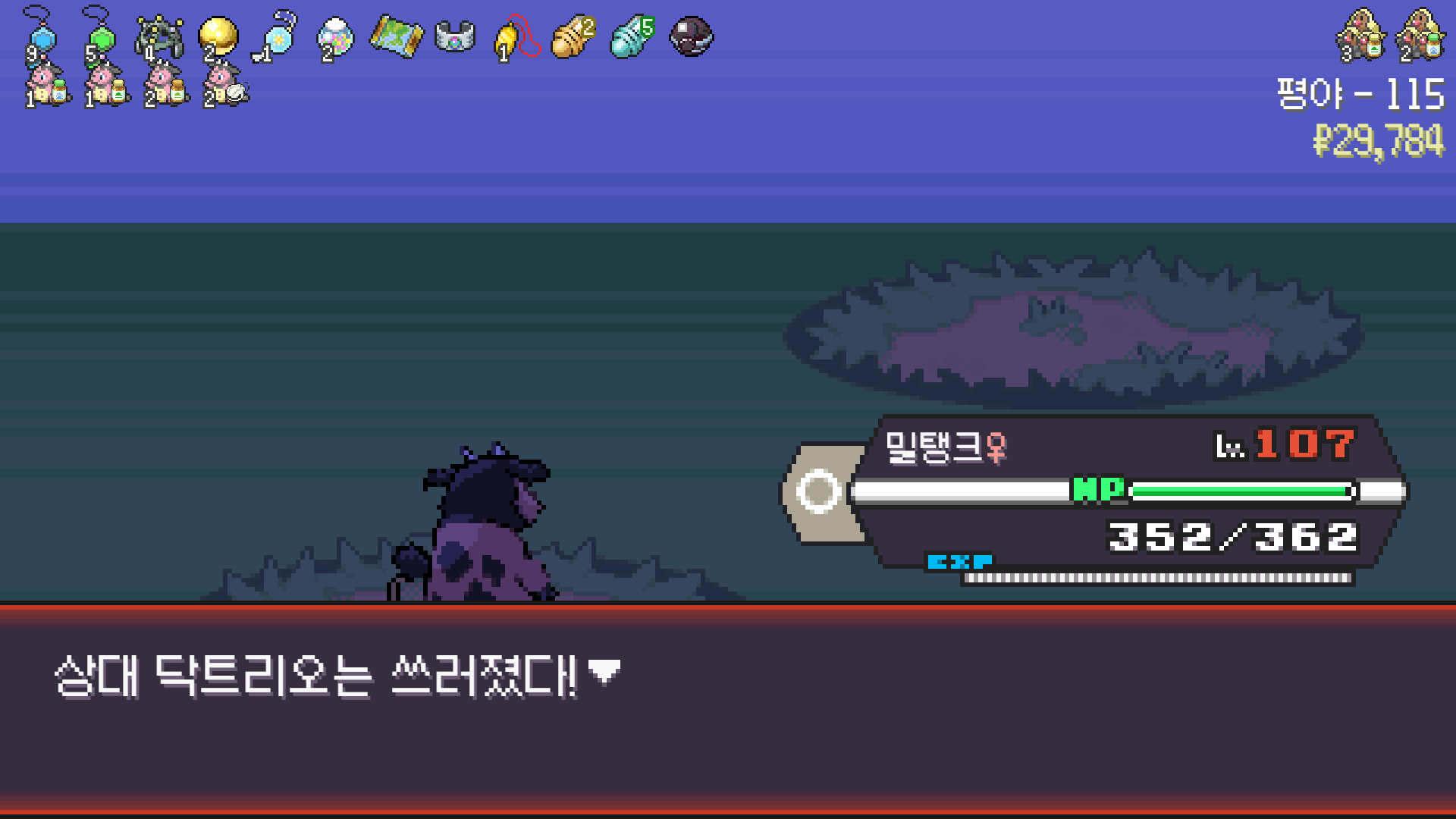 포획은 2마리 밖에 못했지만 회복템이 잘 붙어줘서 밀탱크 차력쇼로 클리어했다