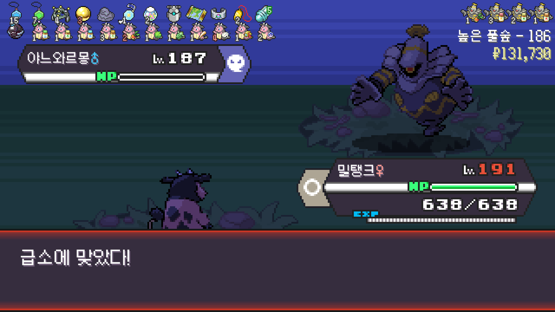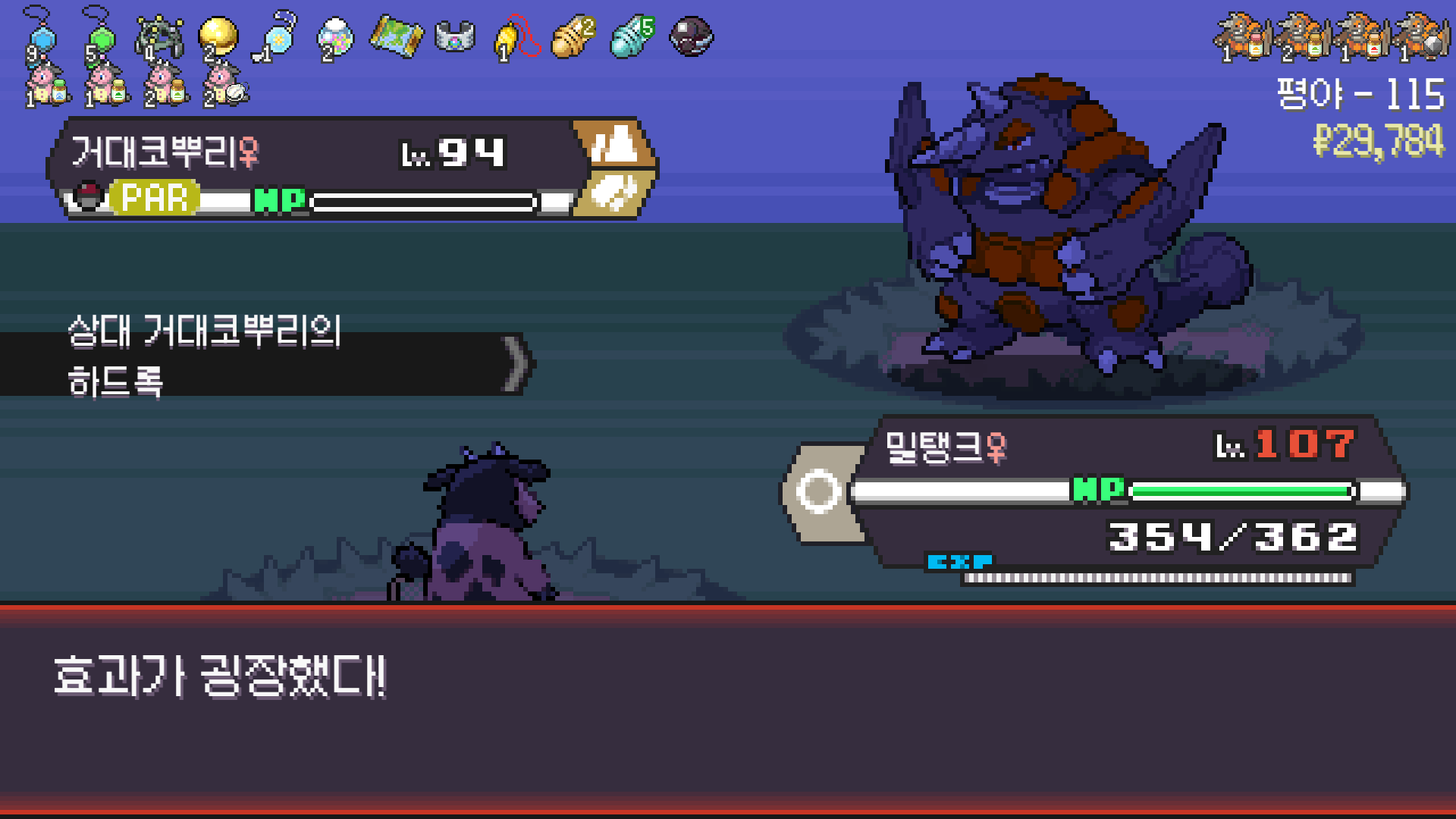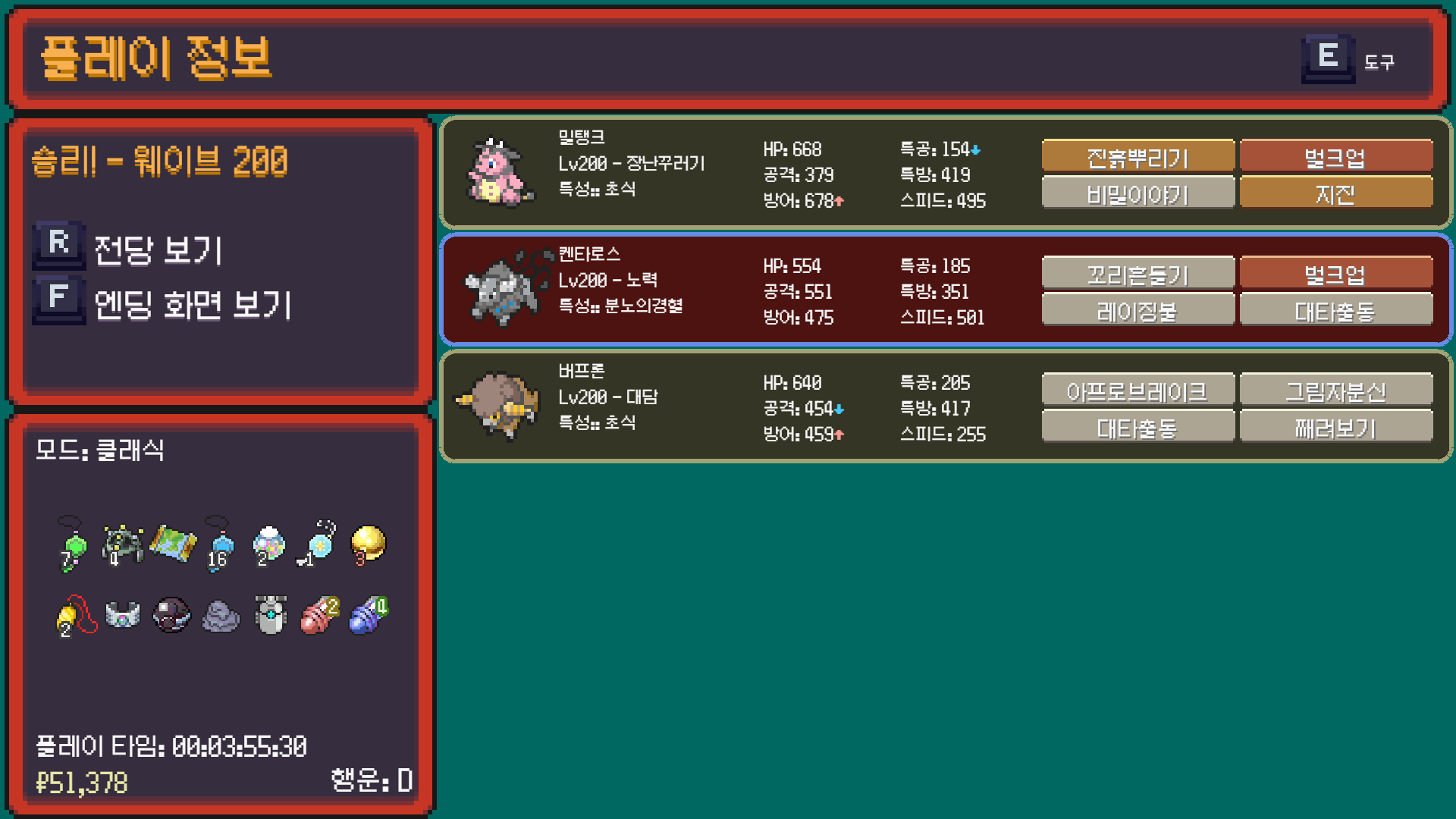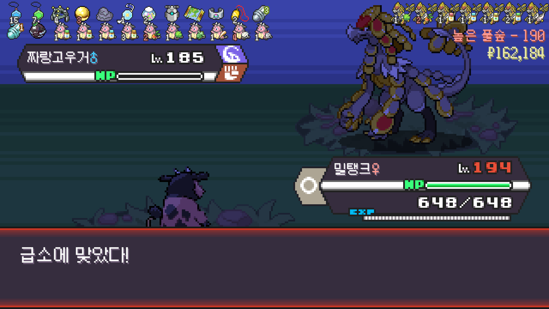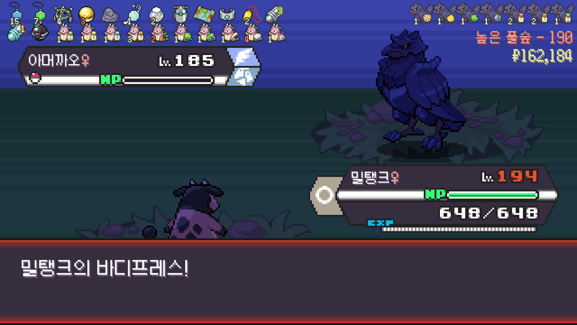 포획은 2마리 밖에 못했지만 회복템이 잘 붙어줘서 밀탱크 차력쇼로 클리어했다