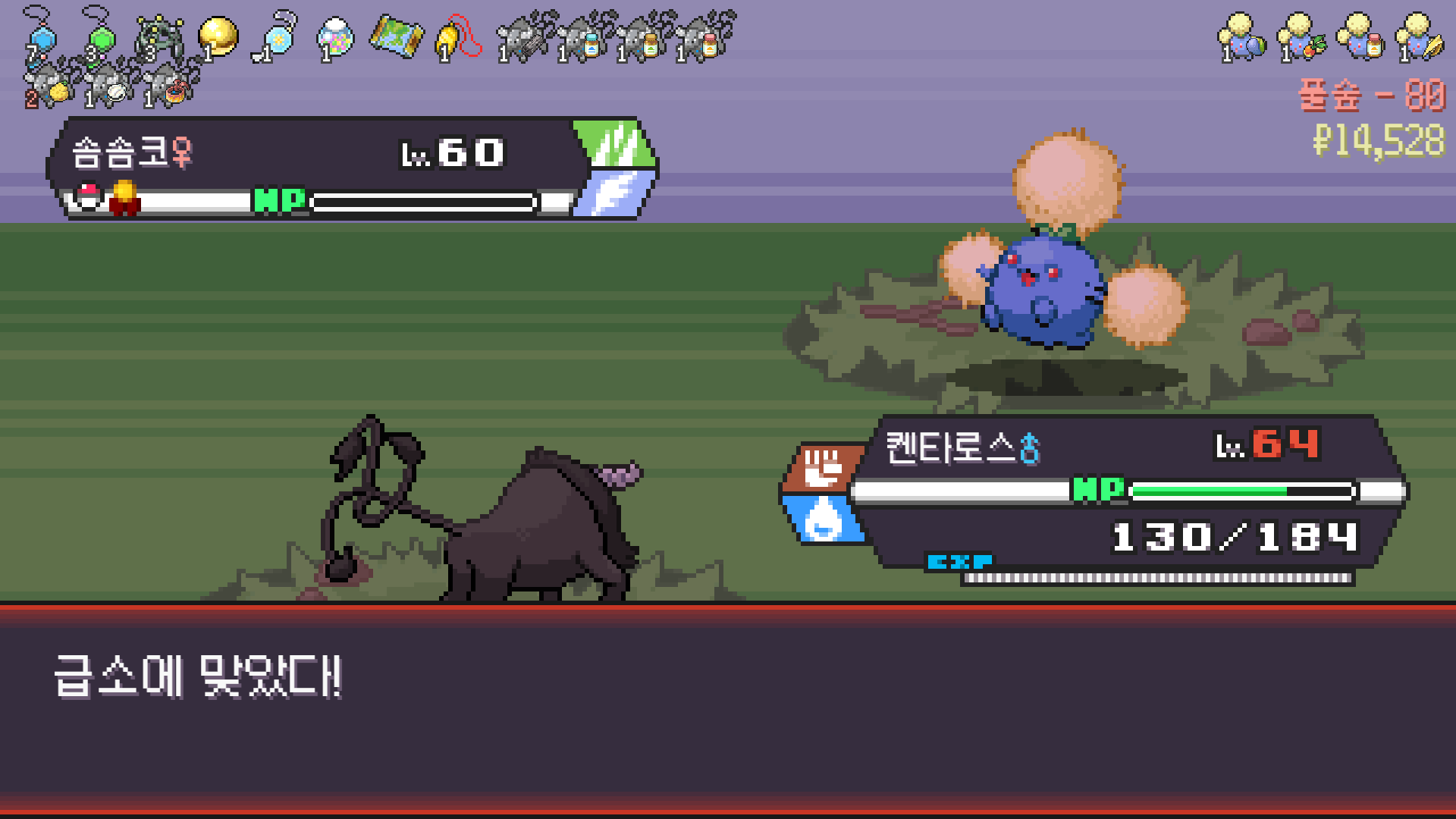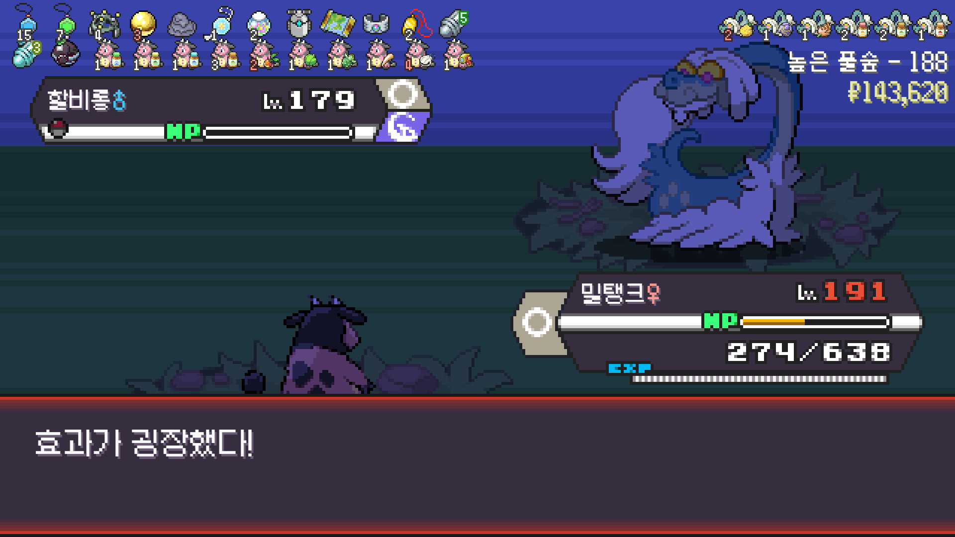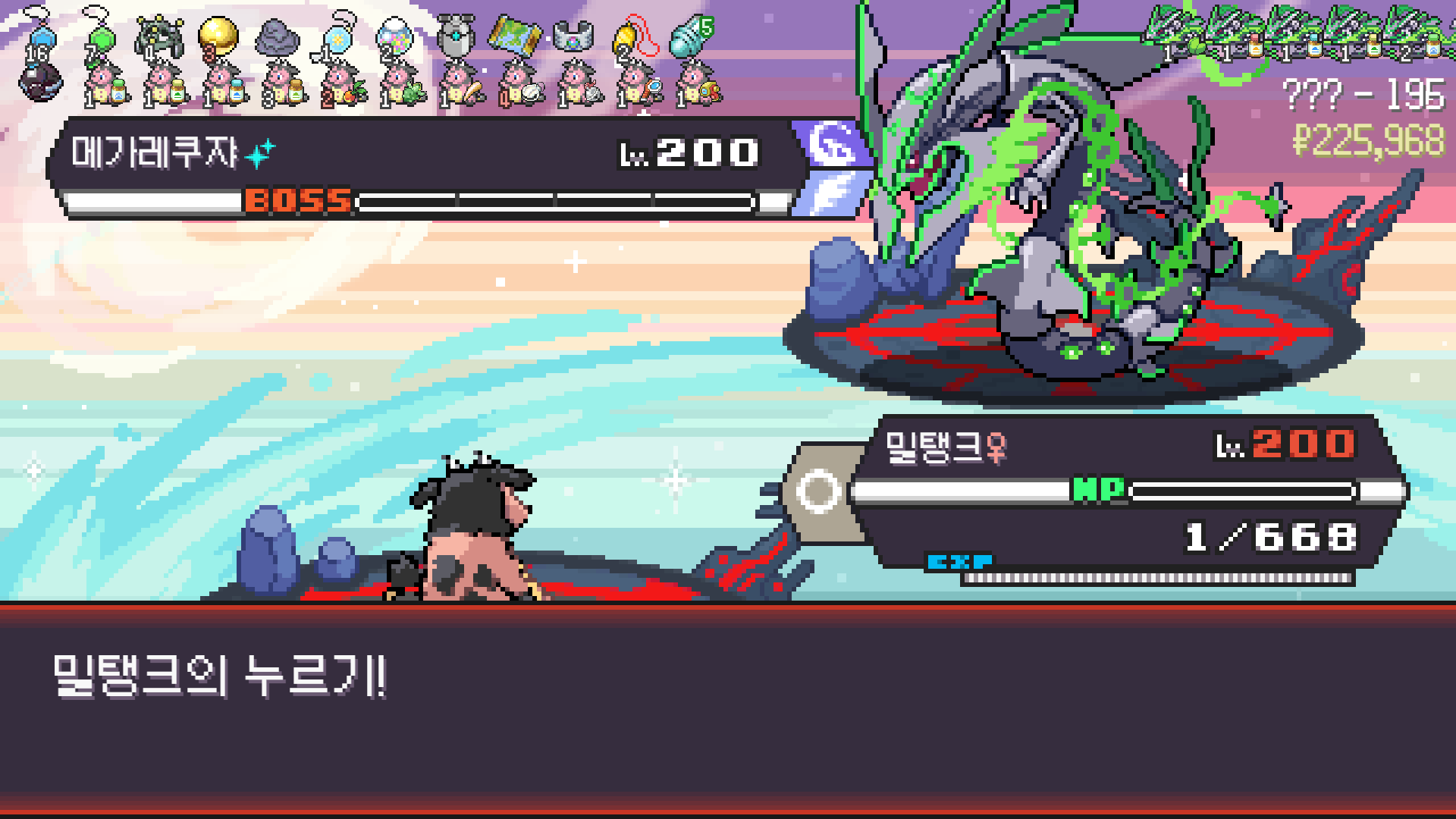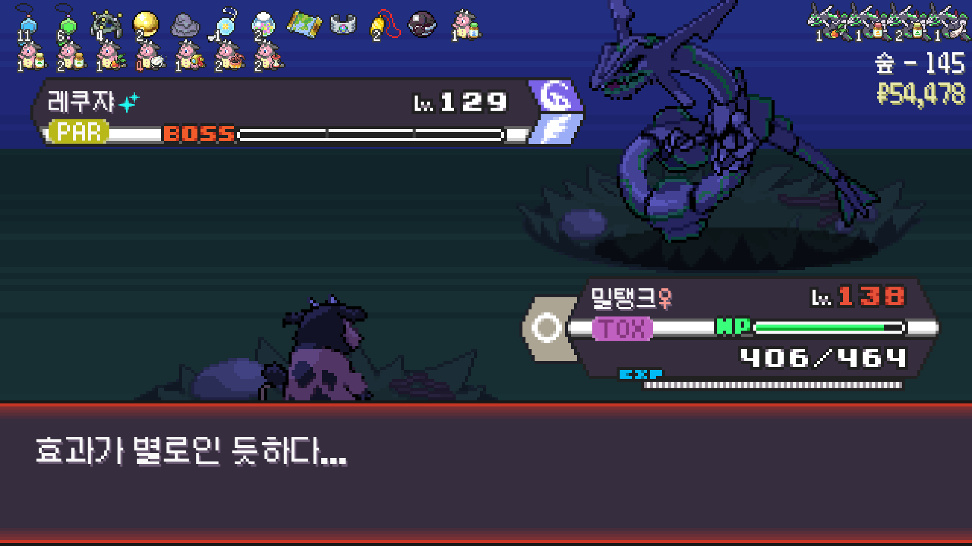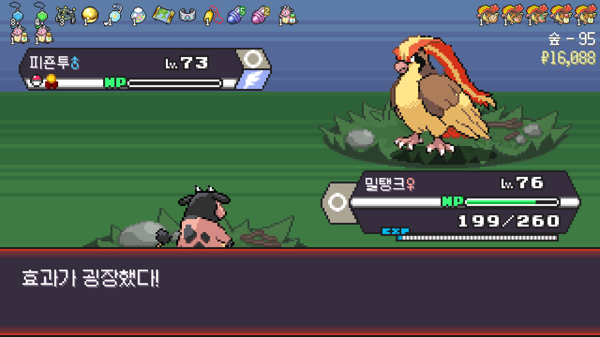 포획은 2마리 밖에 못했지만 회복템이 잘 붙어줘서 밀탱크 차력쇼로 클리어했다