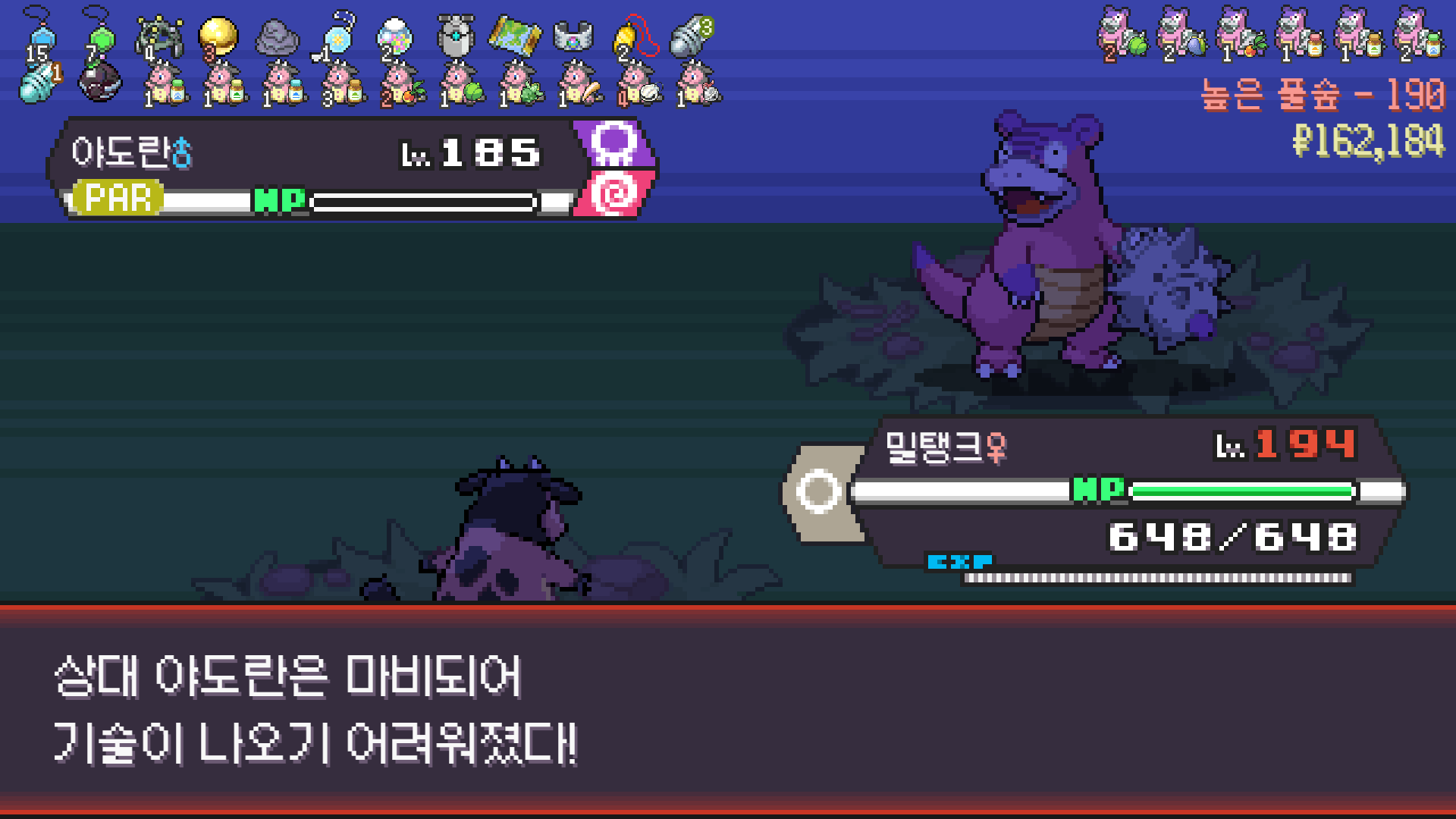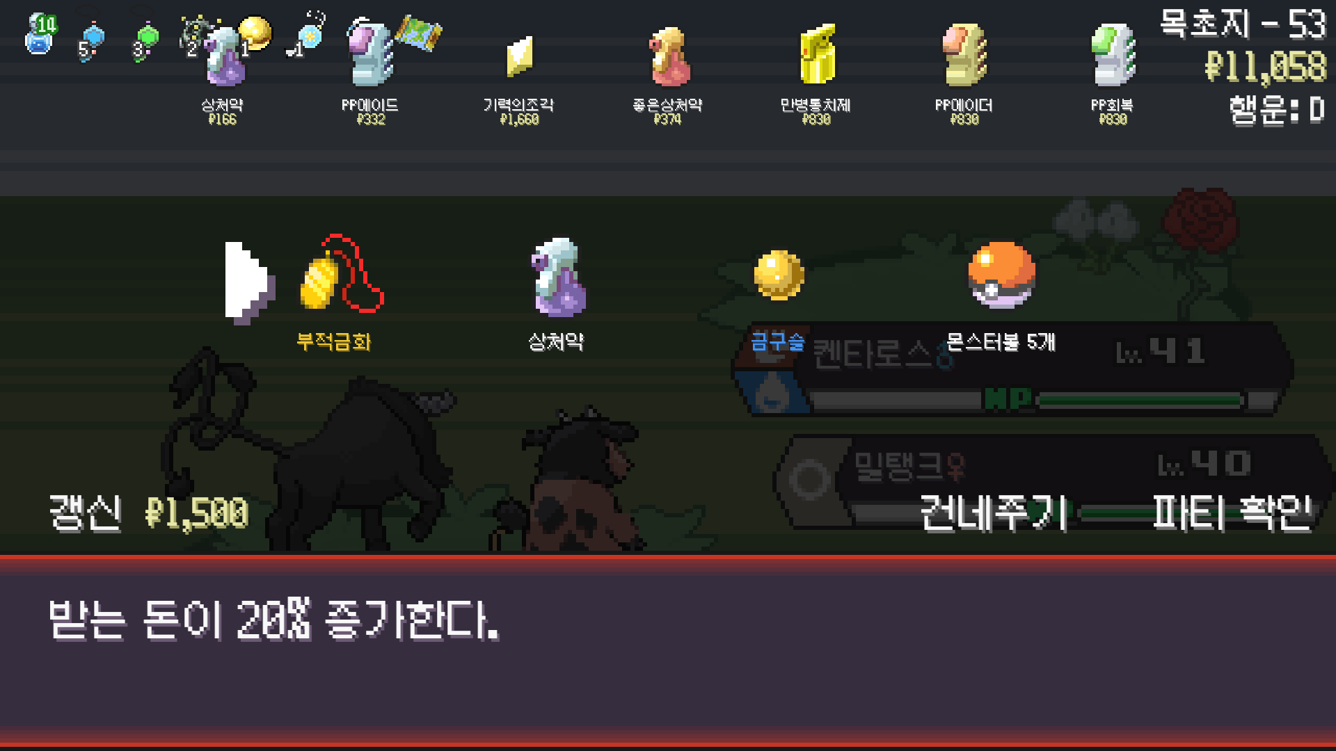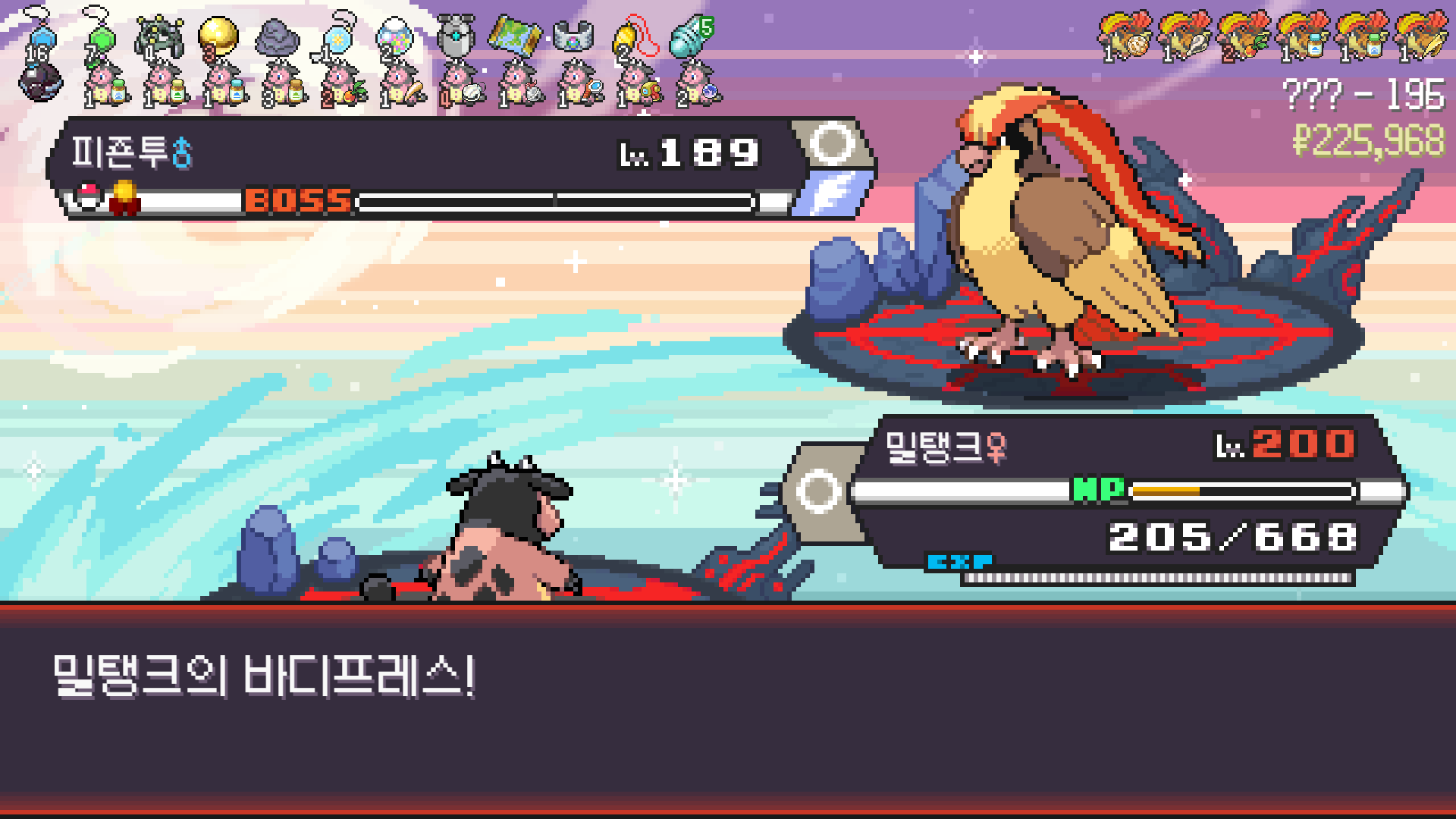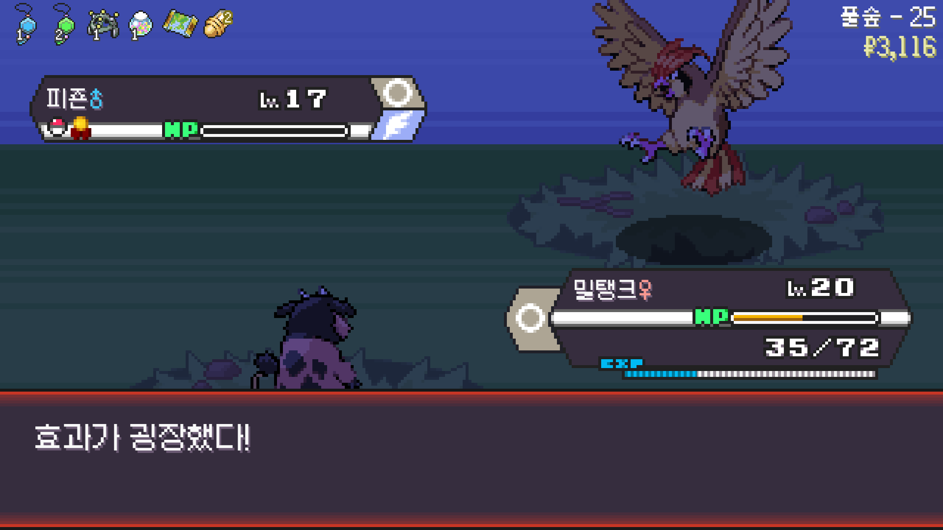 포획은 2마리 밖에 못했지만 회복템이 잘 붙어줘서 밀탱크 차력쇼로 클리어했다