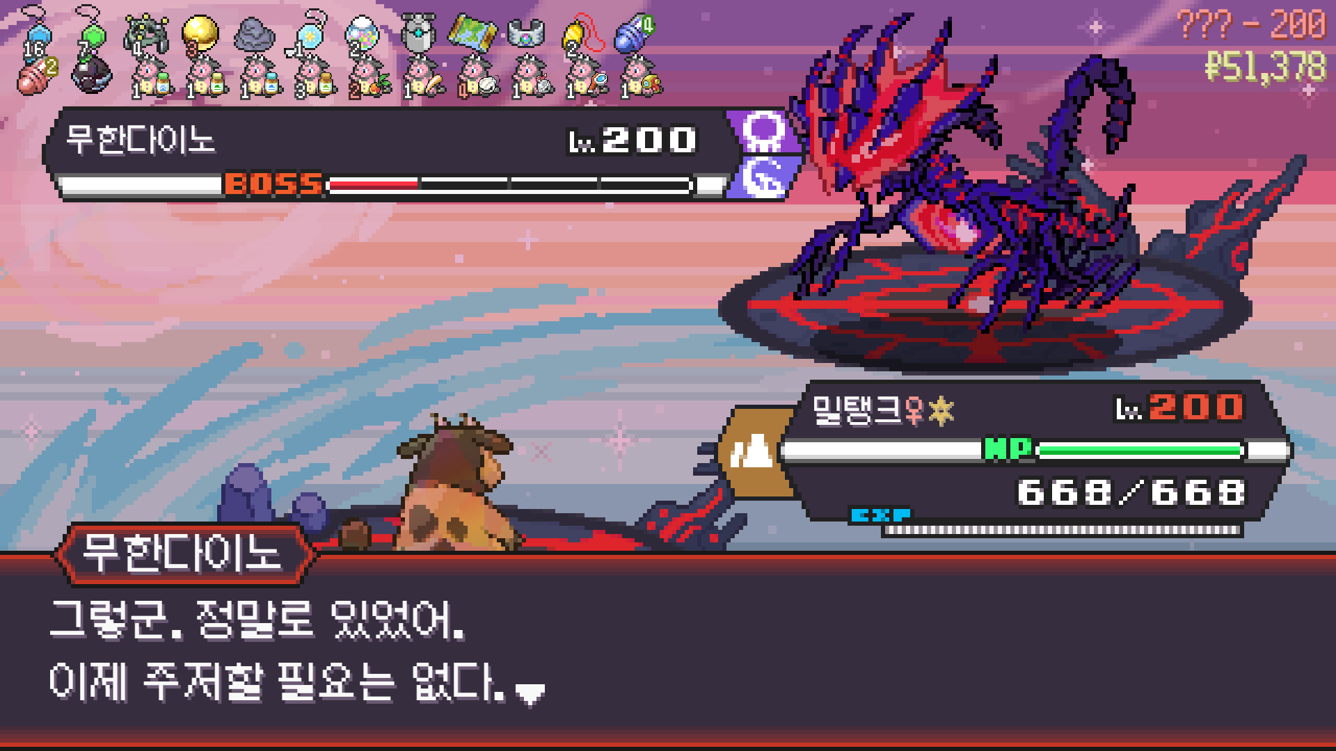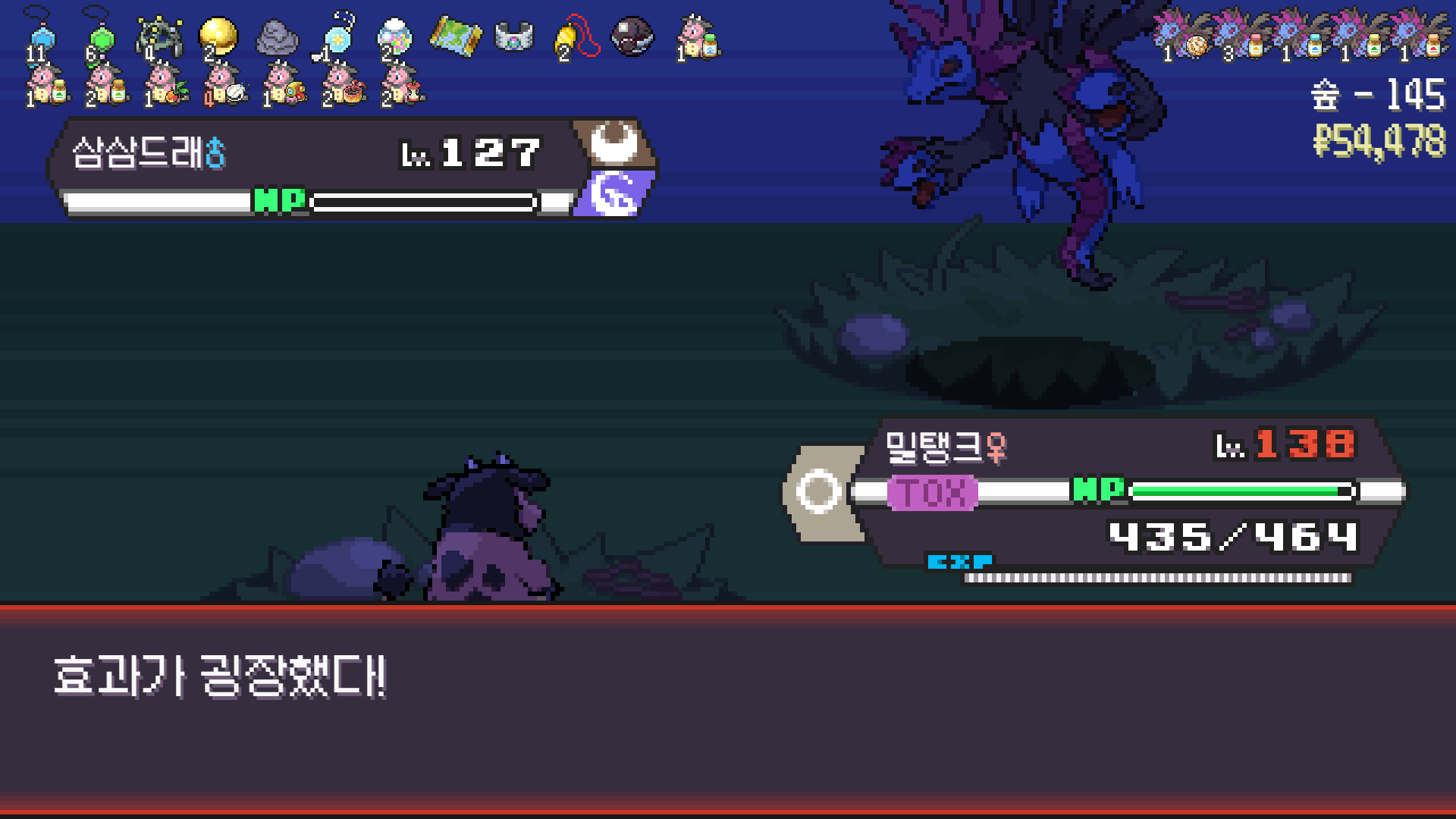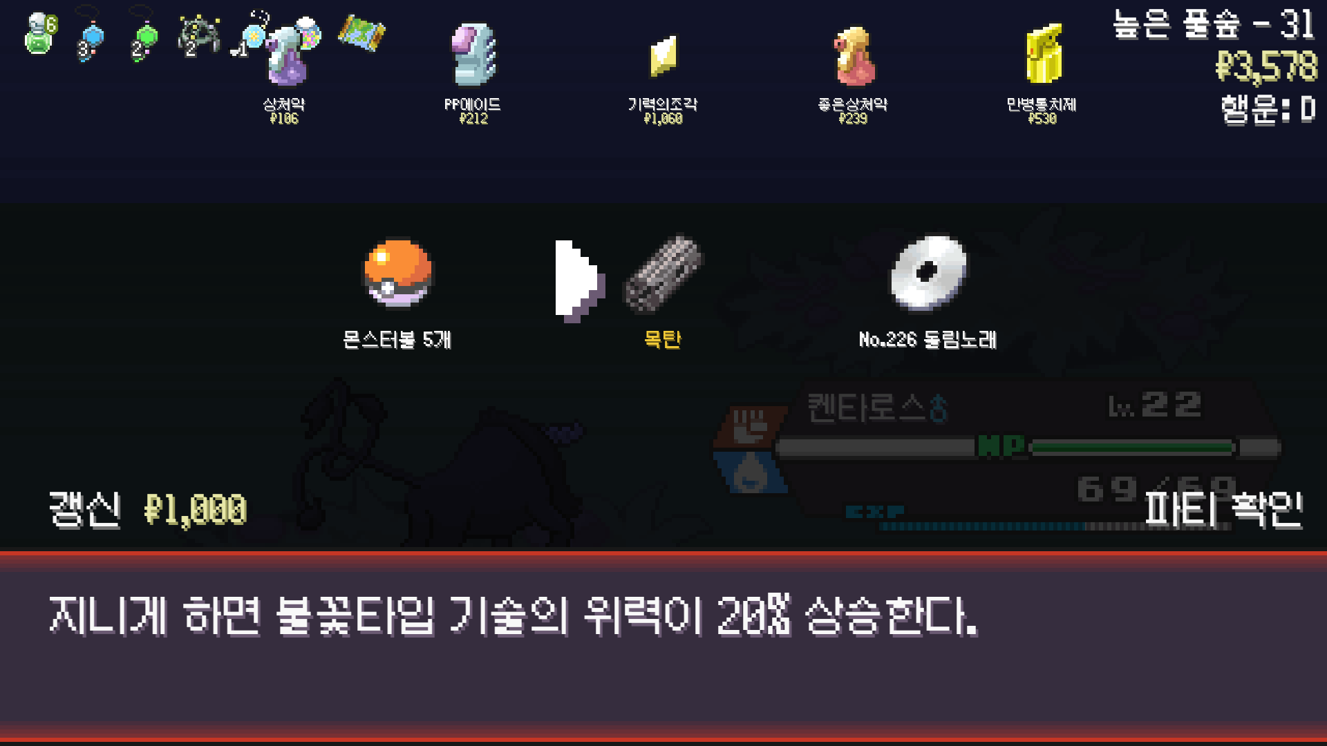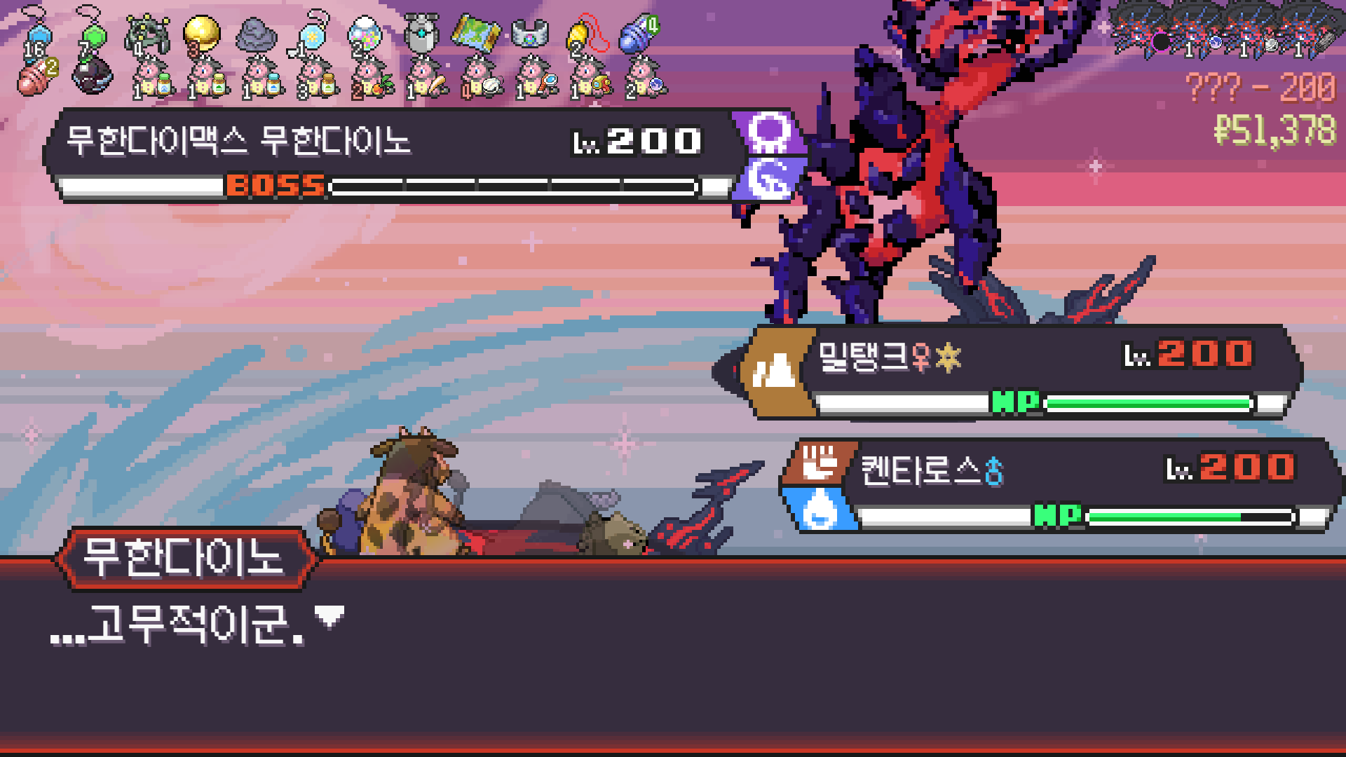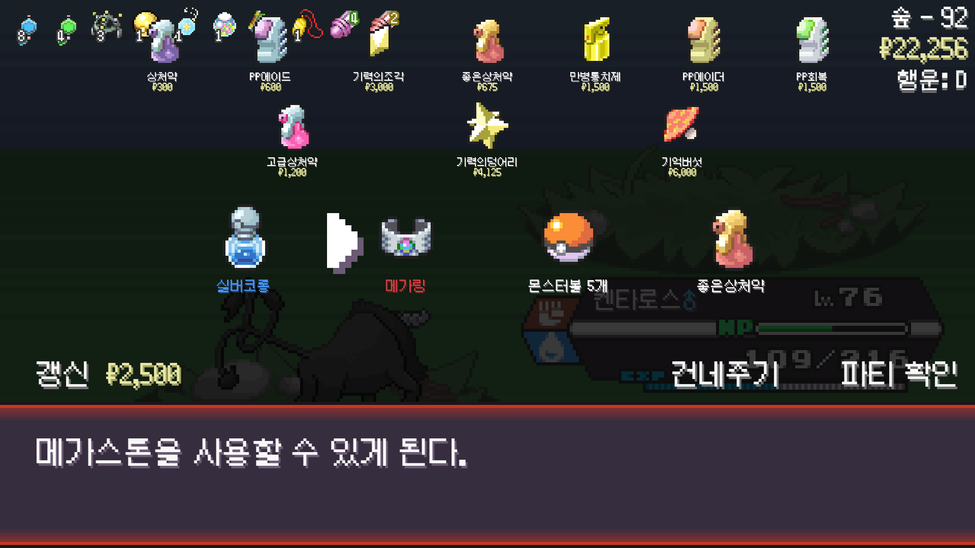 포획은 2마리 밖에 못했지만 회복템이 잘 붙어줘서 밀탱크 차력쇼로 클리어했다