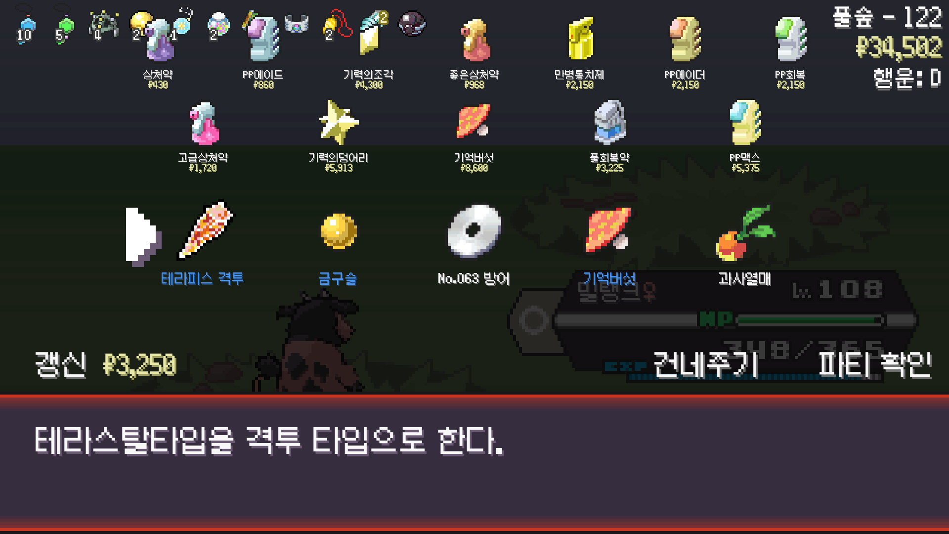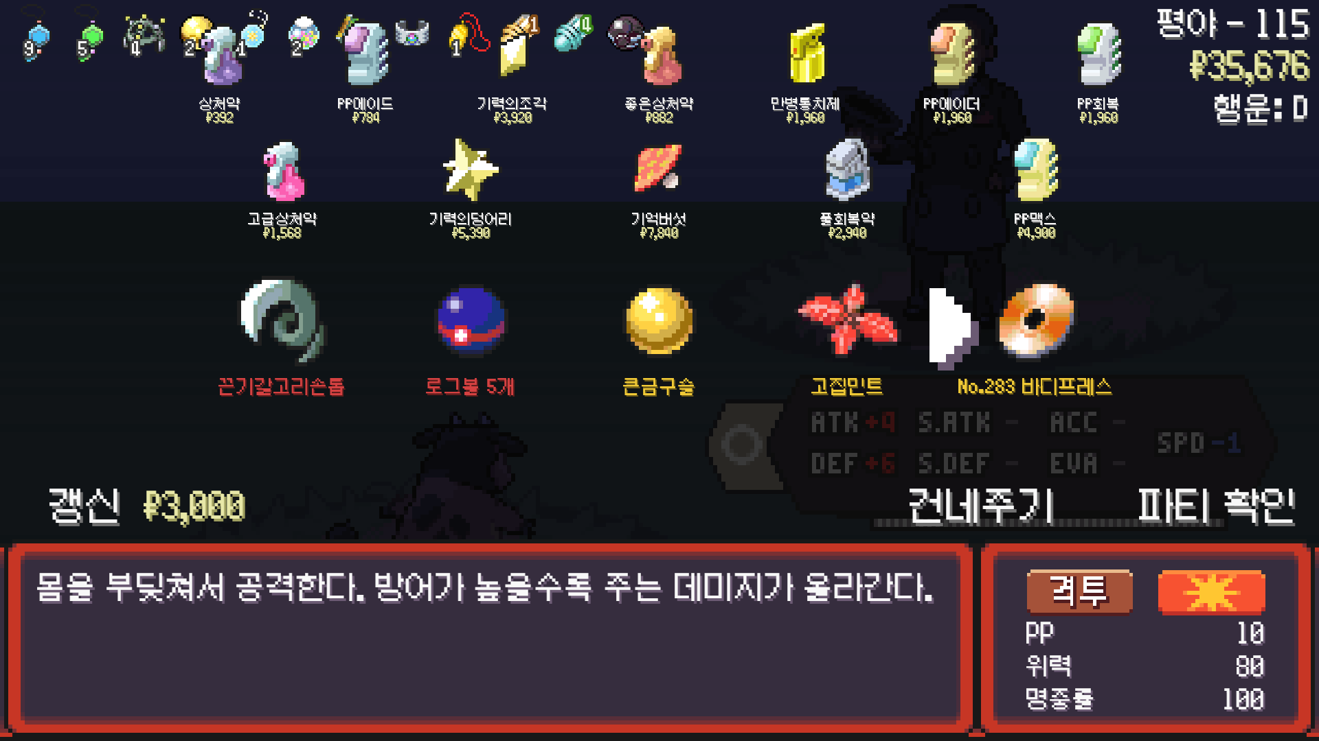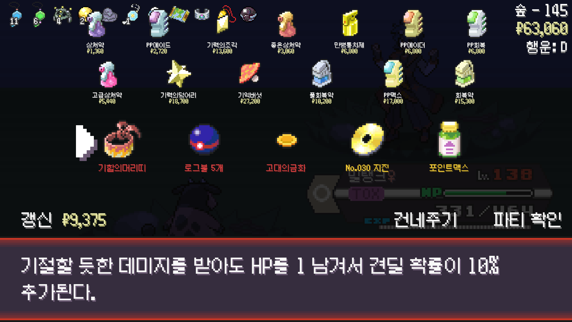 도막을 돌멩이로 막듯 회복템을 지키기 위한 잡템 추가