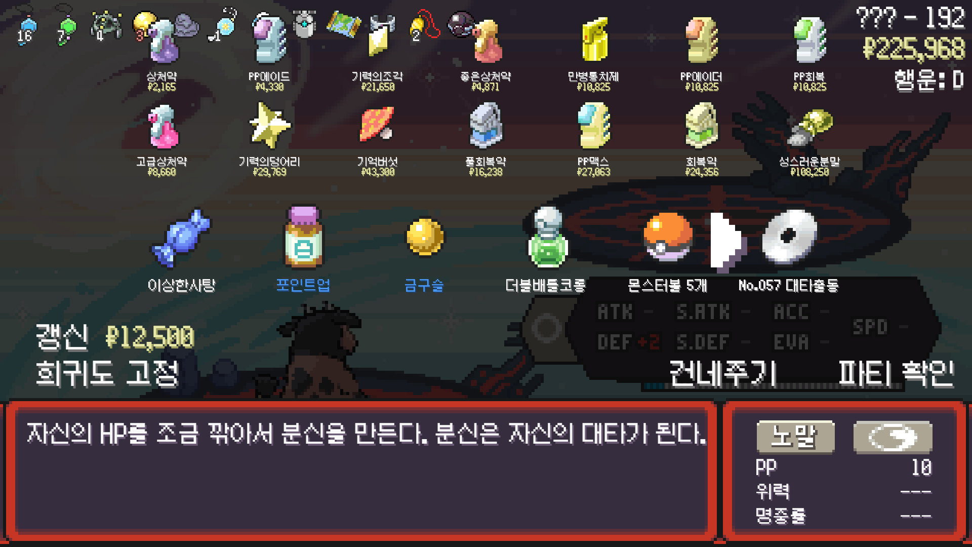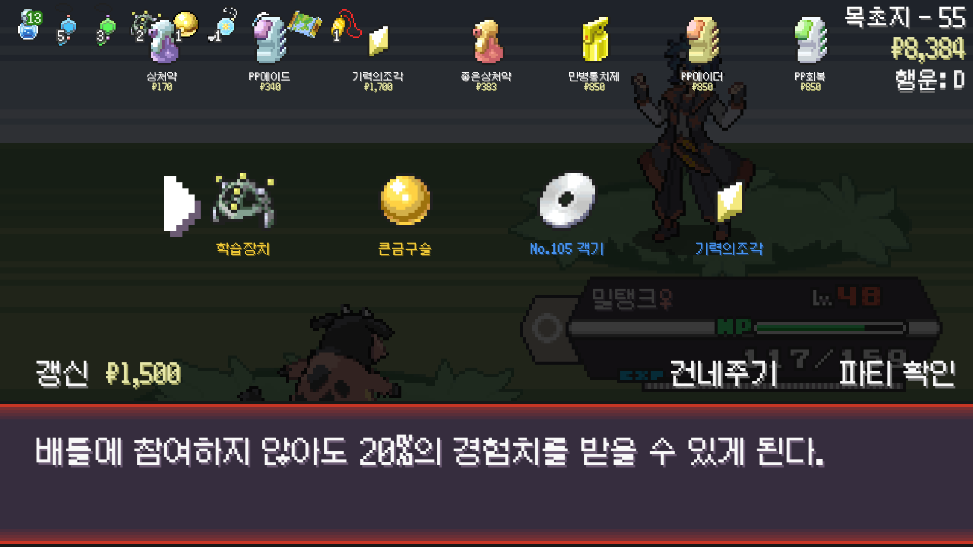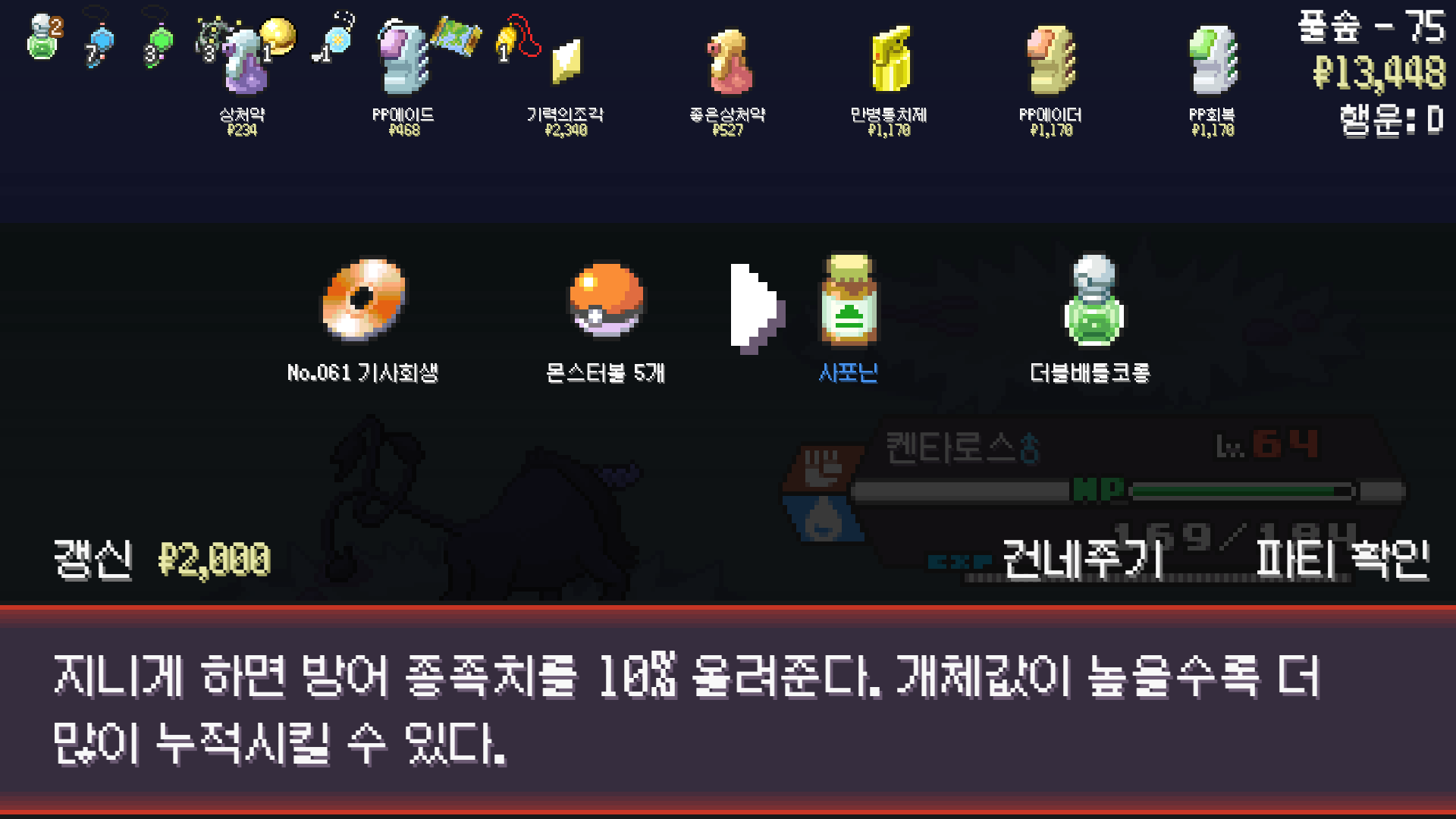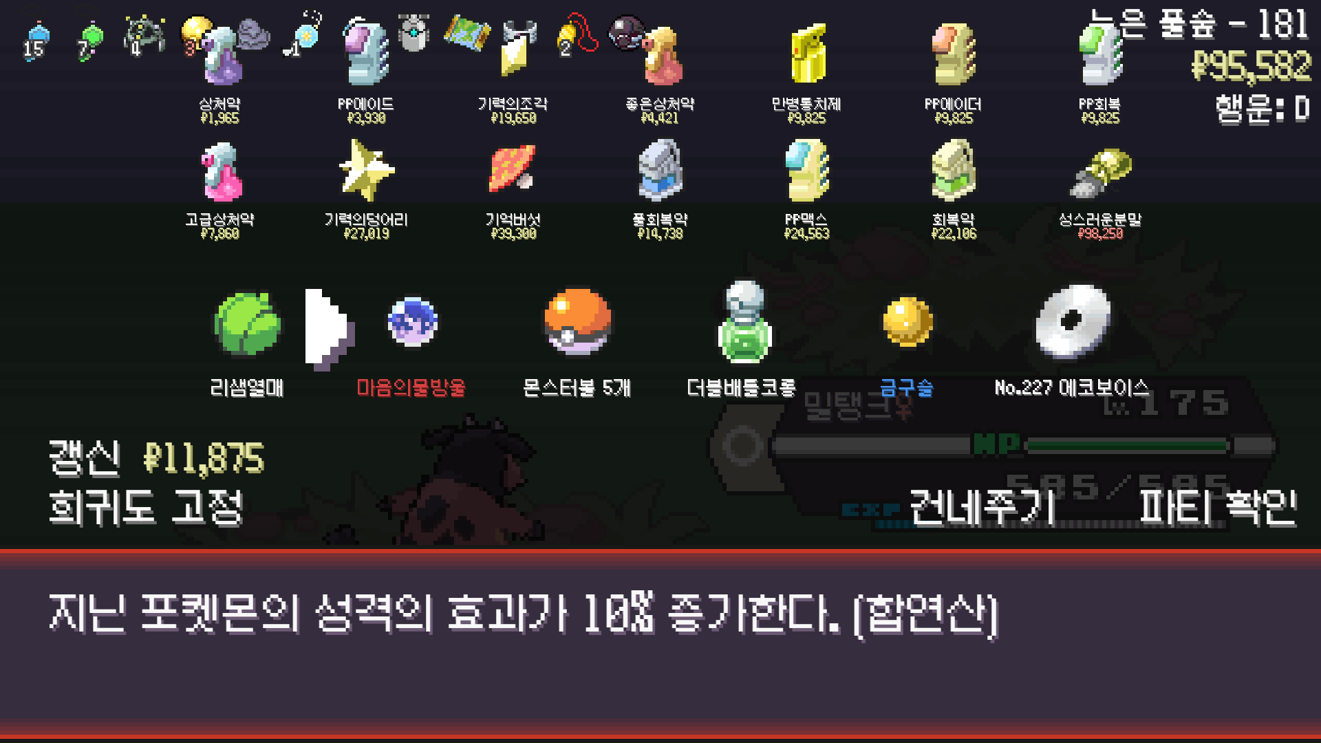도막을 돌멩이로 막듯 회복템을 지키기 위한 잡템 추가