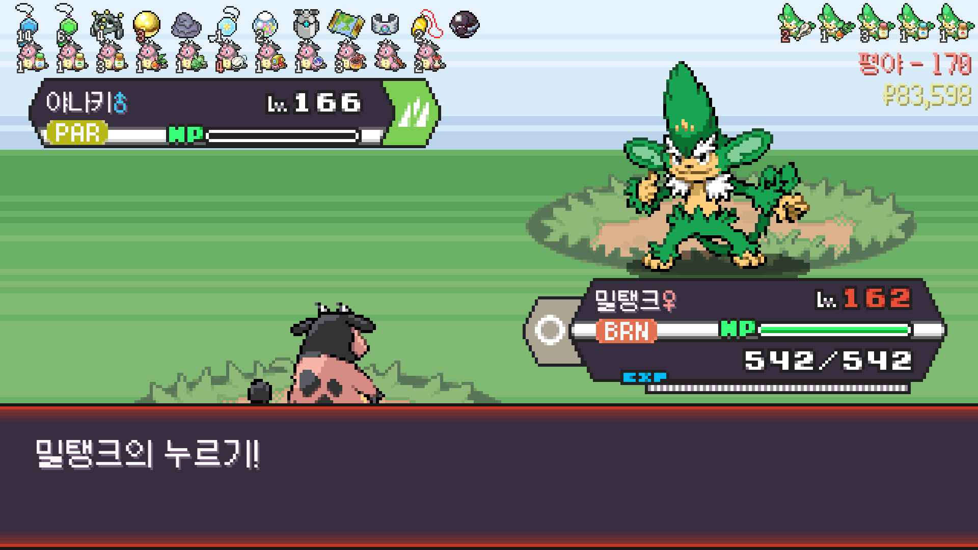 메가니움 기점으로 랭업 + 풀 포켓몬 많이 나오니 밀탱크 특성 초식으로 변경