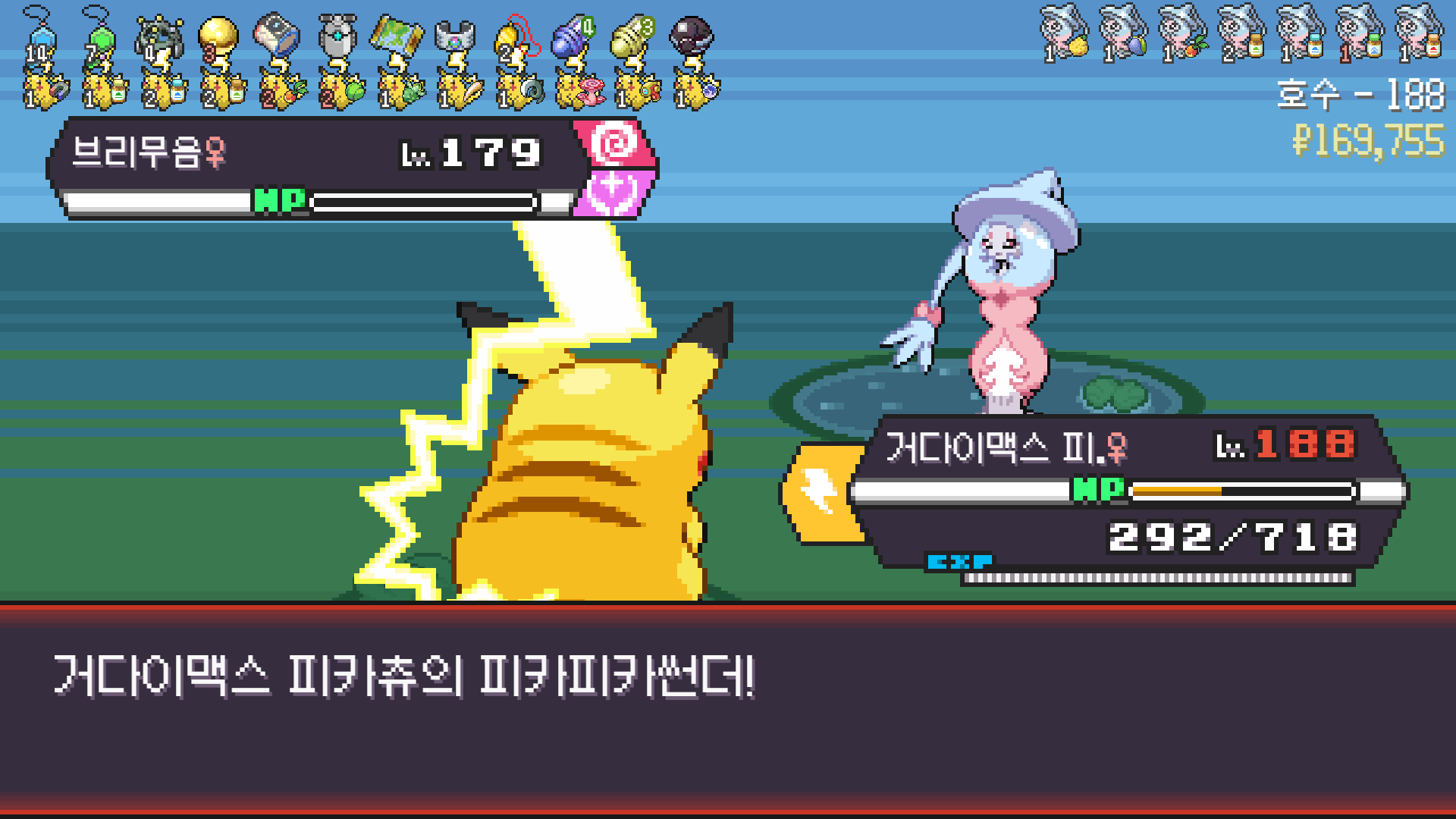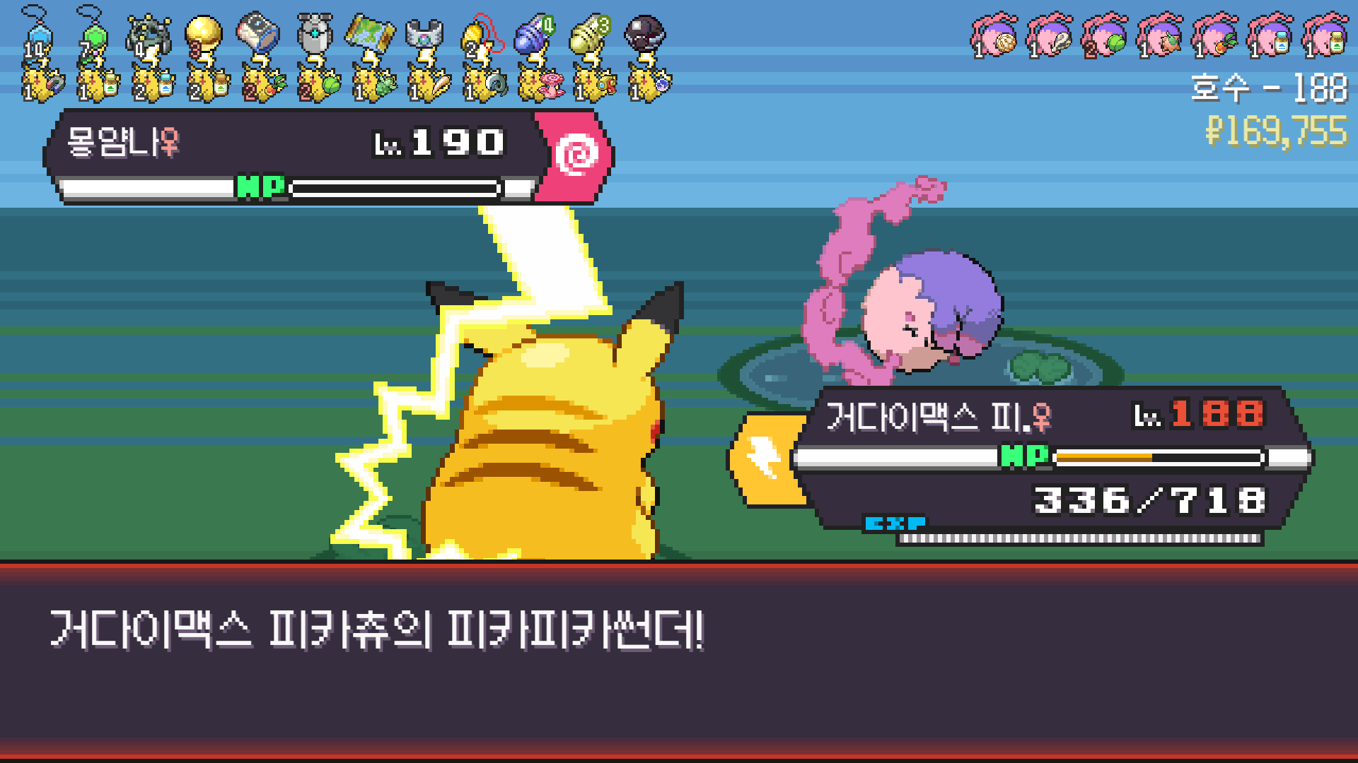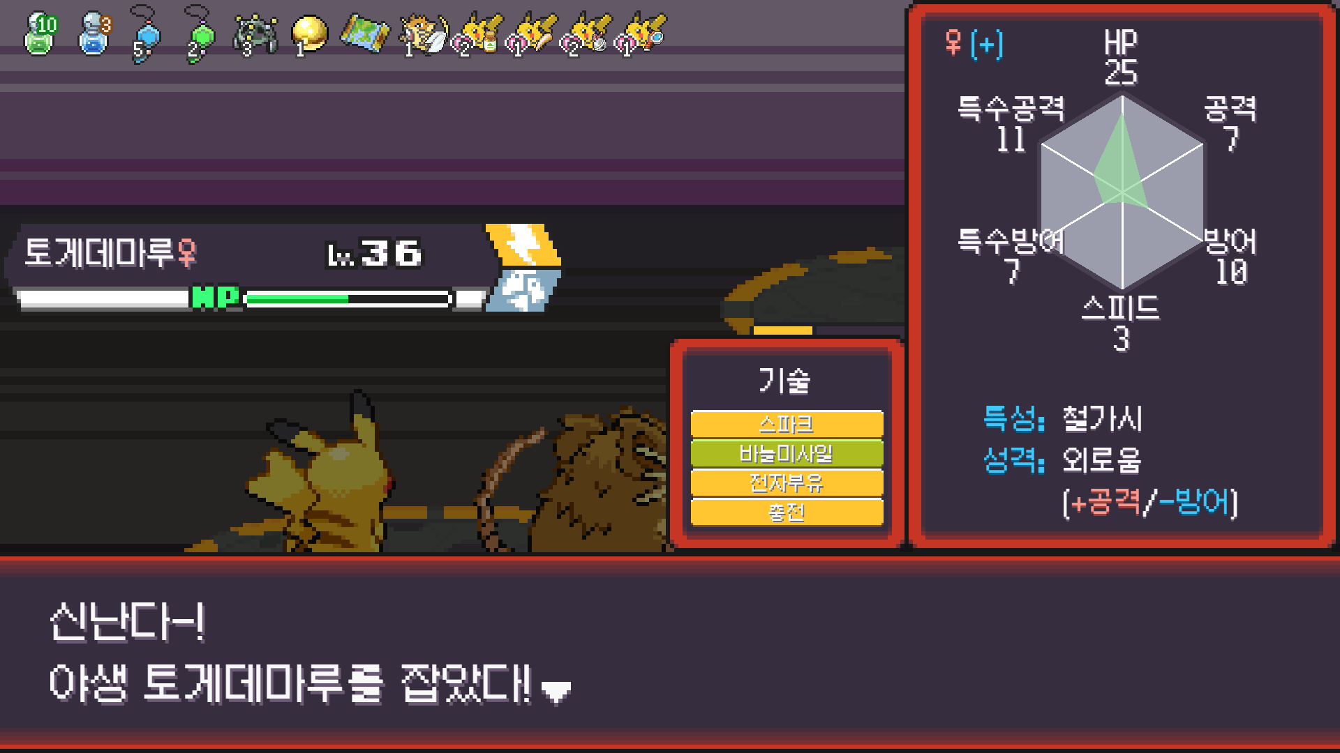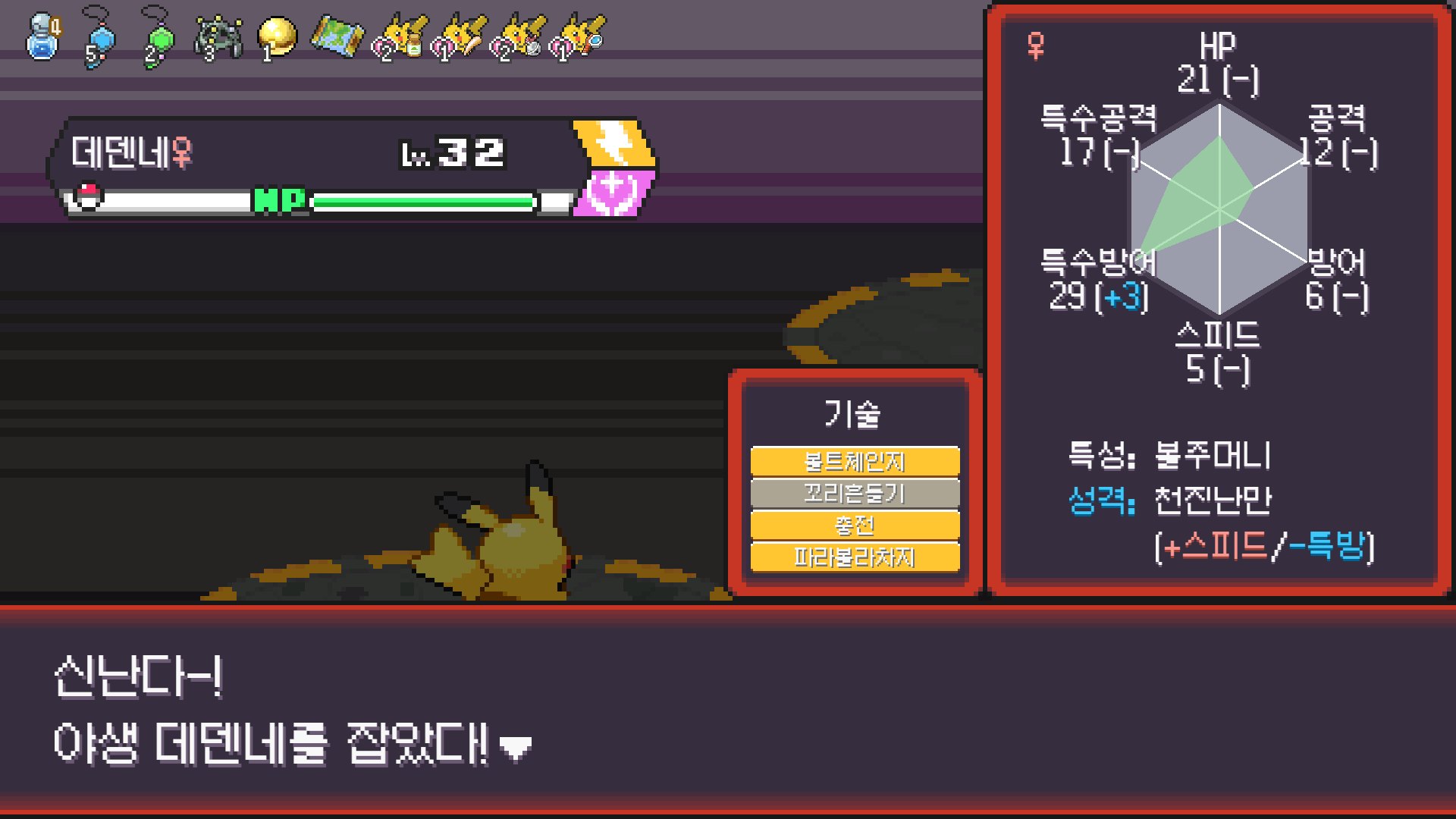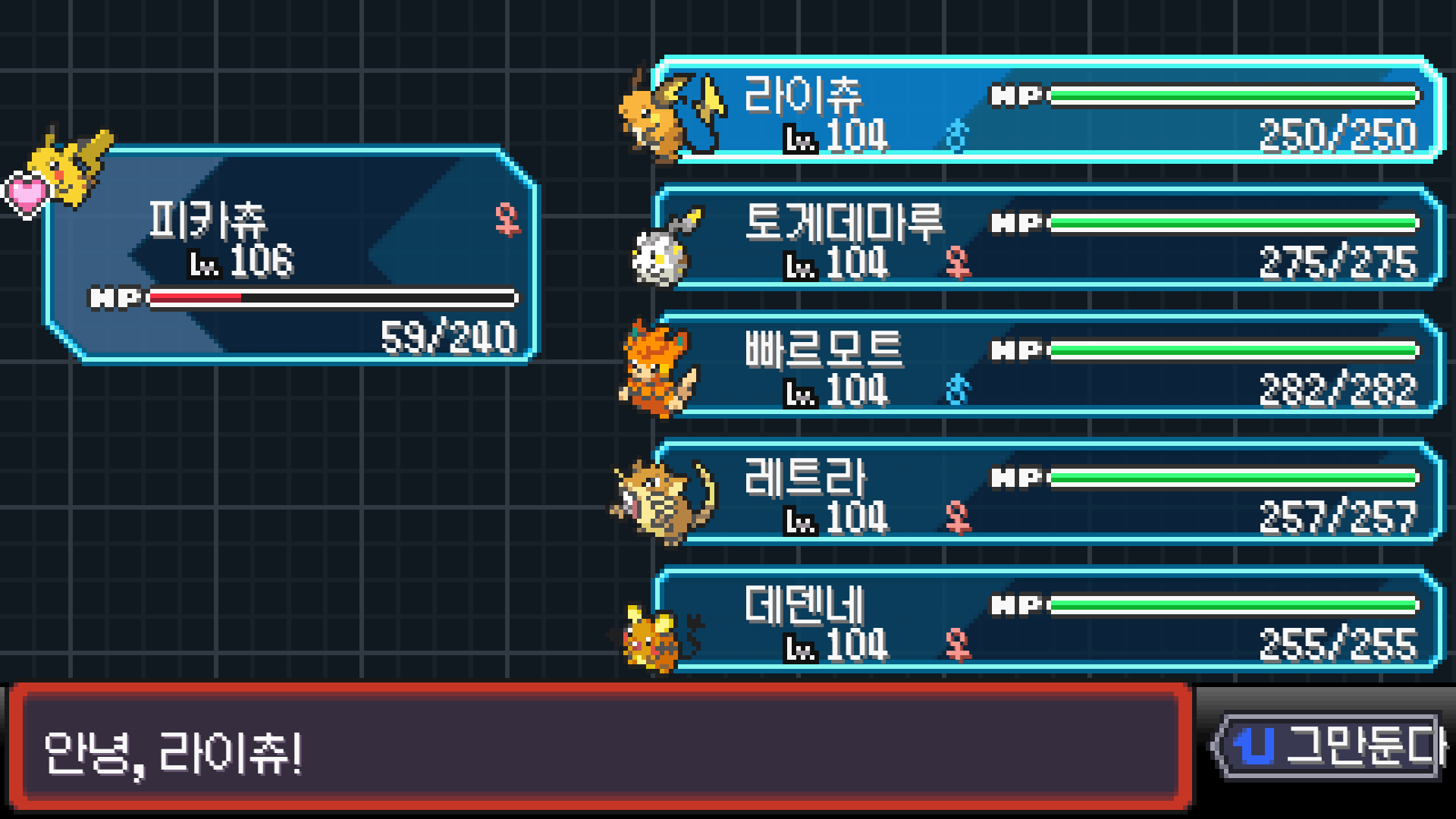 피카츄는 괴전파 장착, 나머지 쩌리들에 랭업기 몇 개 집어넣고
