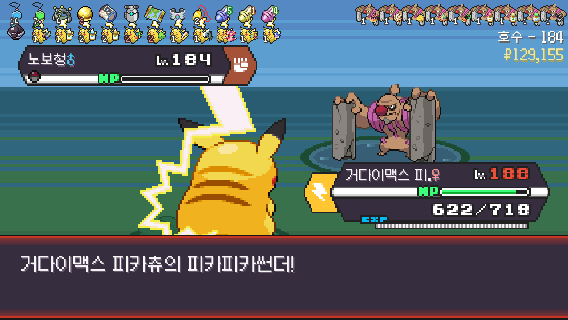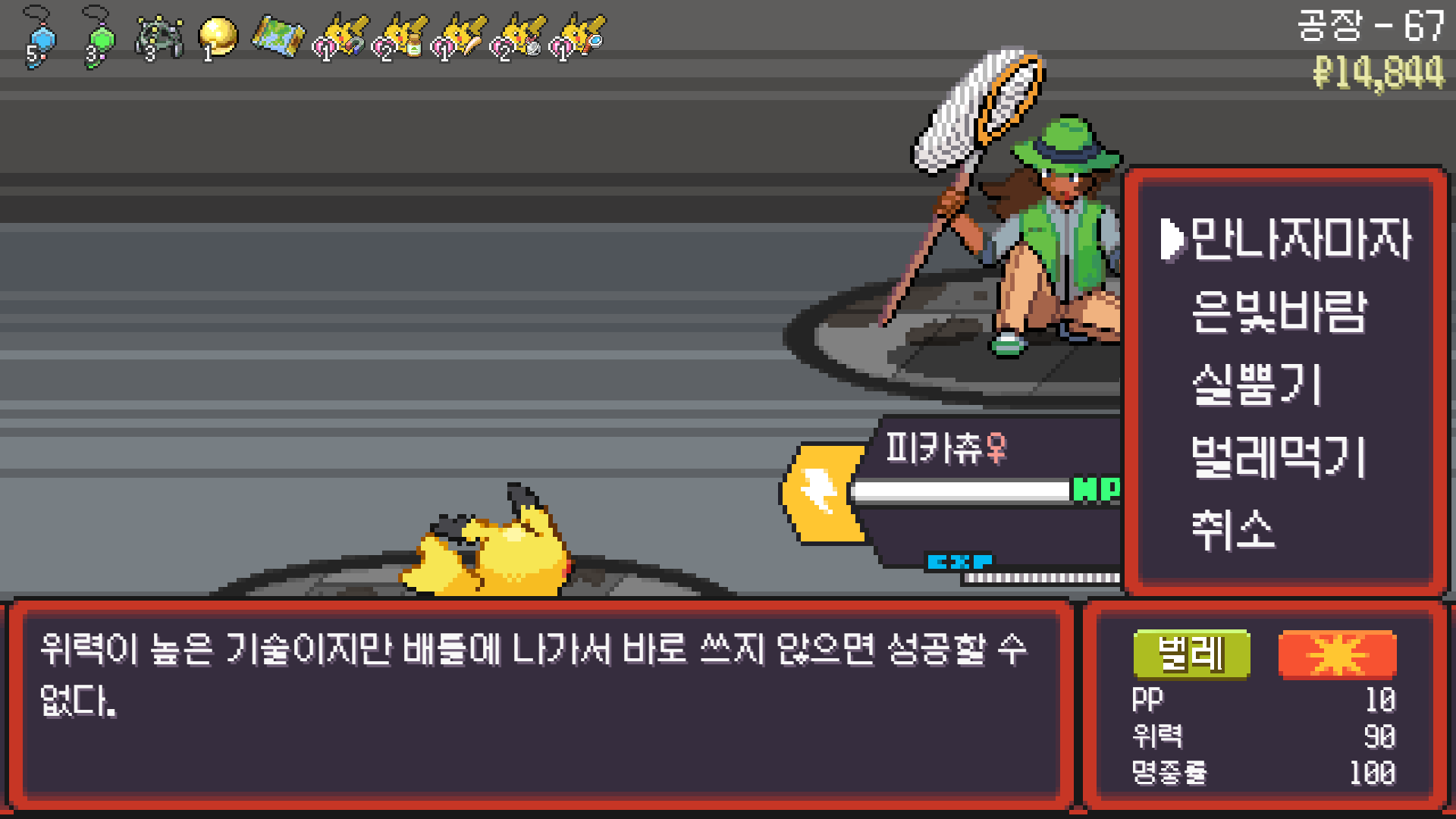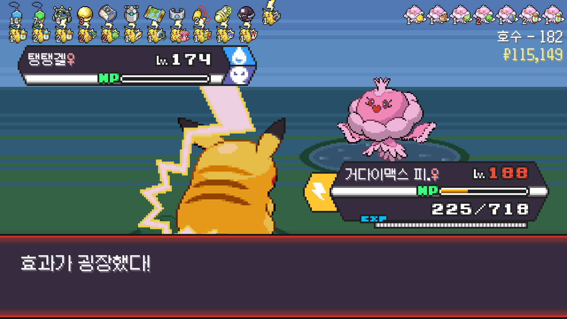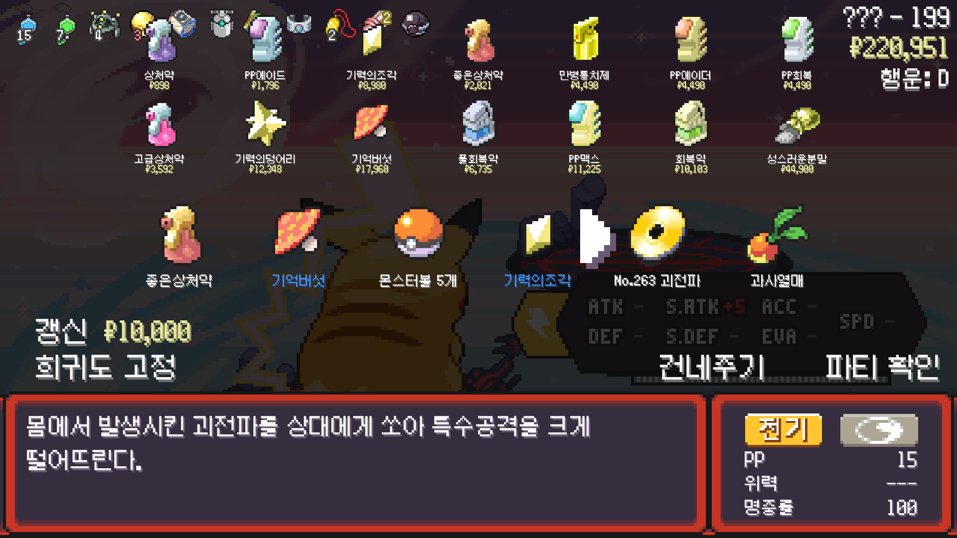 피카츄는 괴전파 장착, 나머지 쩌리들에 랭업기 몇 개 집어넣고