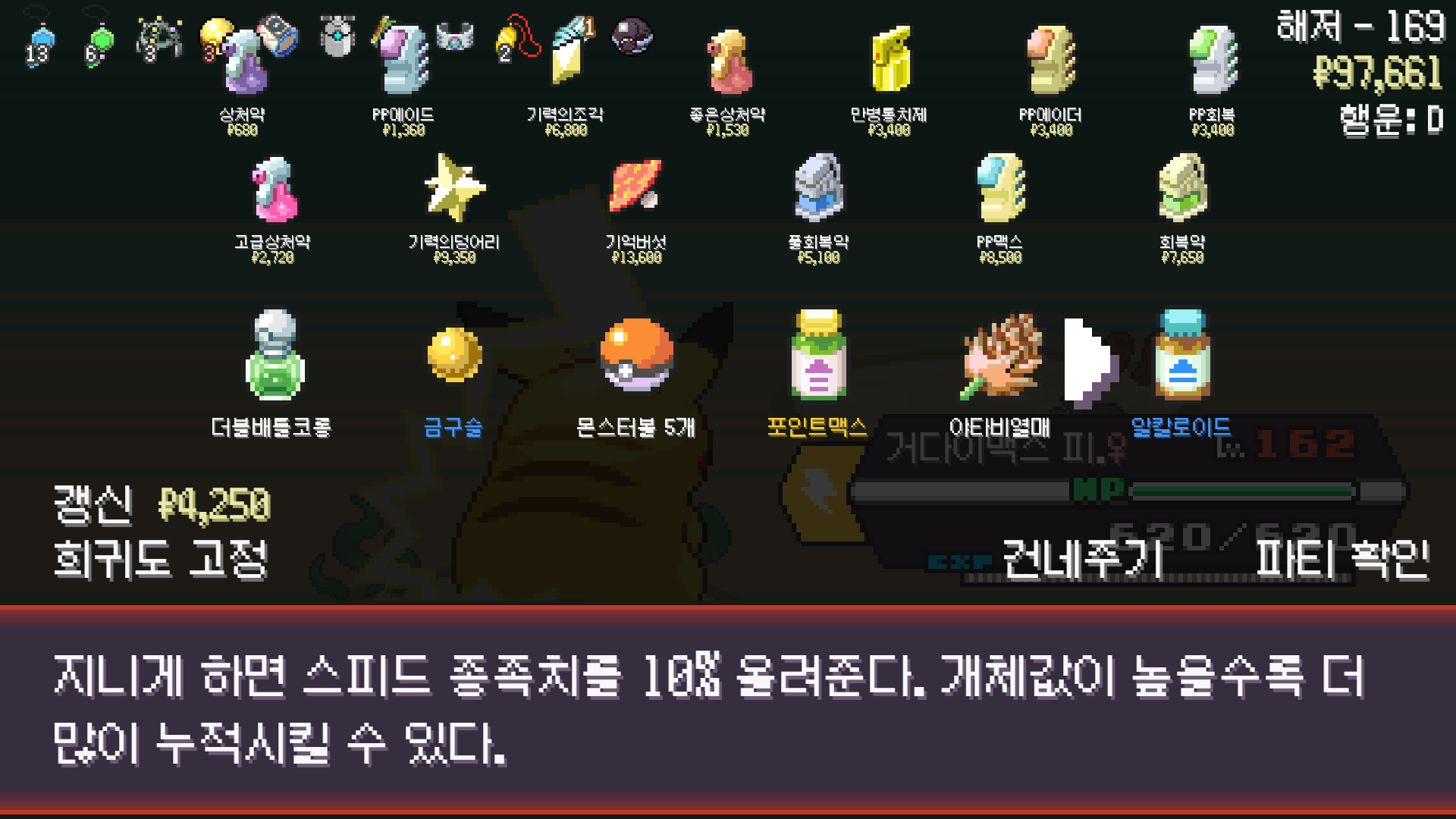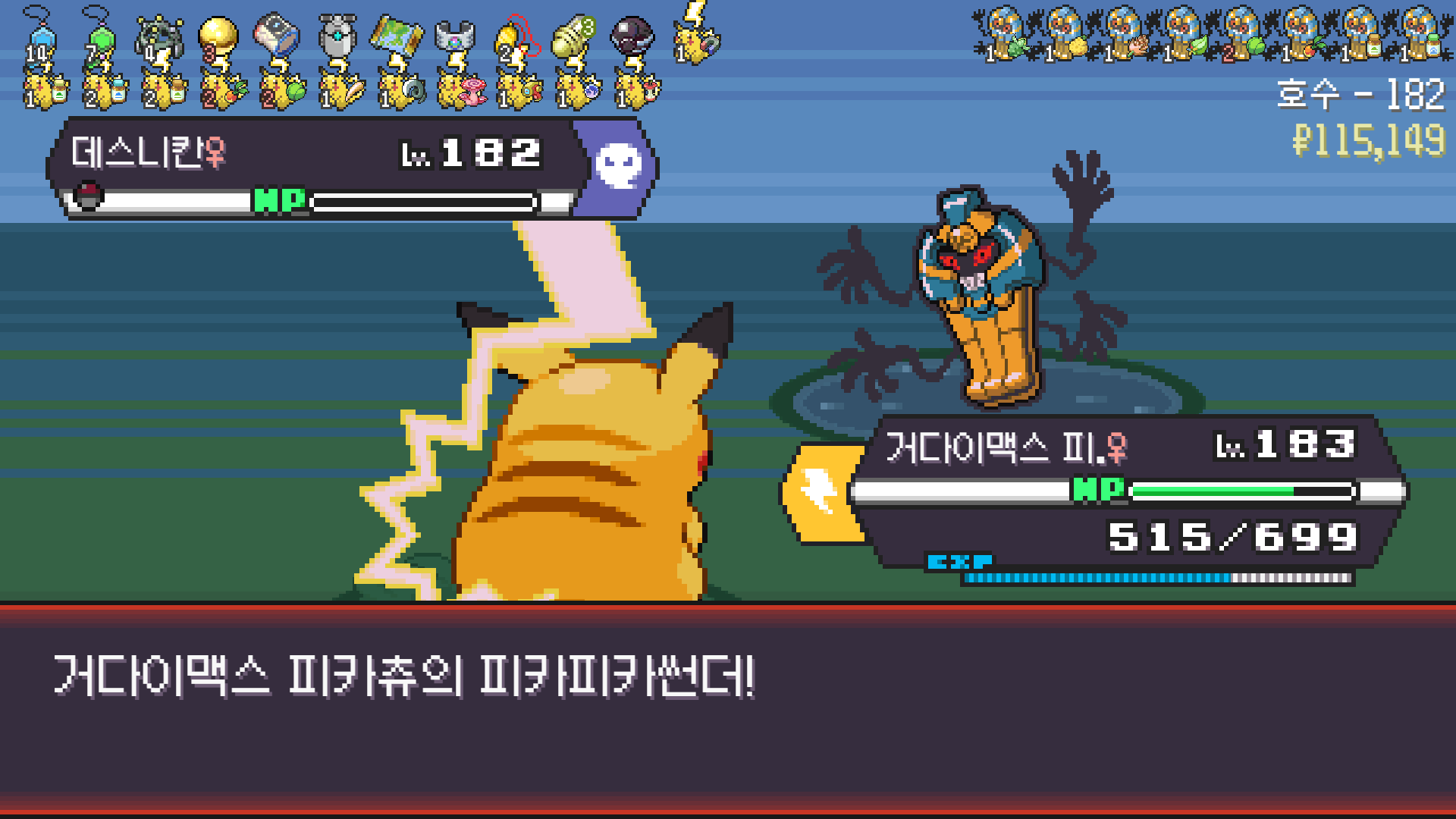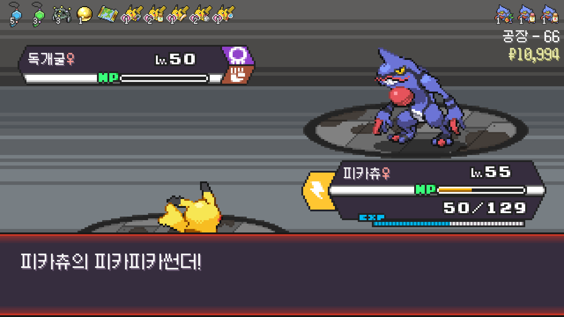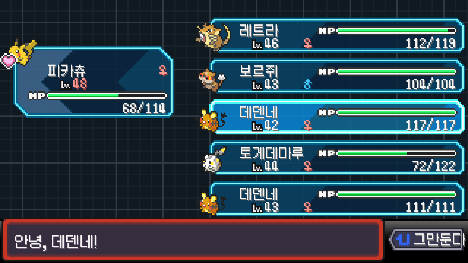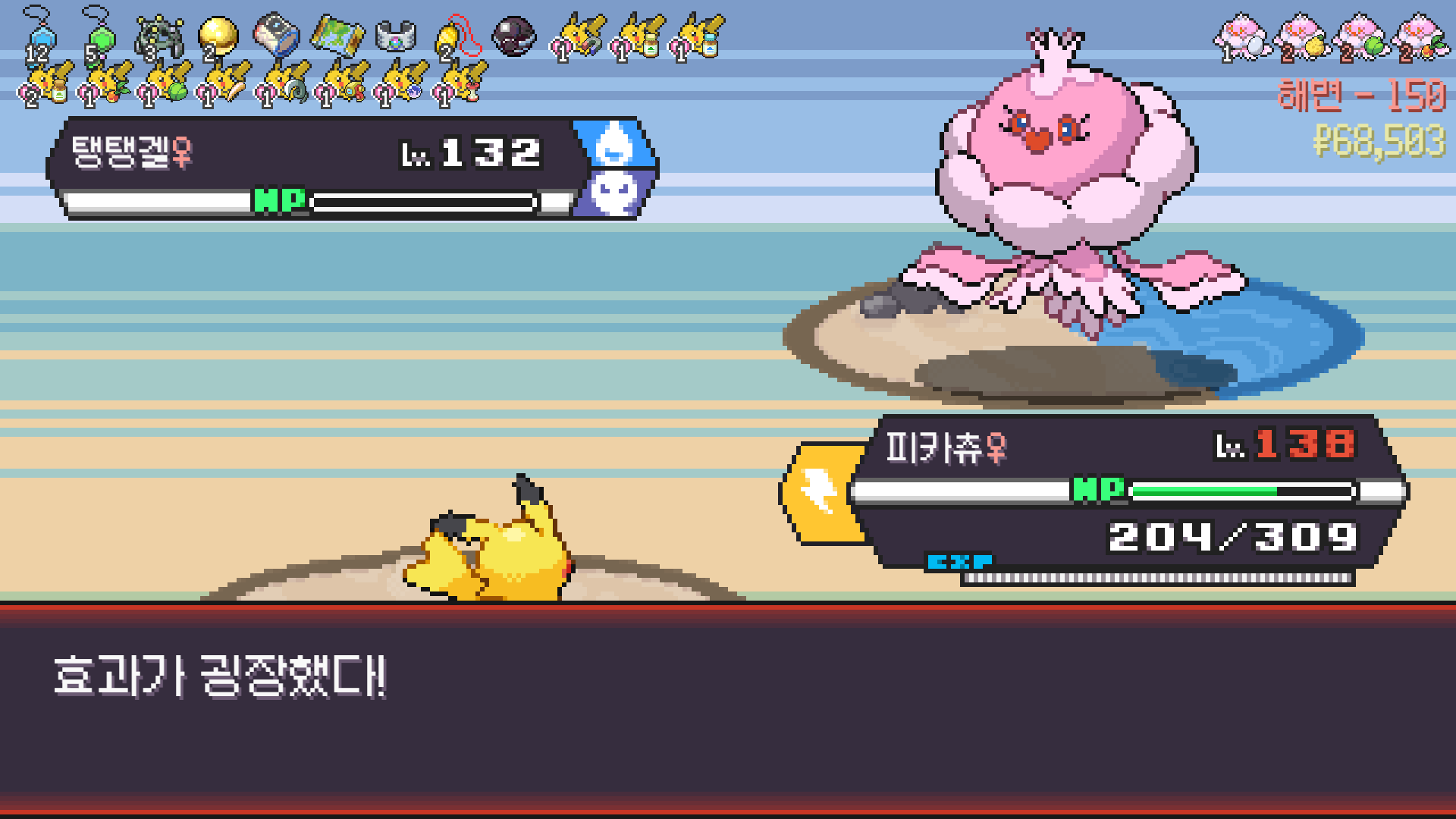 피카츄는 괴전파 장착, 나머지 쩌리들에 랭업기 몇 개 집어넣고