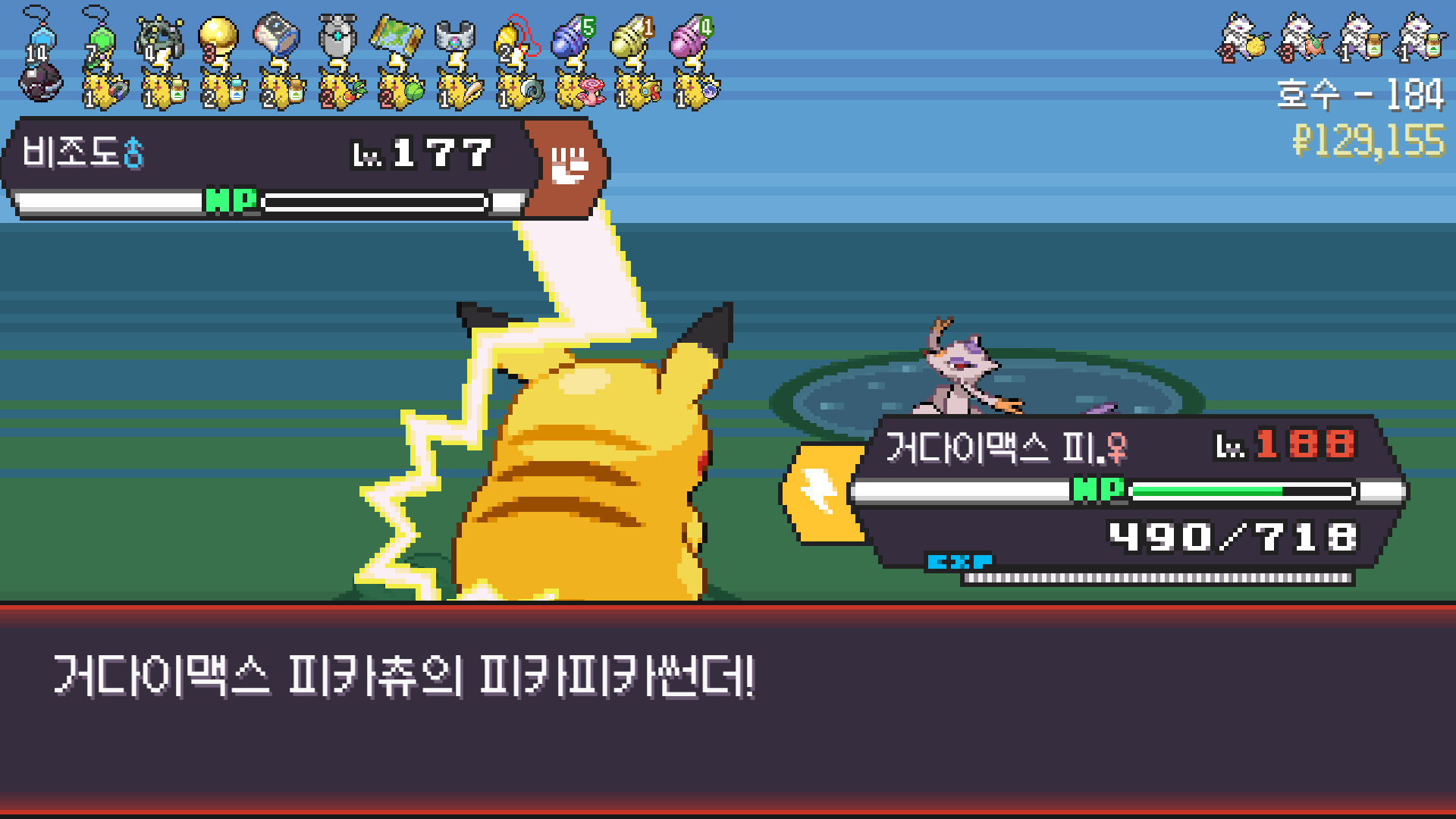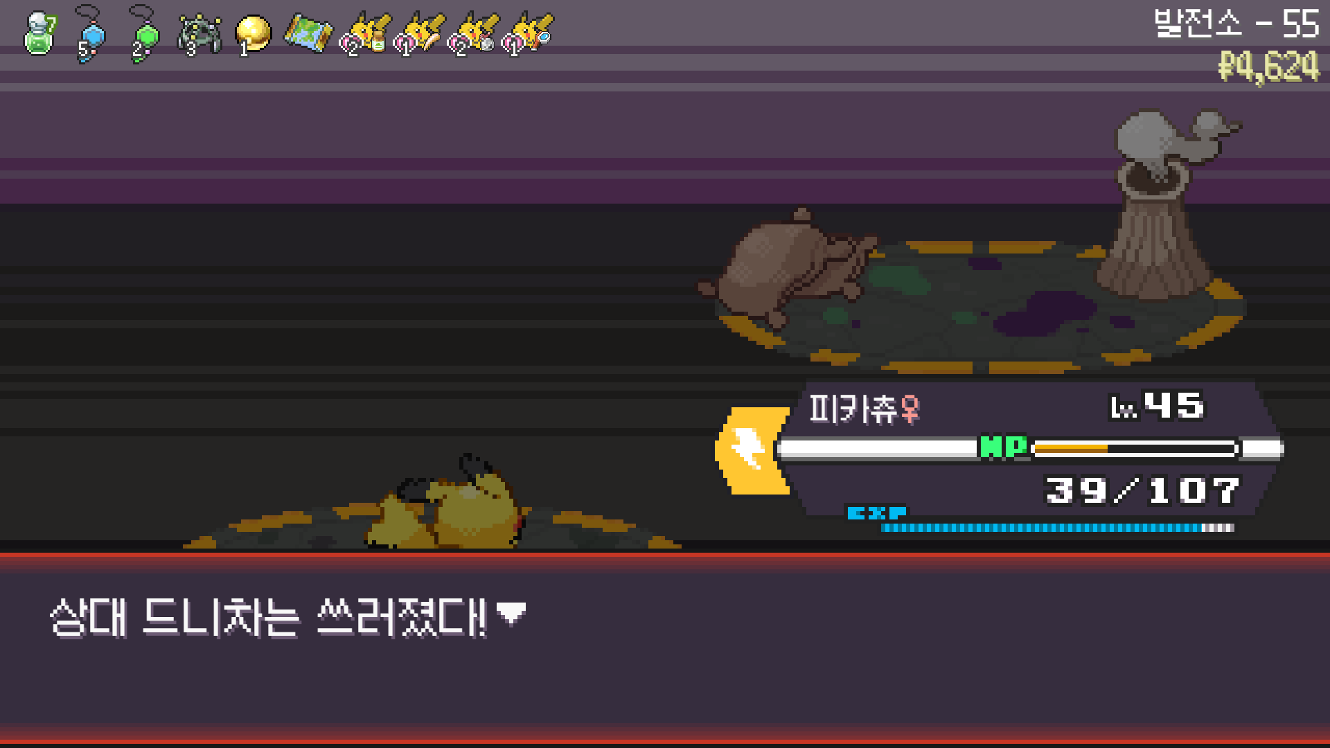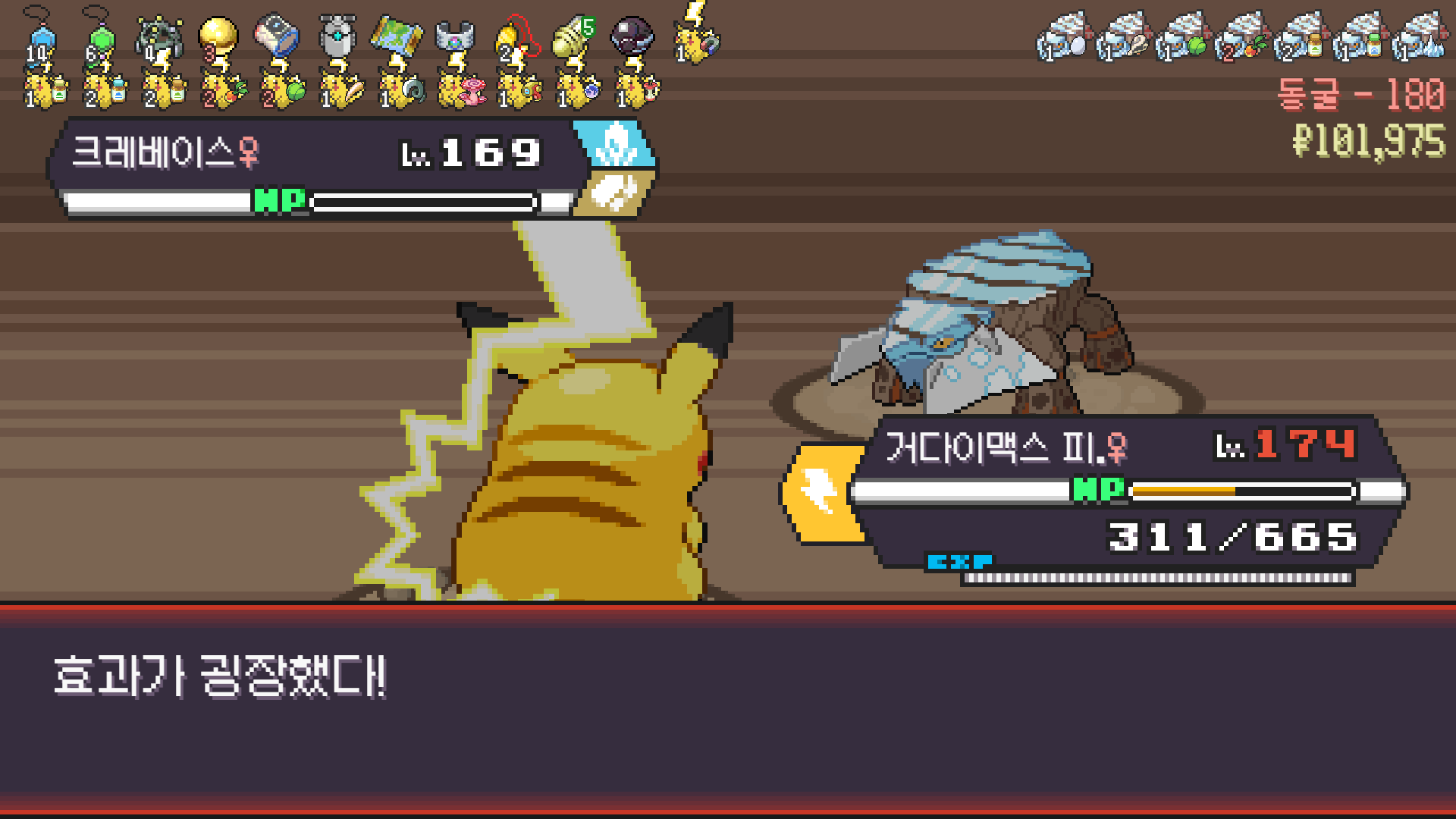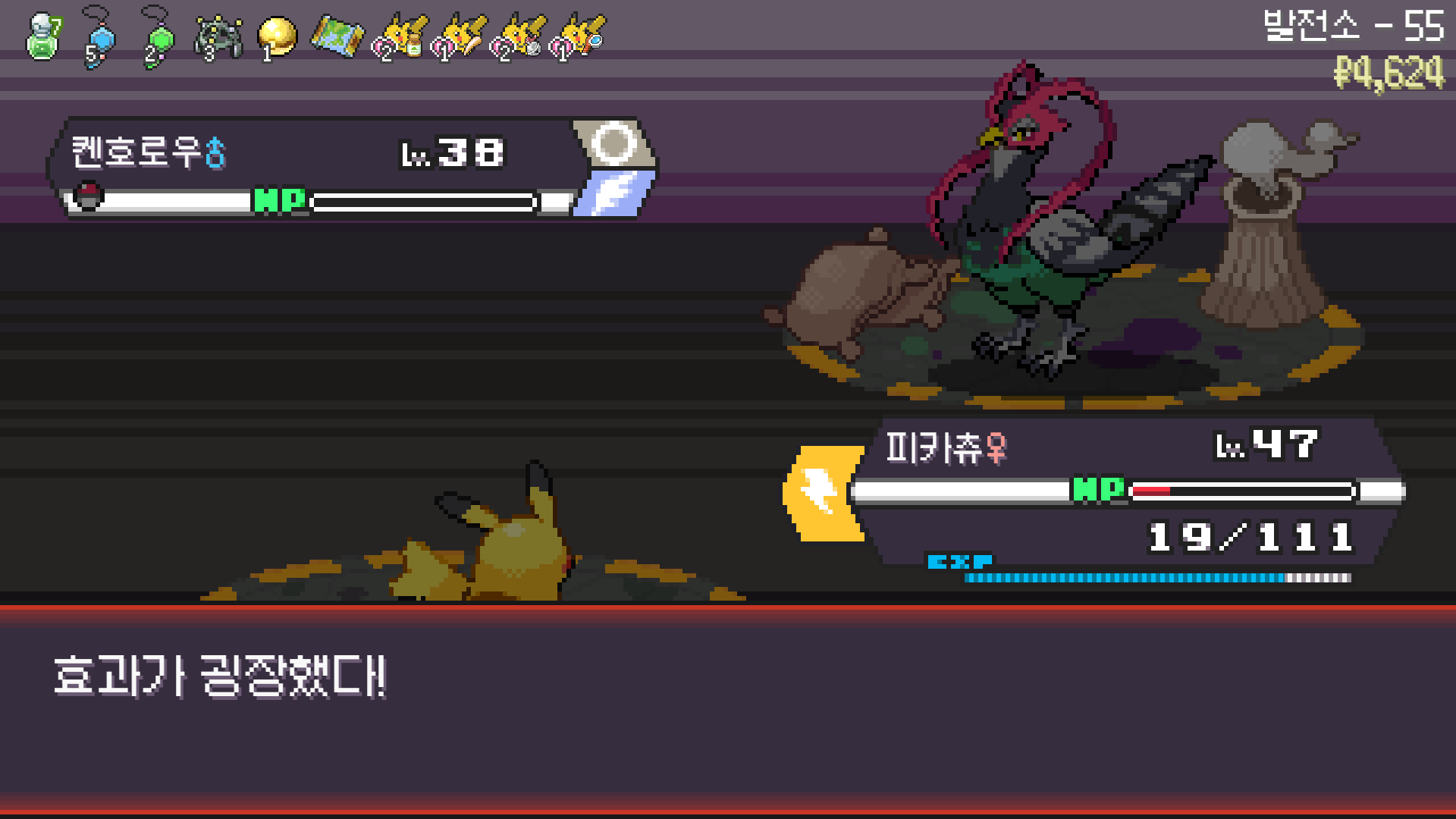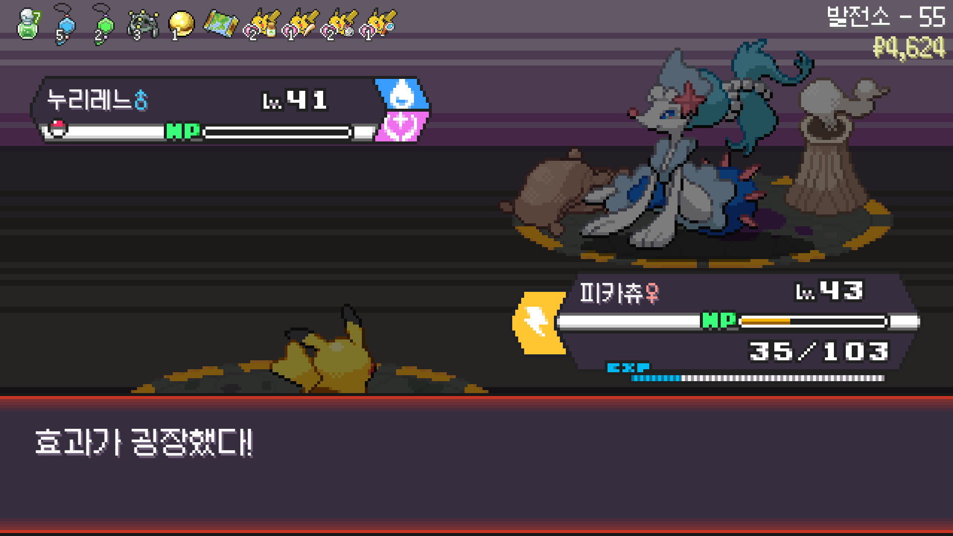 전기구슬도 진화의휘석도 없으니 피카츄 힘이 중반부터 확 빠졌다