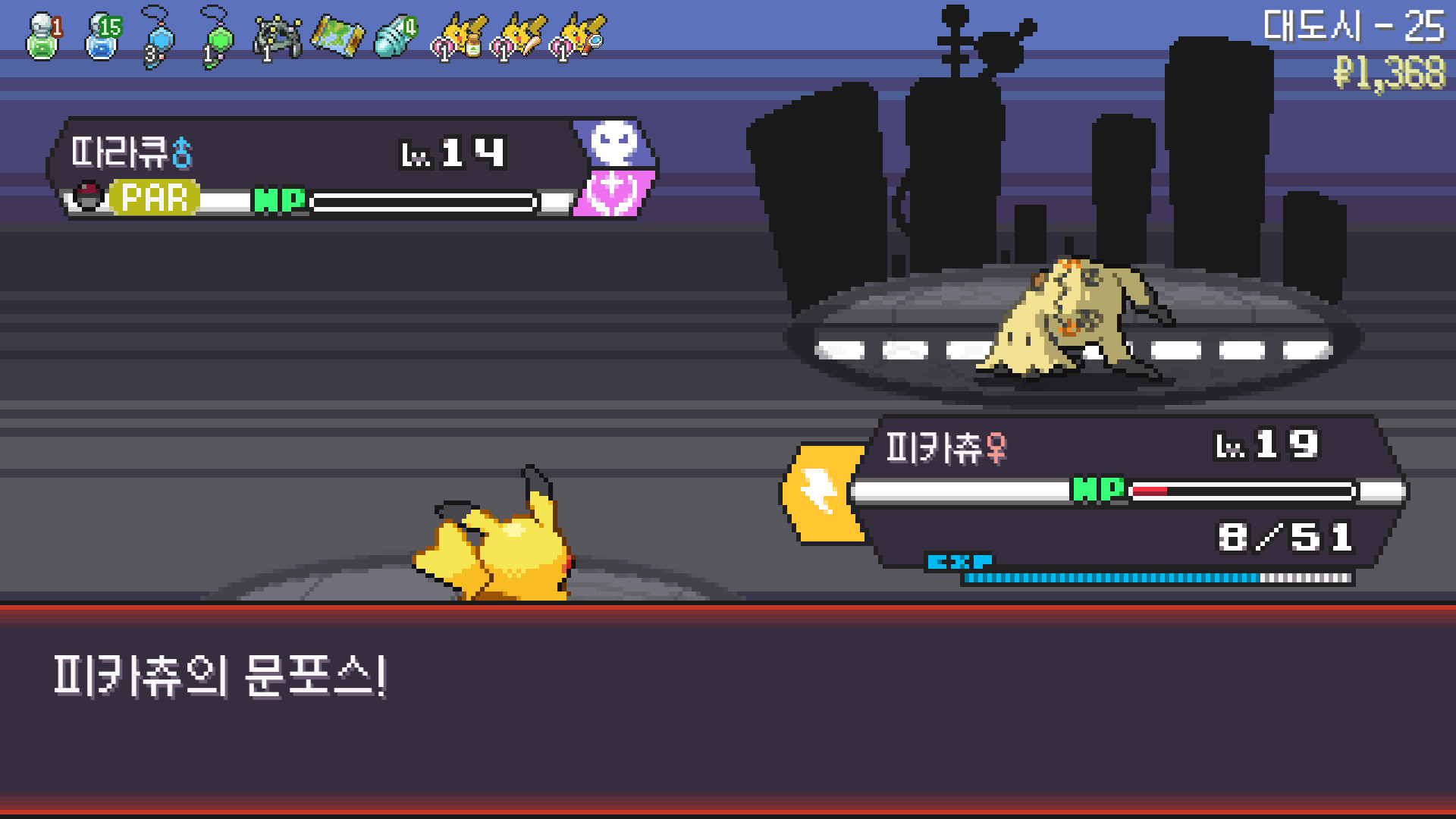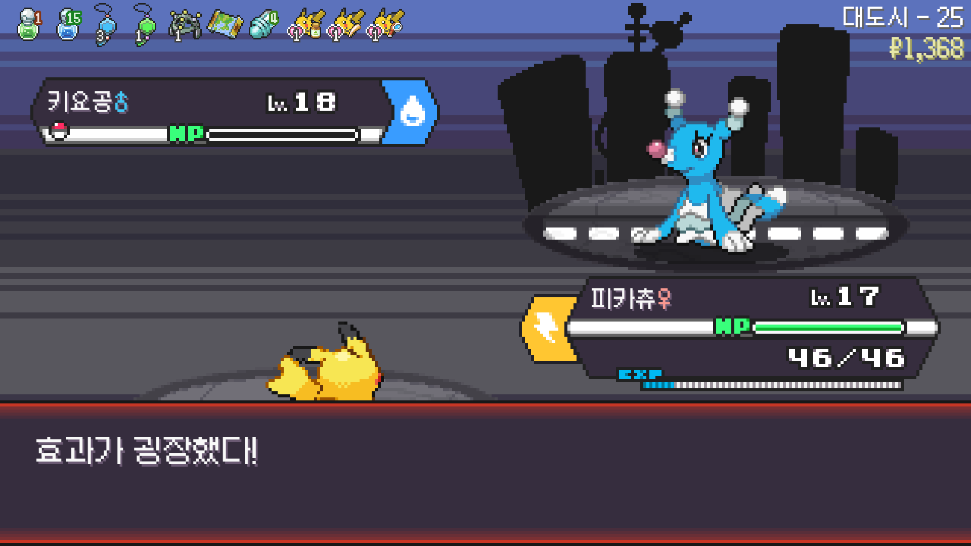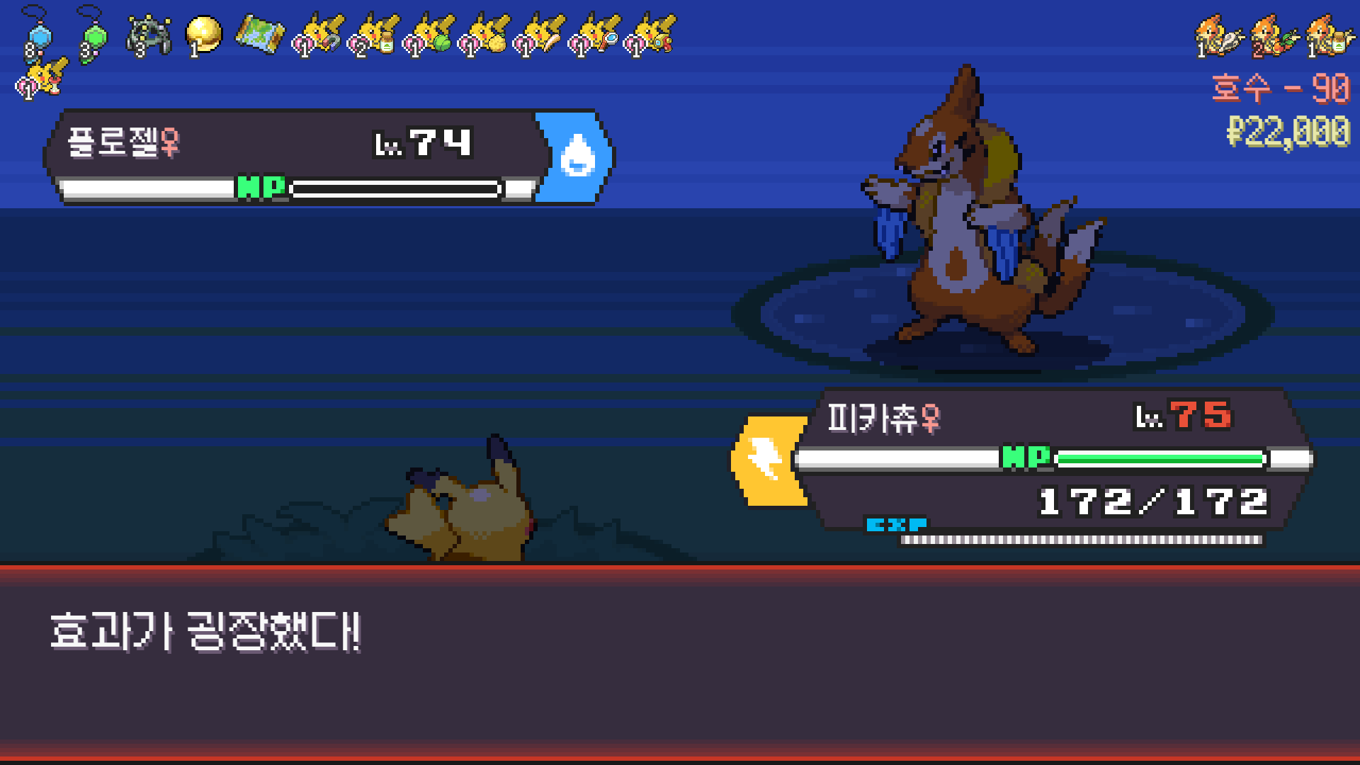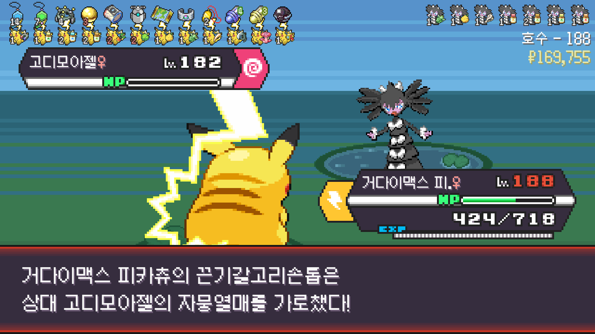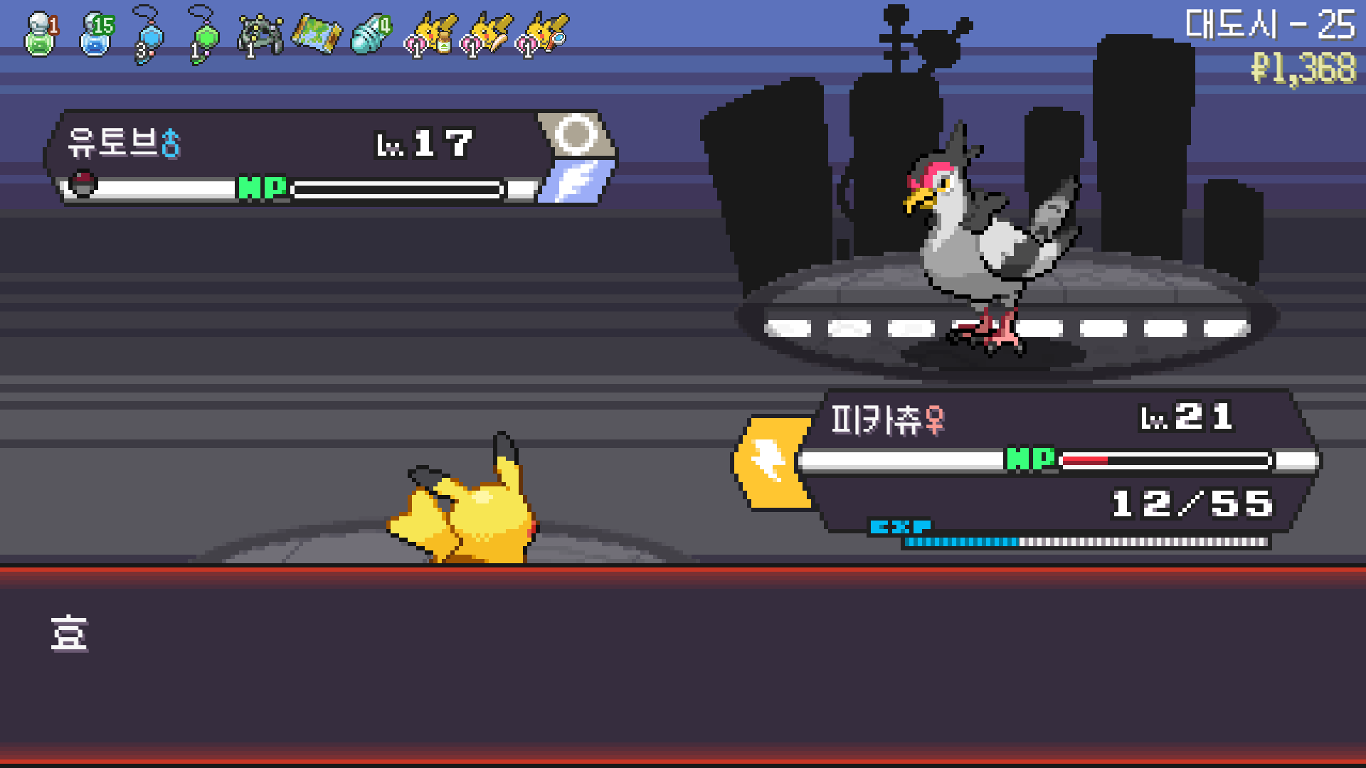 전기구슬도 진화의휘석도 없으니 피카츄 힘이 중반부터 확 빠졌다