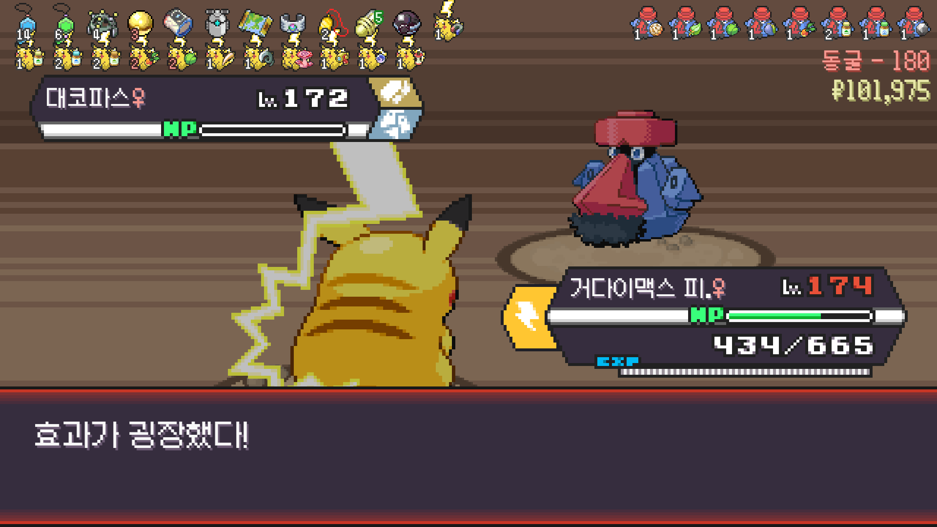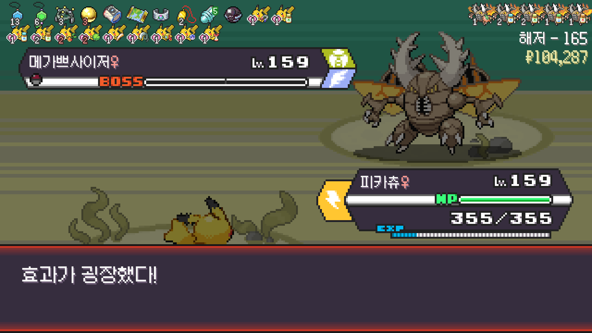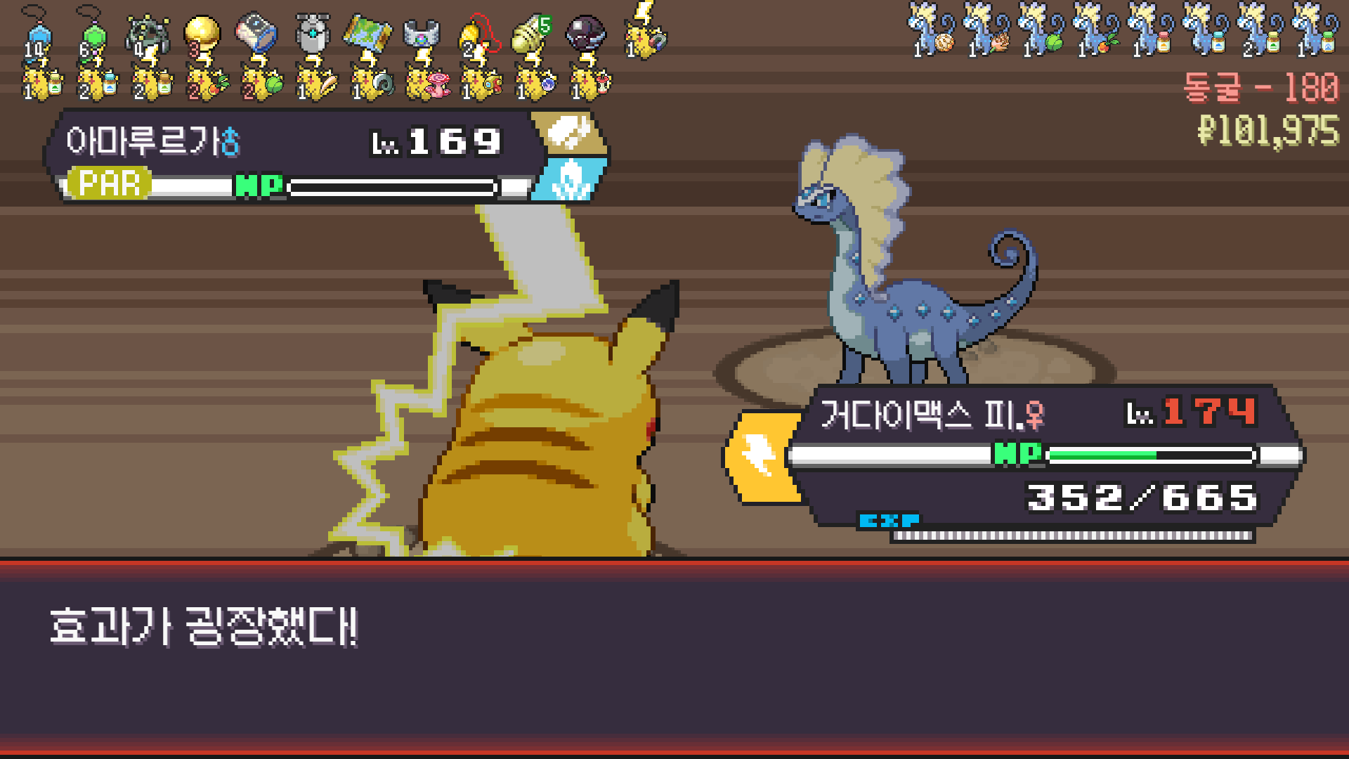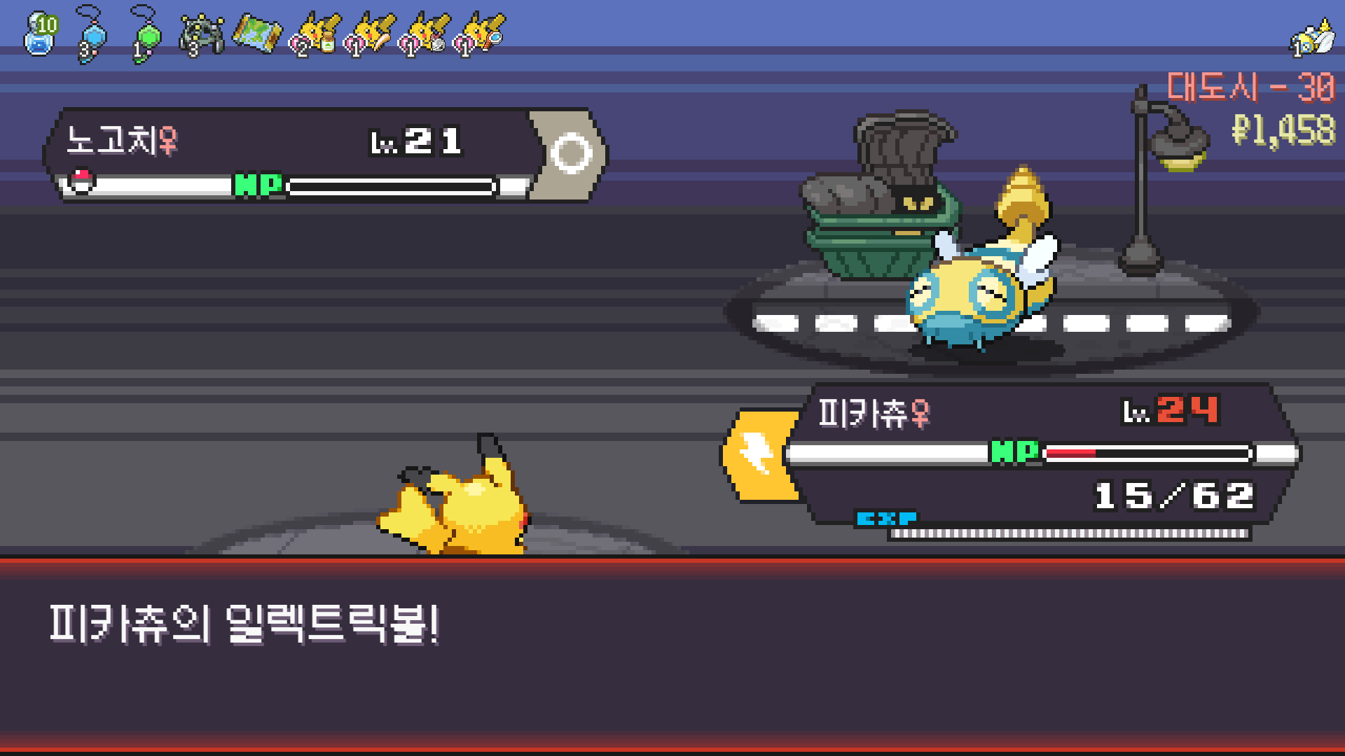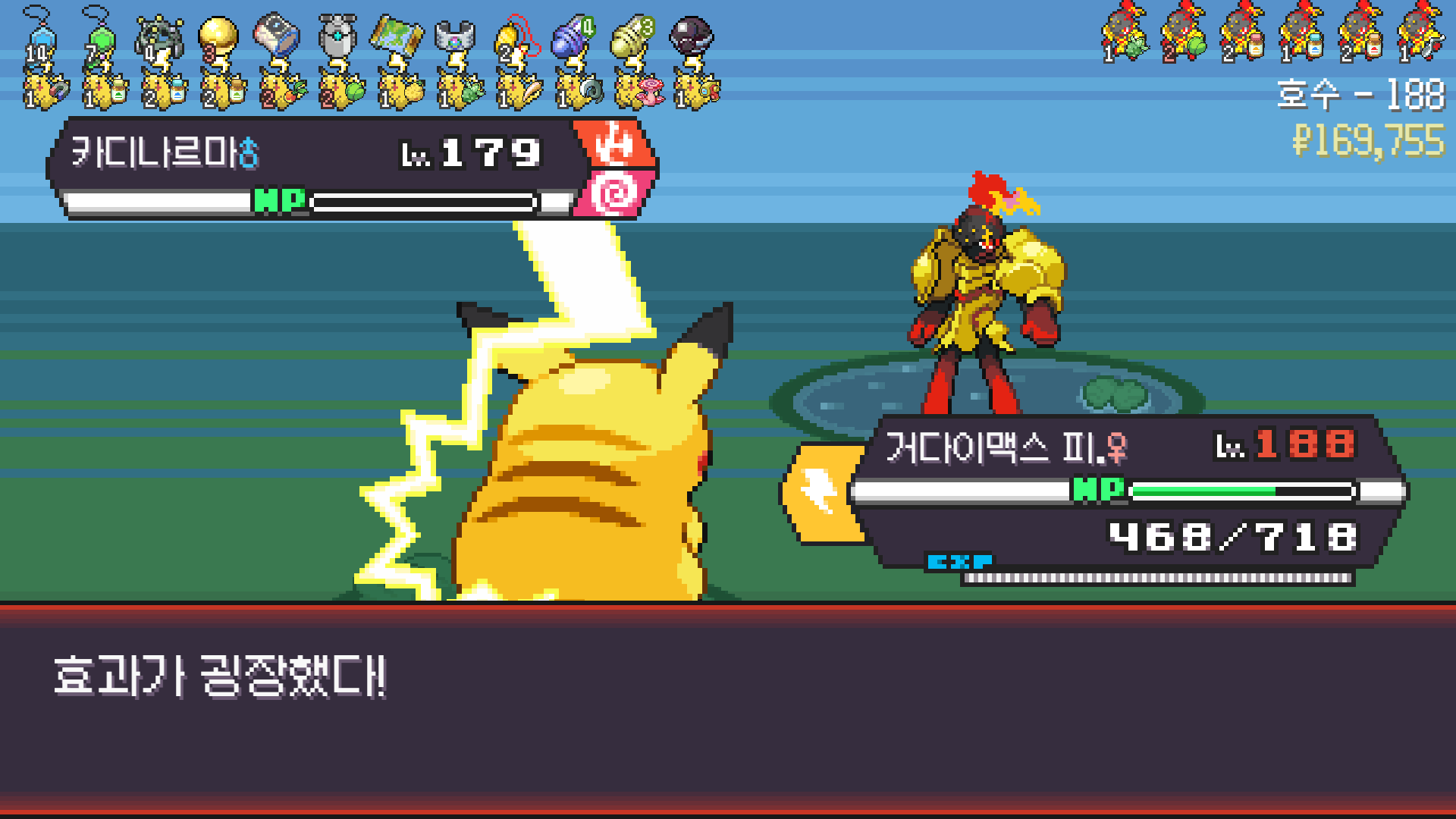 전기구슬도 진화의휘석도 없으니 피카츄 힘이 중반부터 확 빠졌다