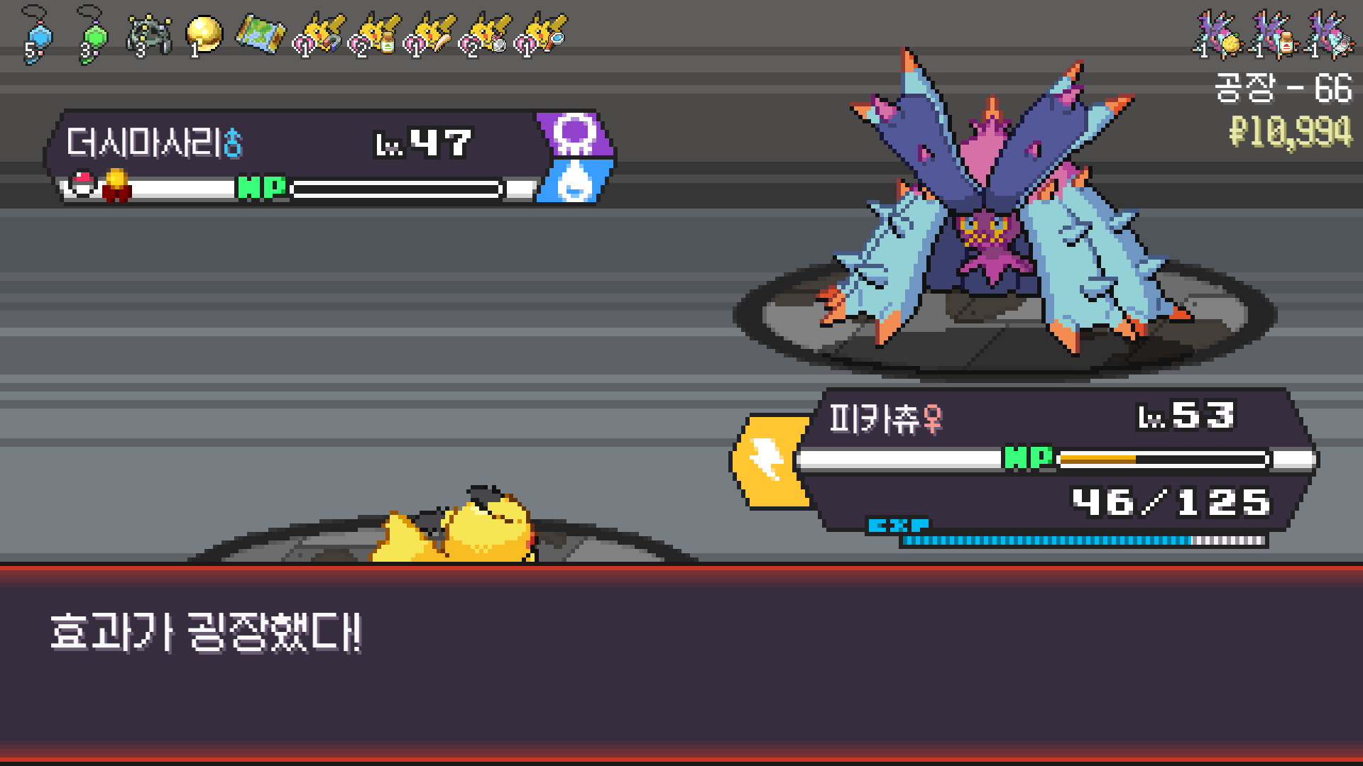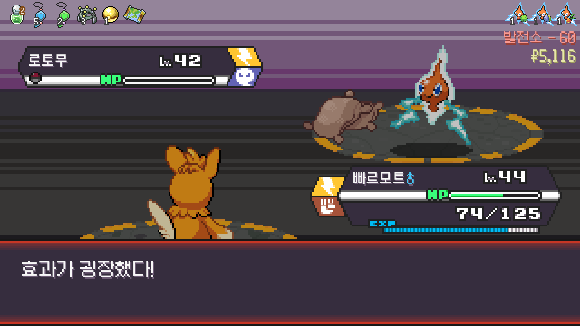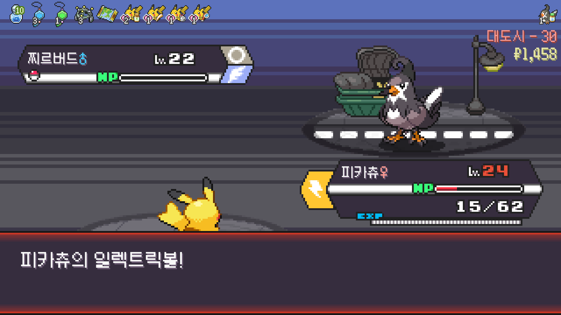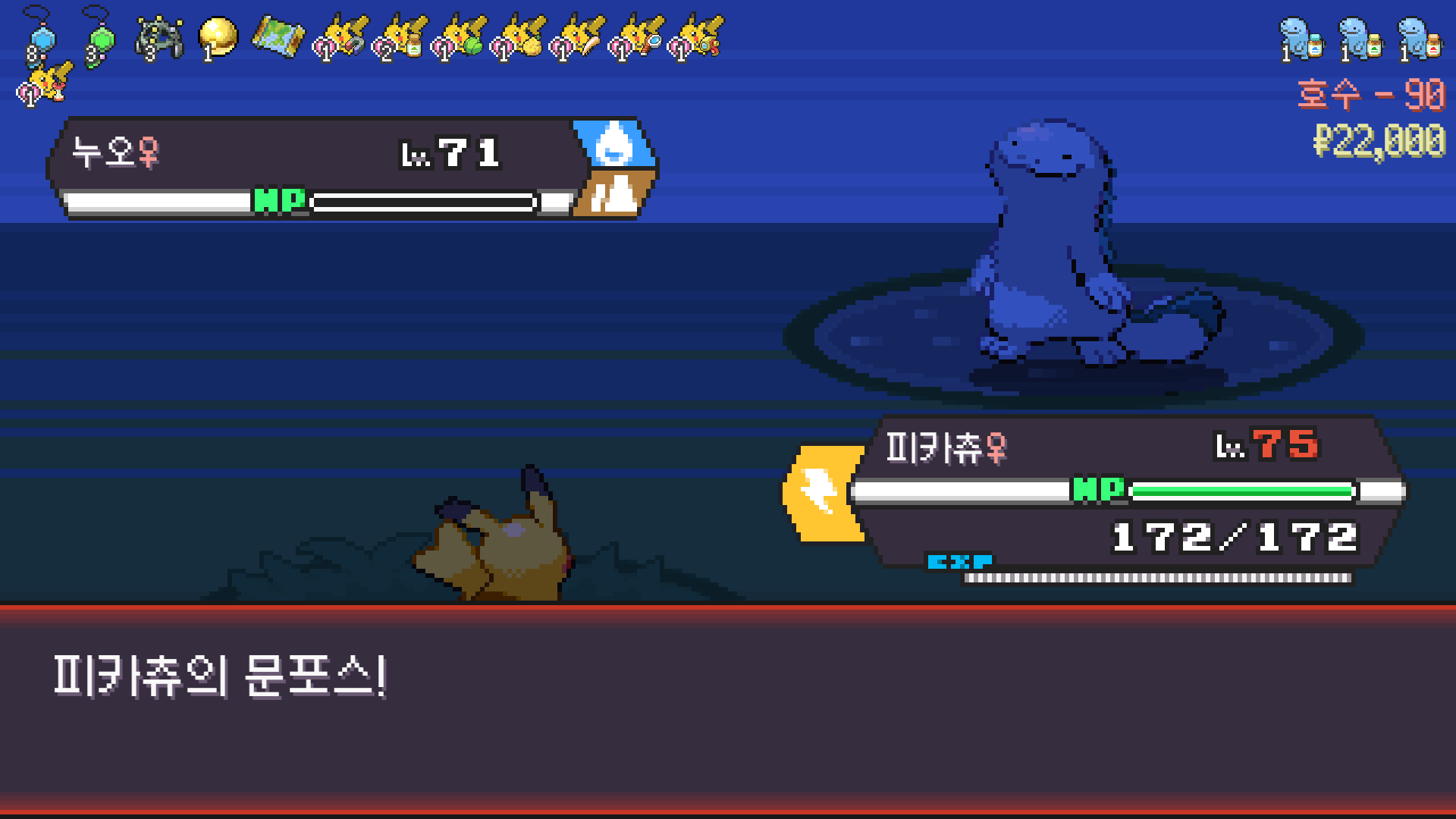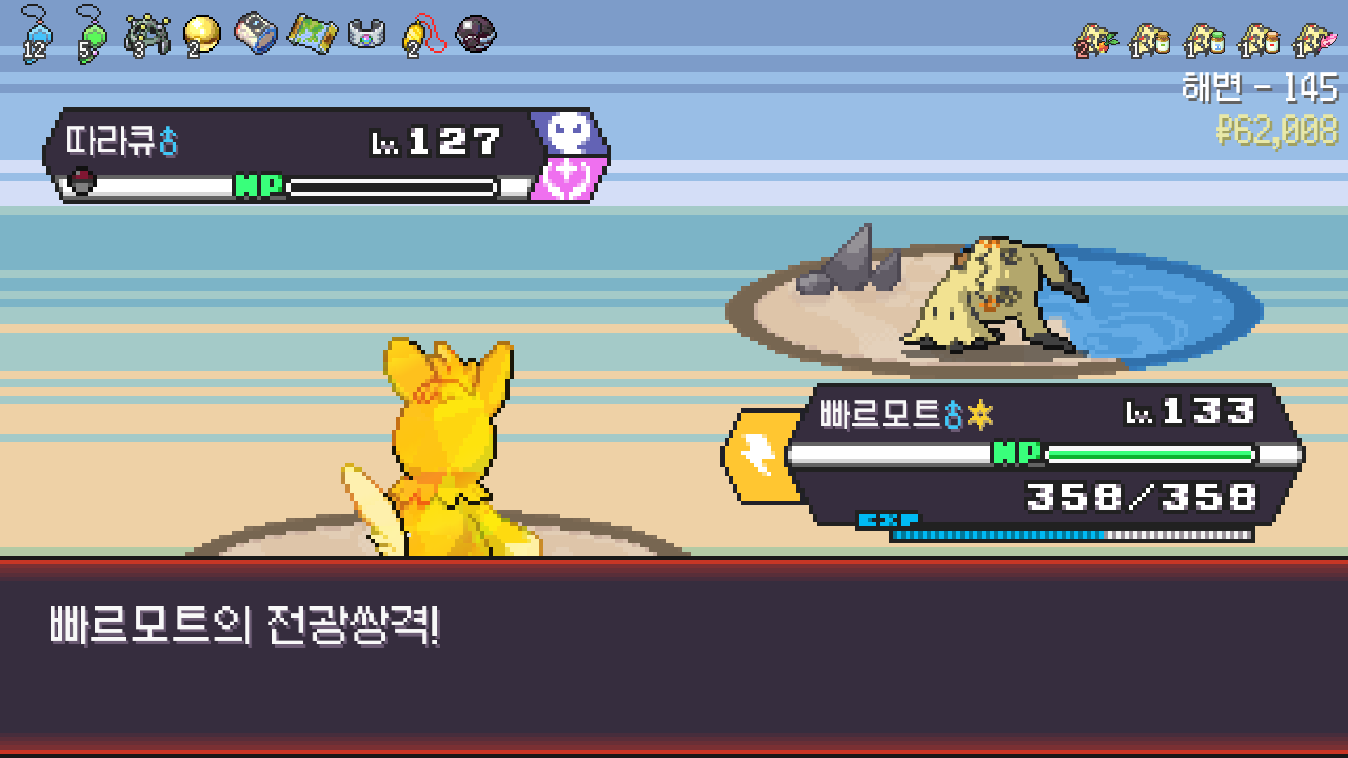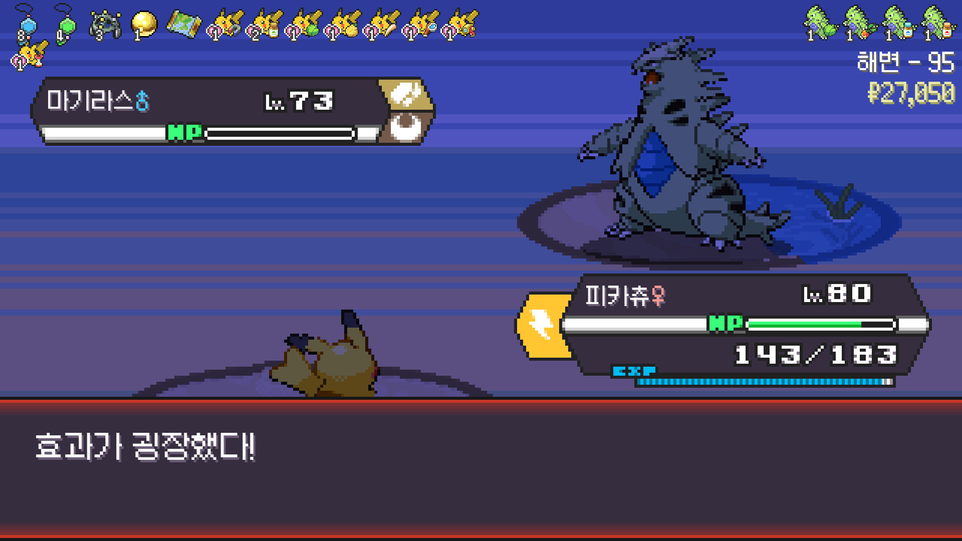 전기구슬도 진화의휘석도 없으니 피카츄 힘이 중반부터 확 빠졌다