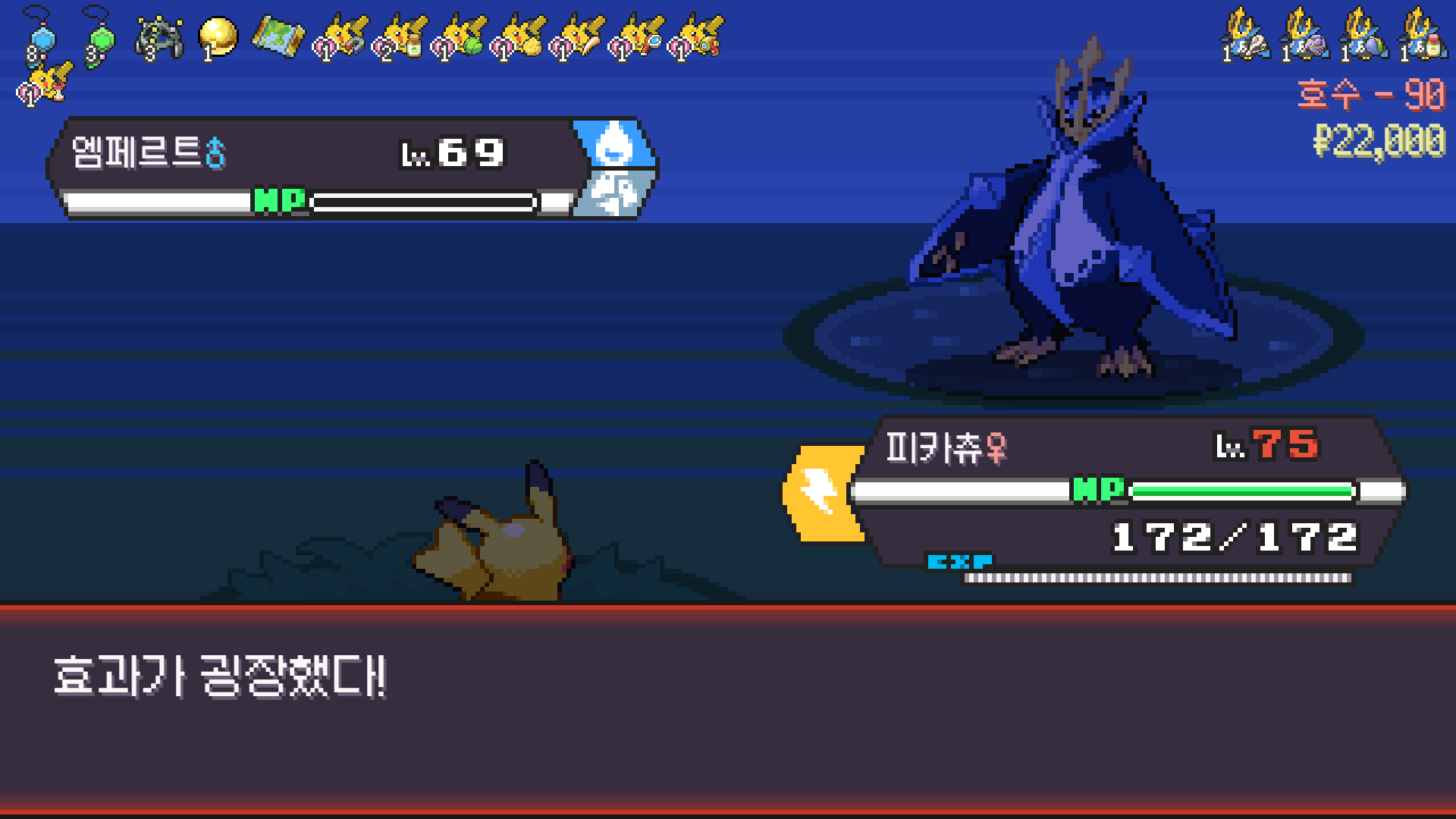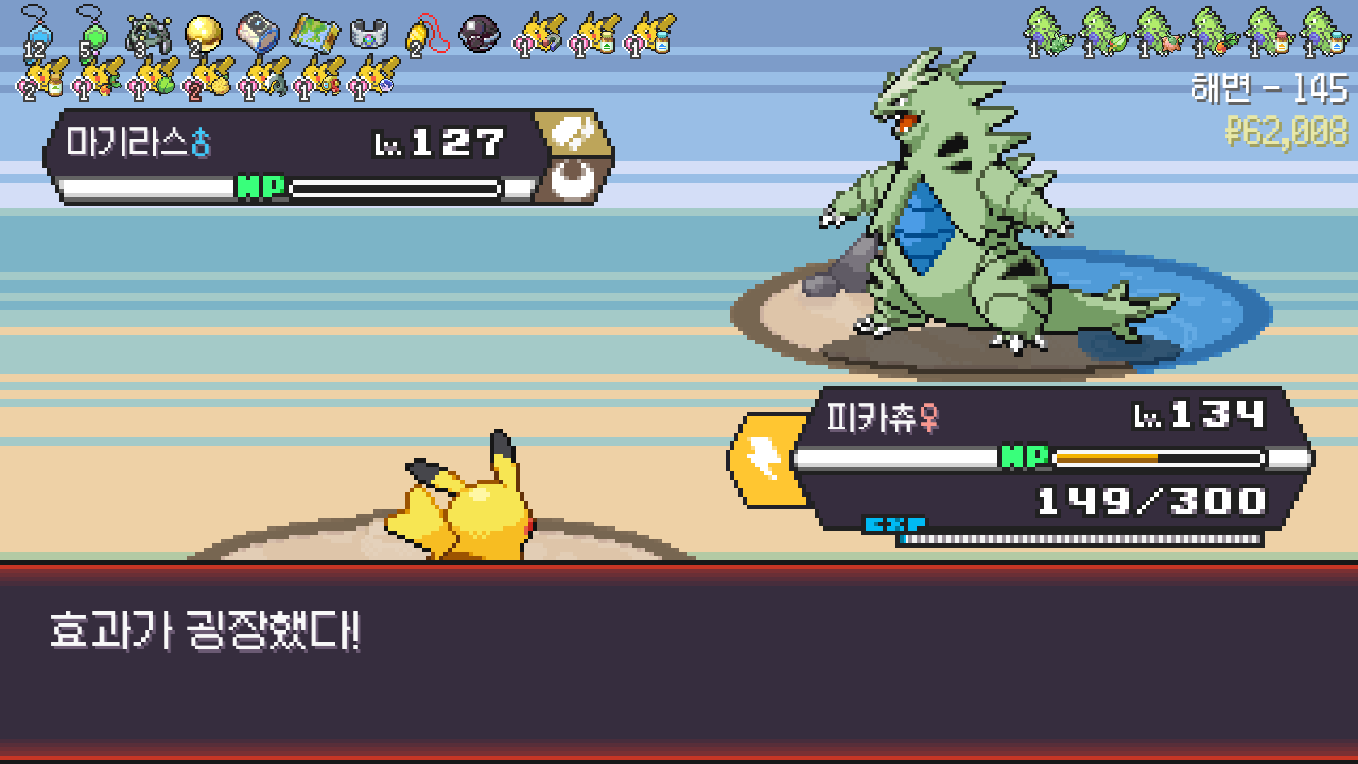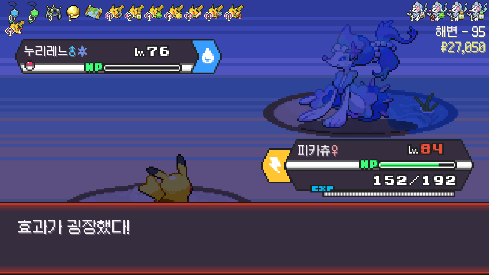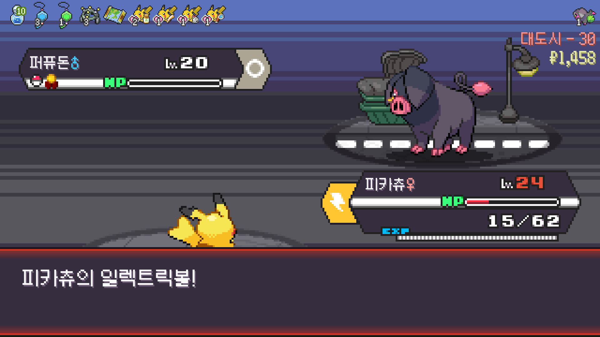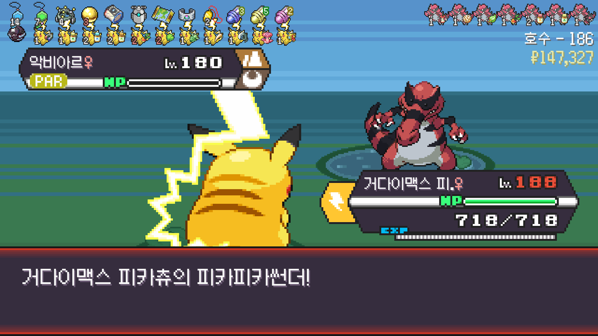 전기구슬도 진화의휘석도 없으니 피카츄 힘이 중반부터 확 빠졌다