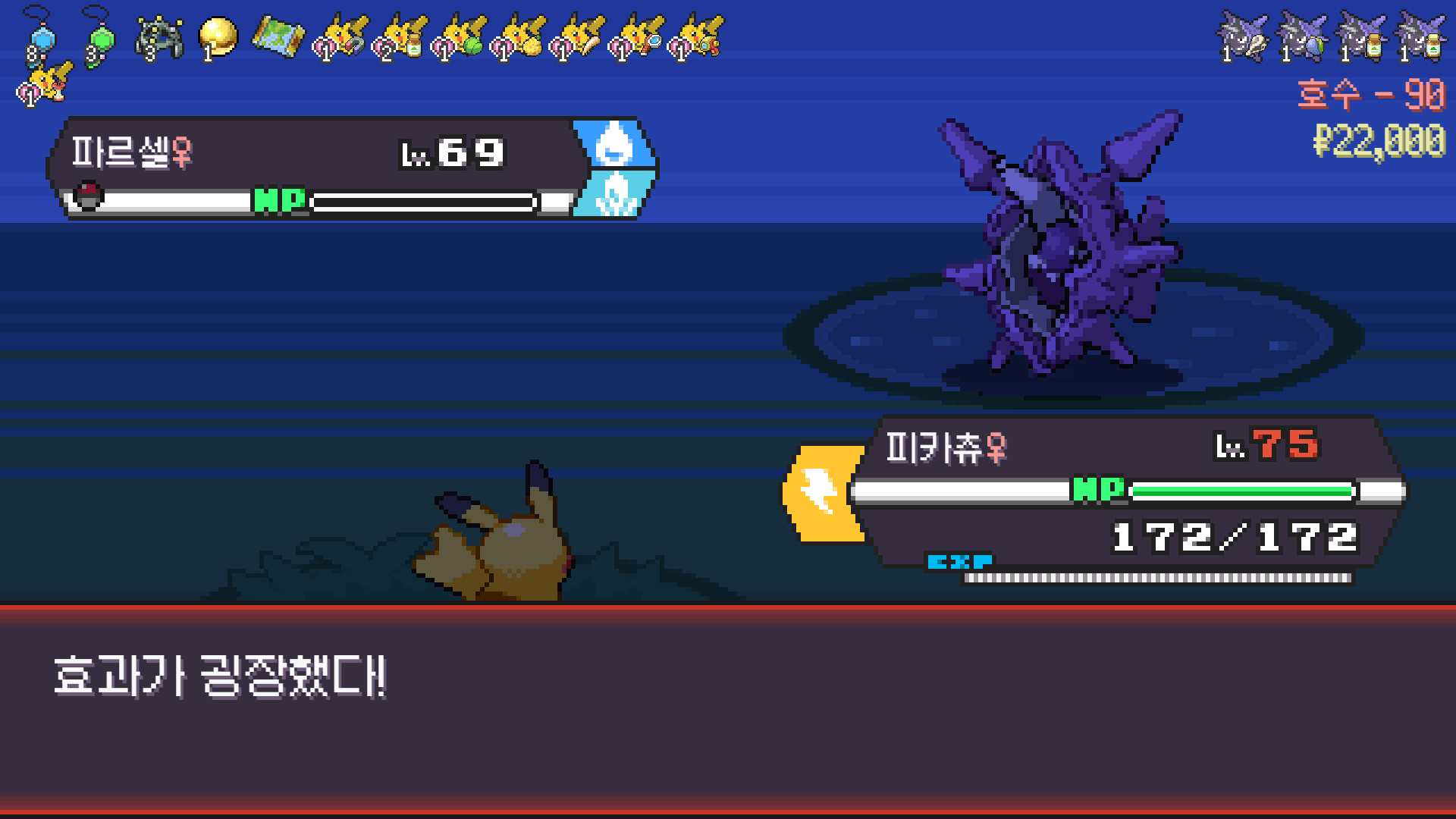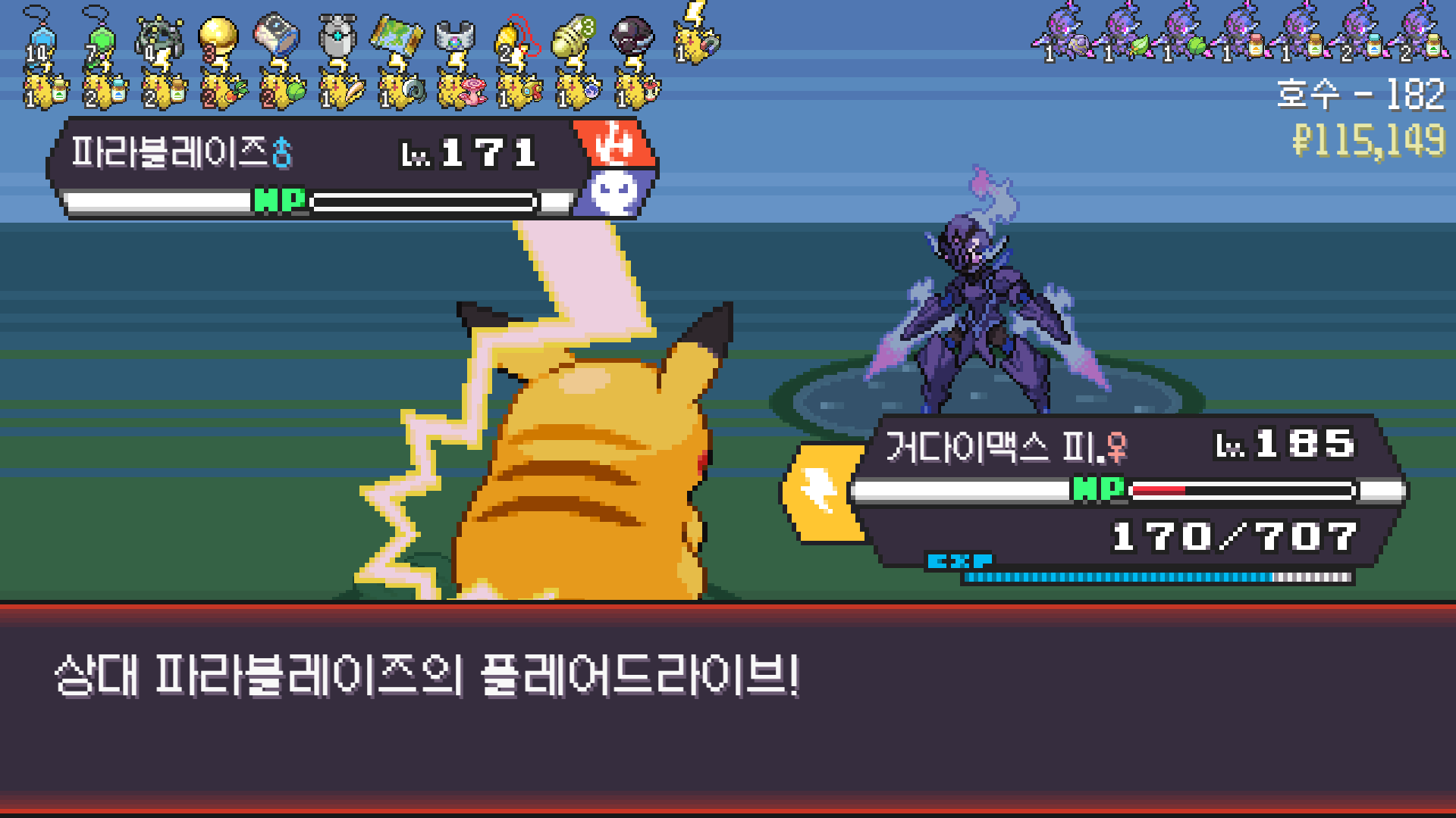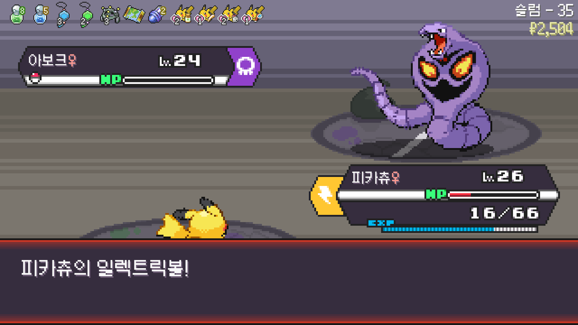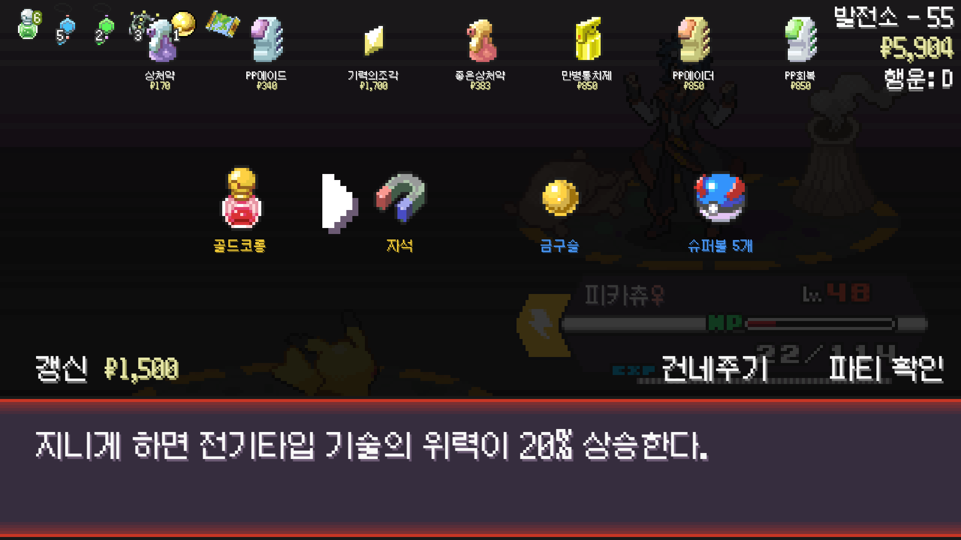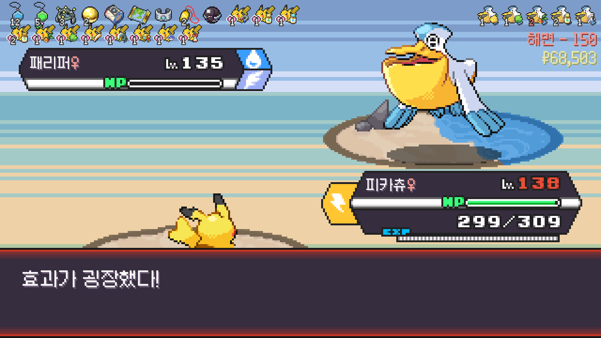 전기구슬도 진화의휘석도 없으니 피카츄 힘이 중반부터 확 빠졌다