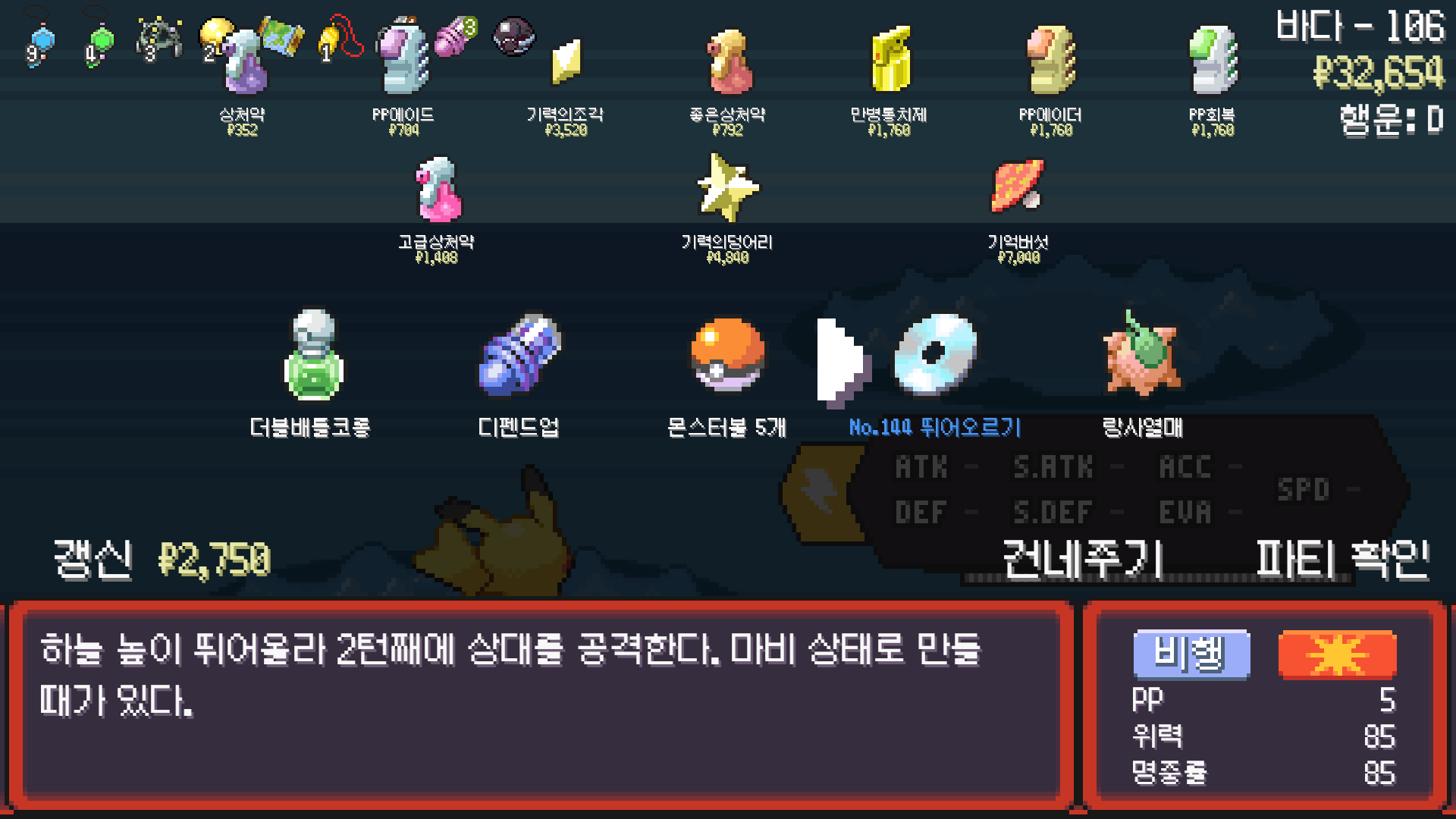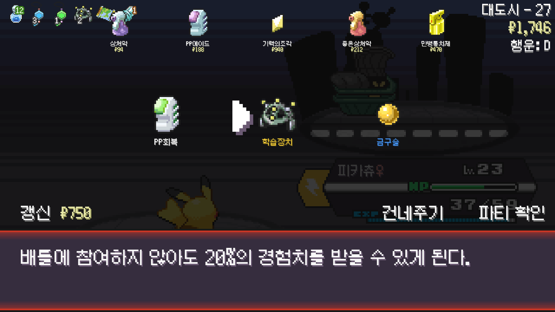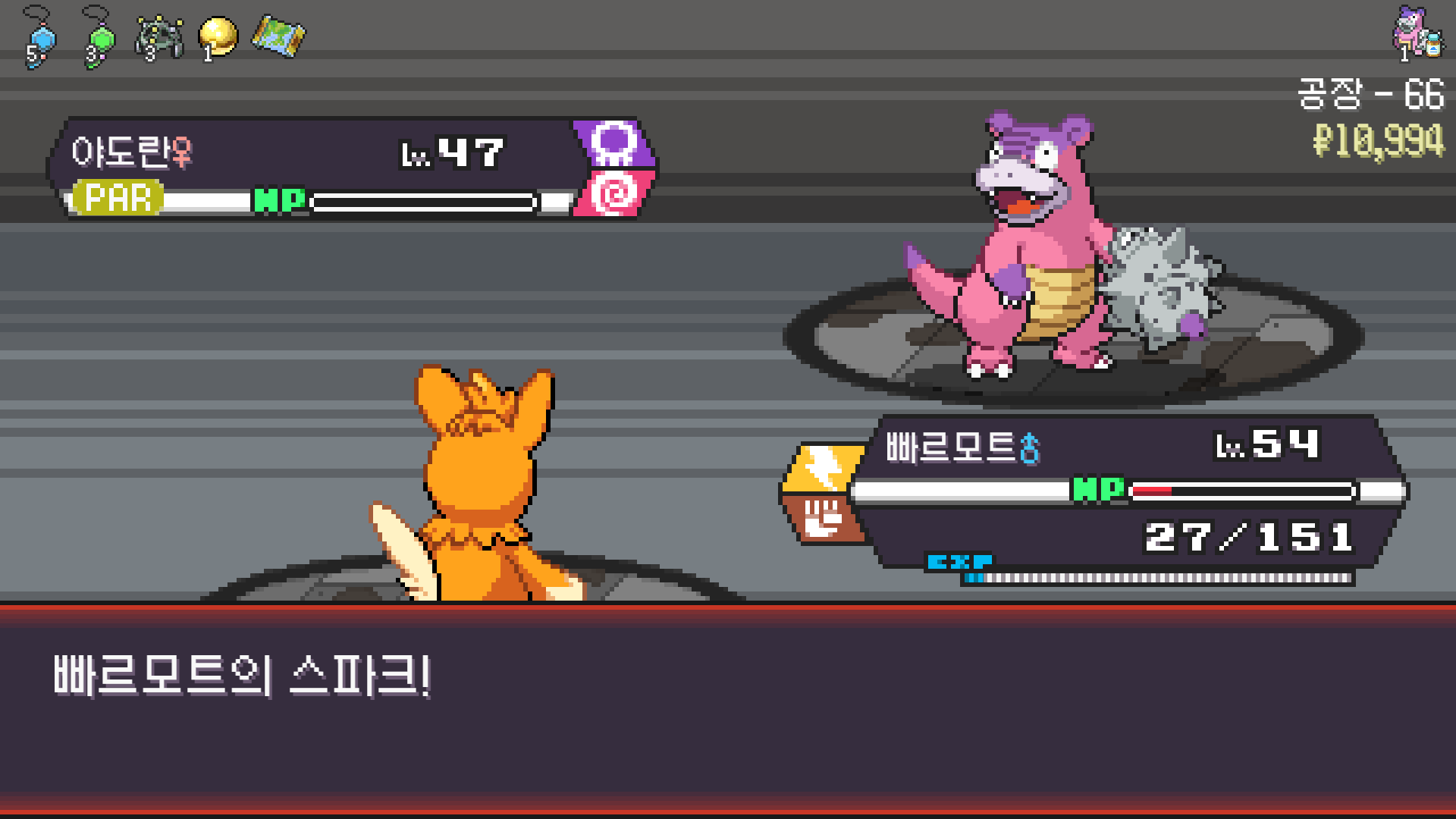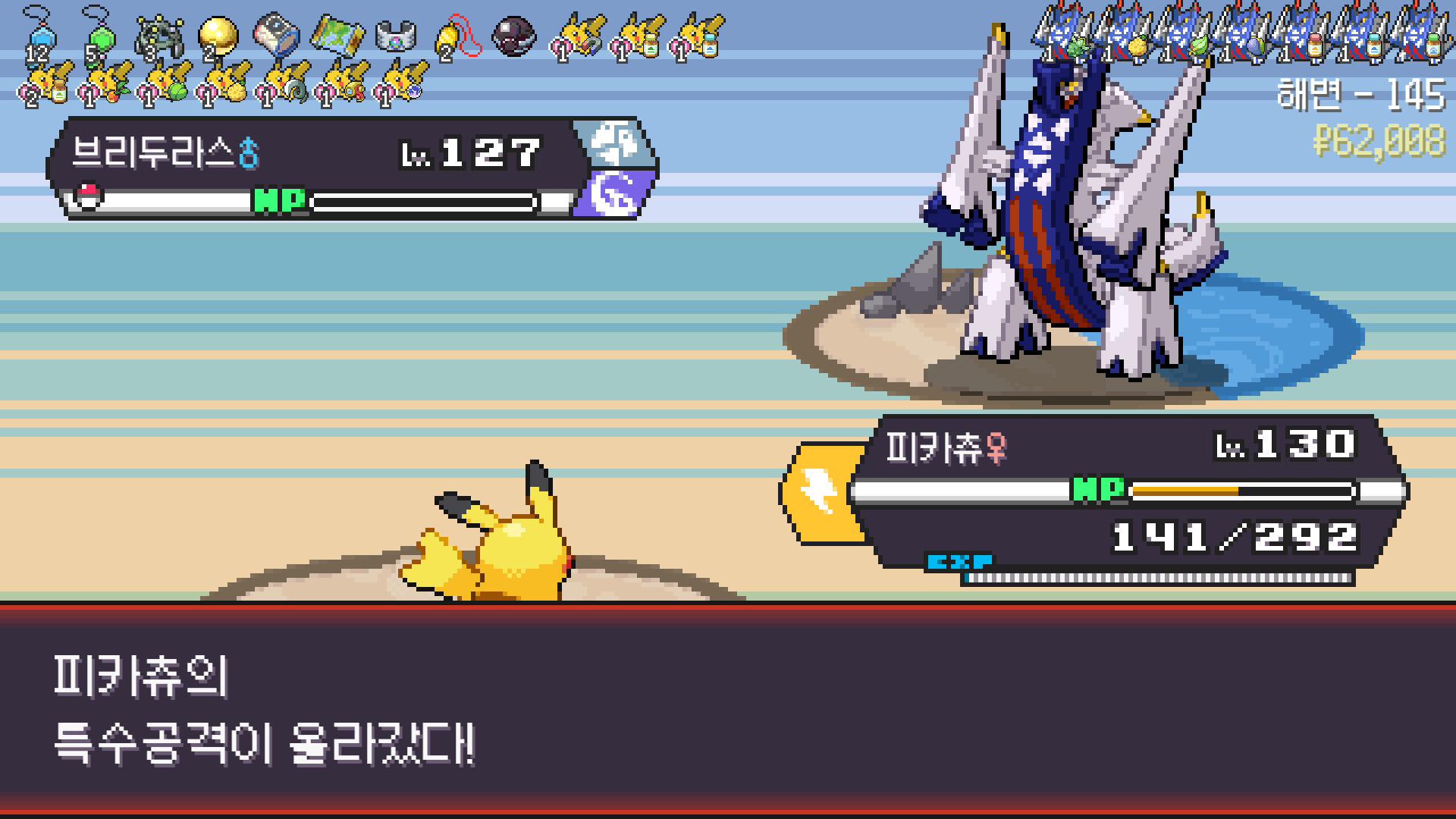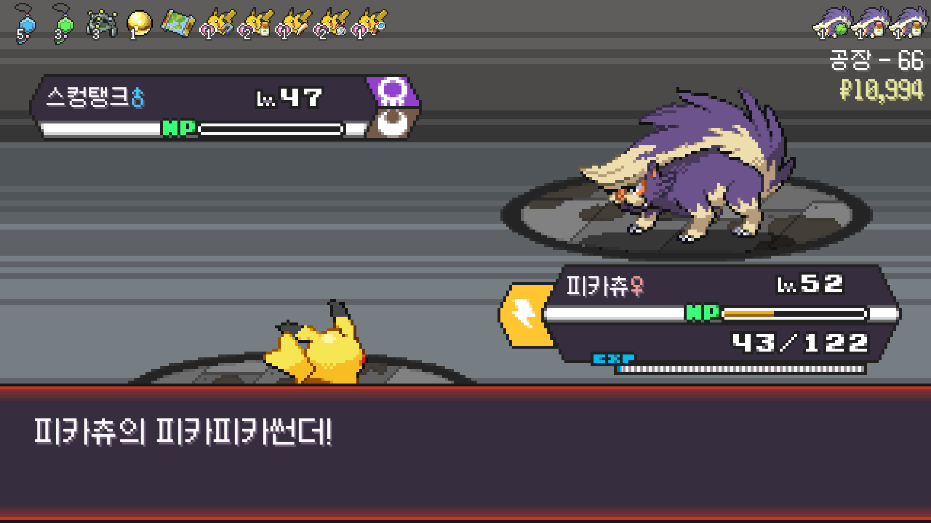 전기구슬도 진화의휘석도 없으니 피카츄 힘이 중반부터 확 빠졌다