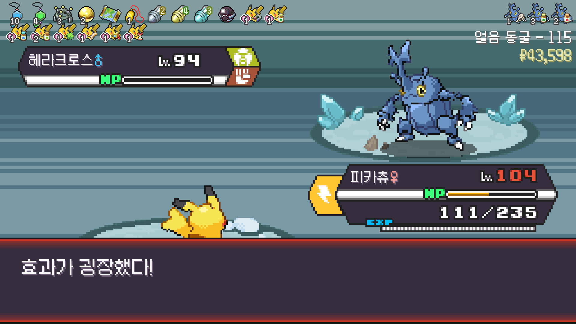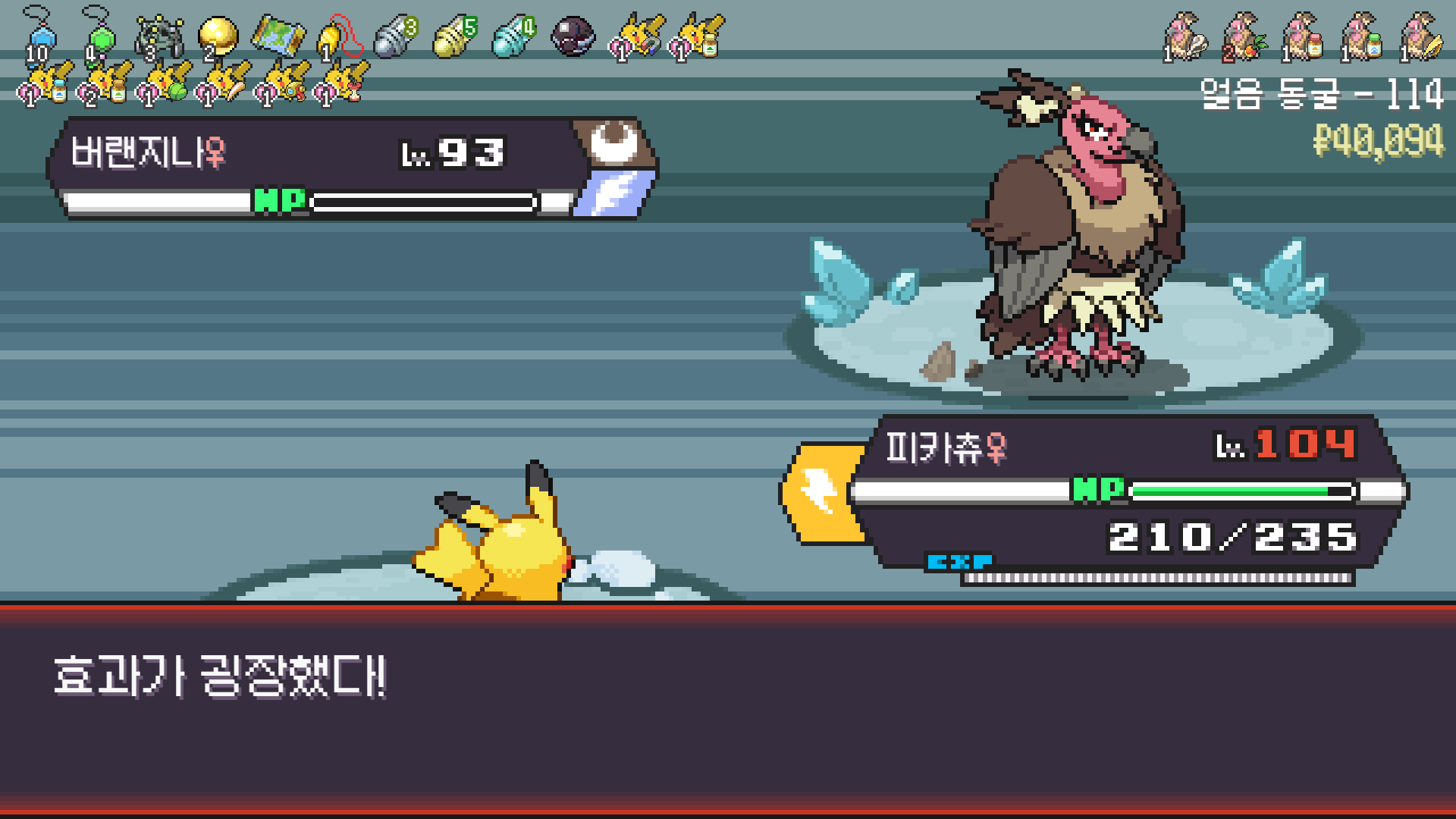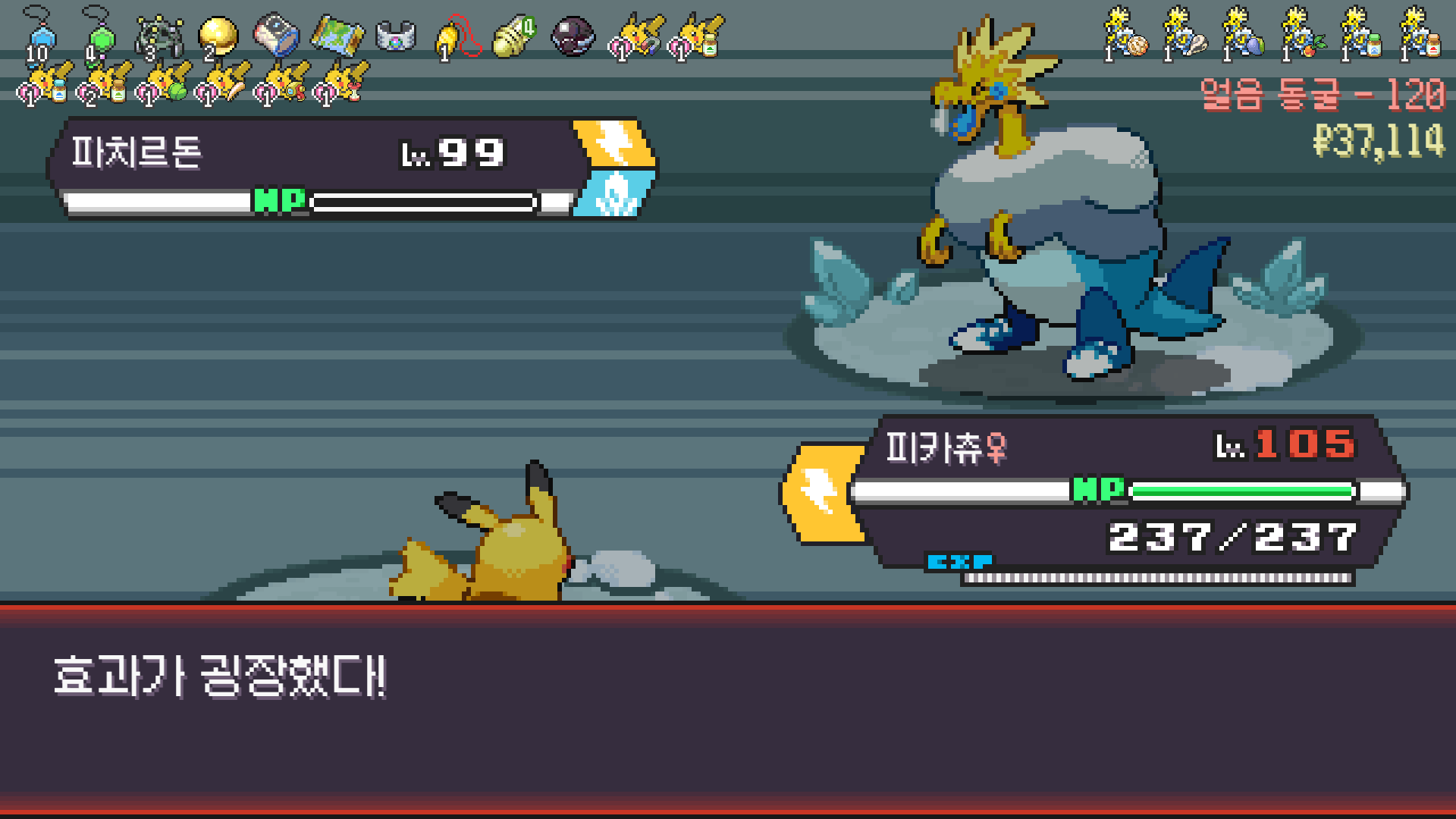 얼음 관장 류옹은 피카츄로 약점 찔러서 넘기고