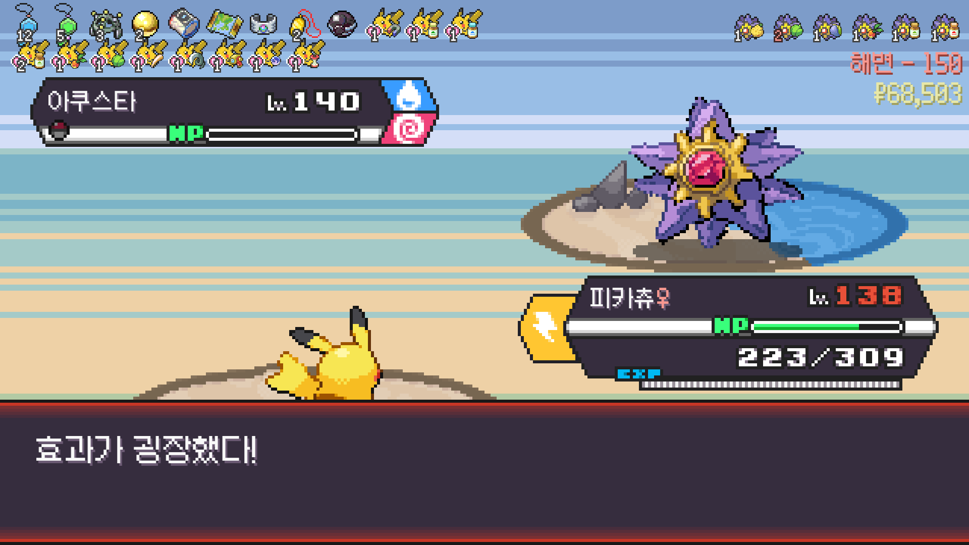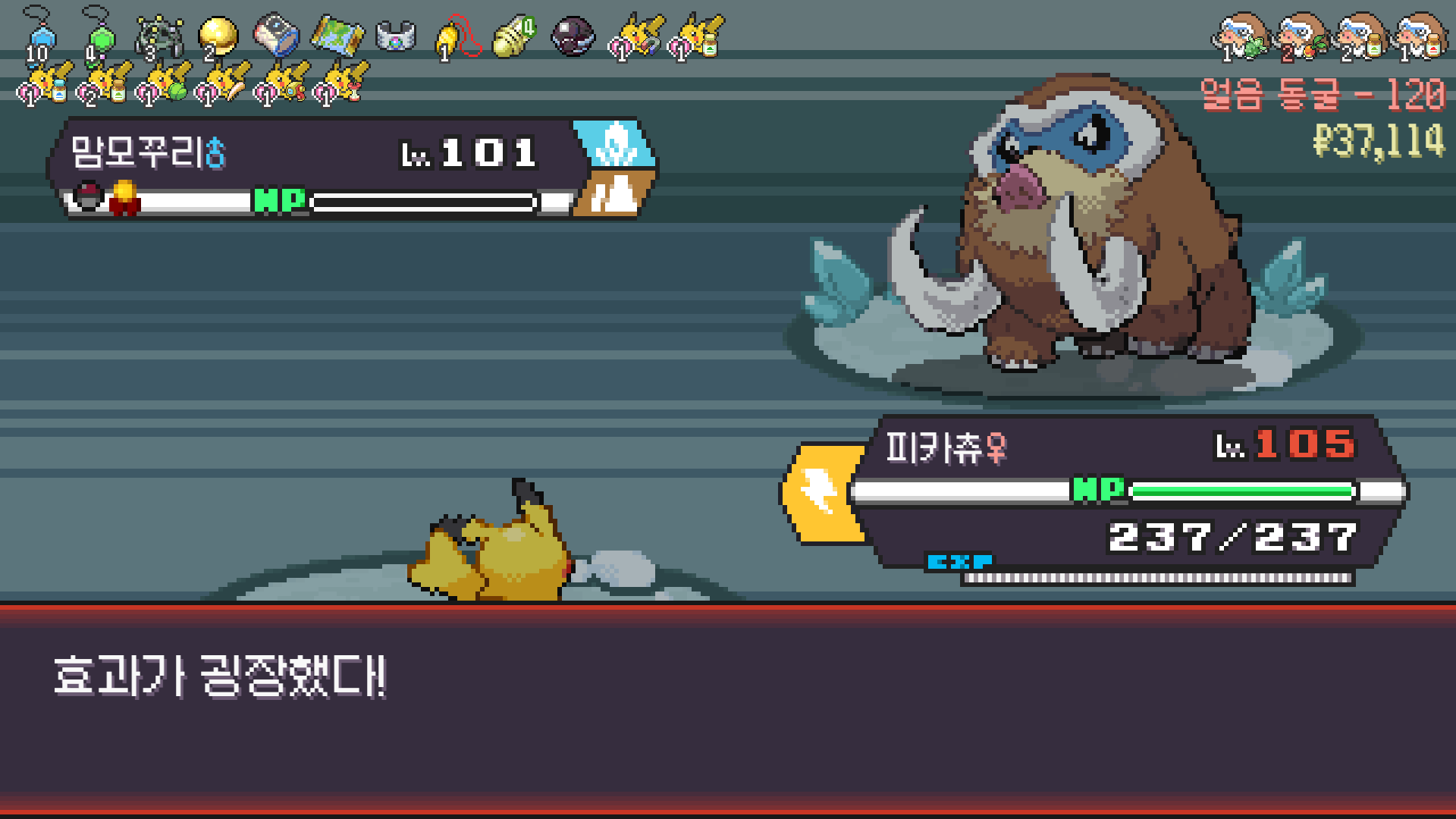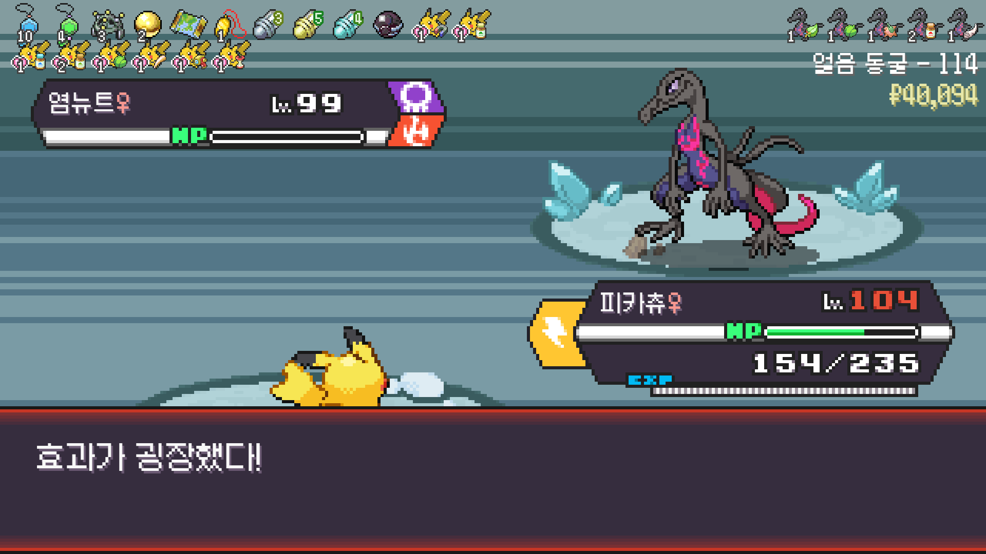 얼음 관장 류옹은 피카츄로 약점 찔러서 넘기고