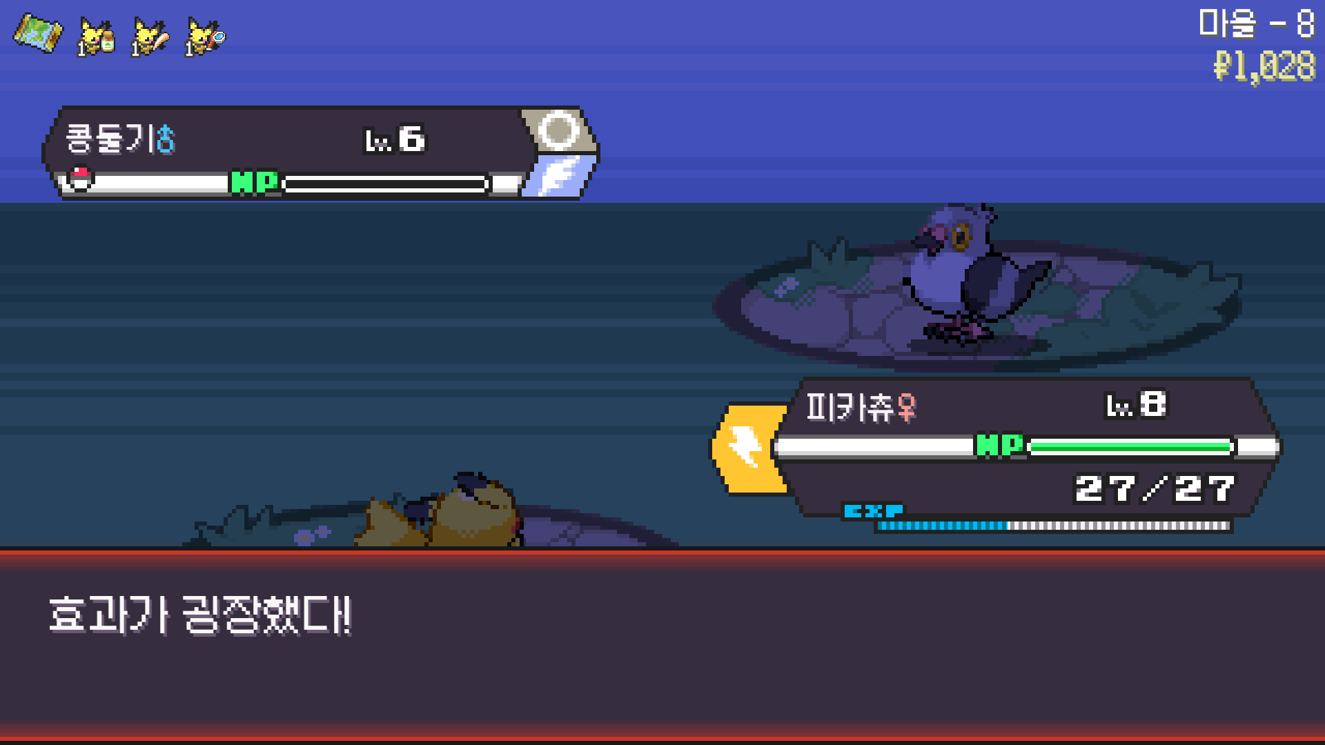 라이벌 포켓몬 누리공과 콩둘기 잡아먹고 피카츄로 진화