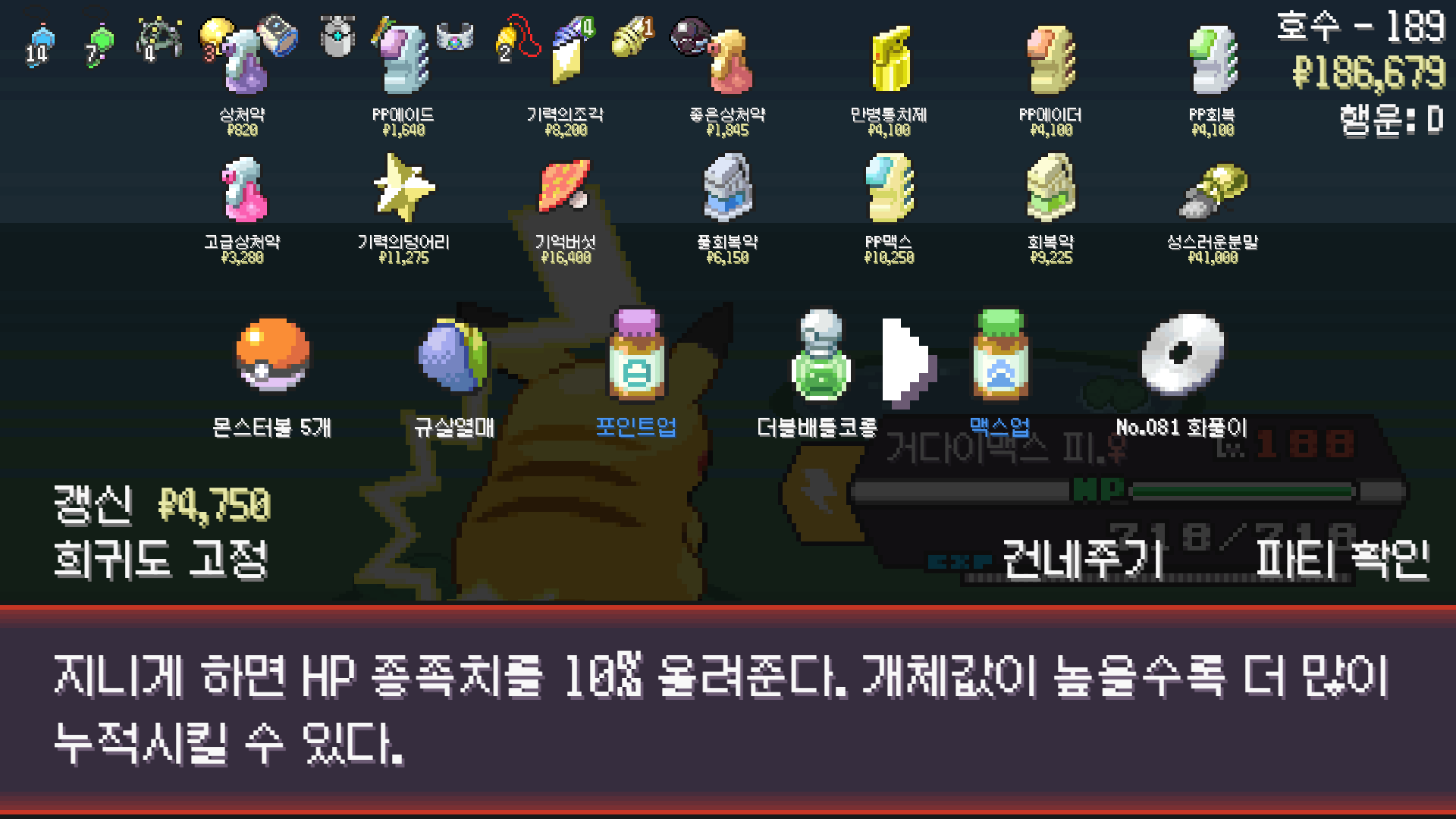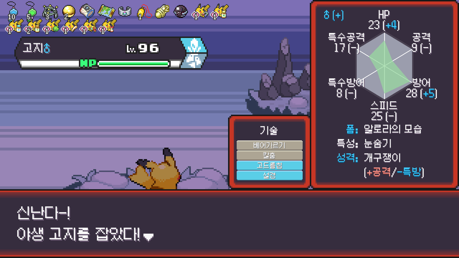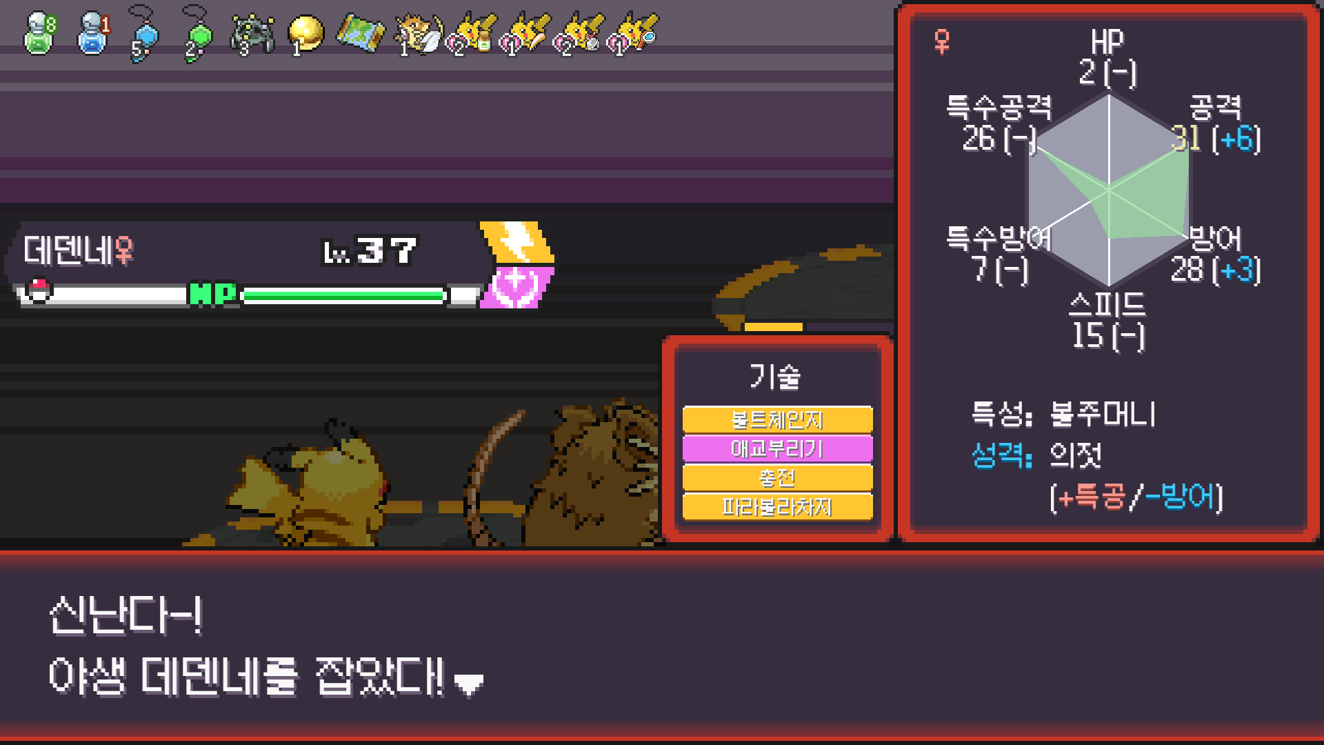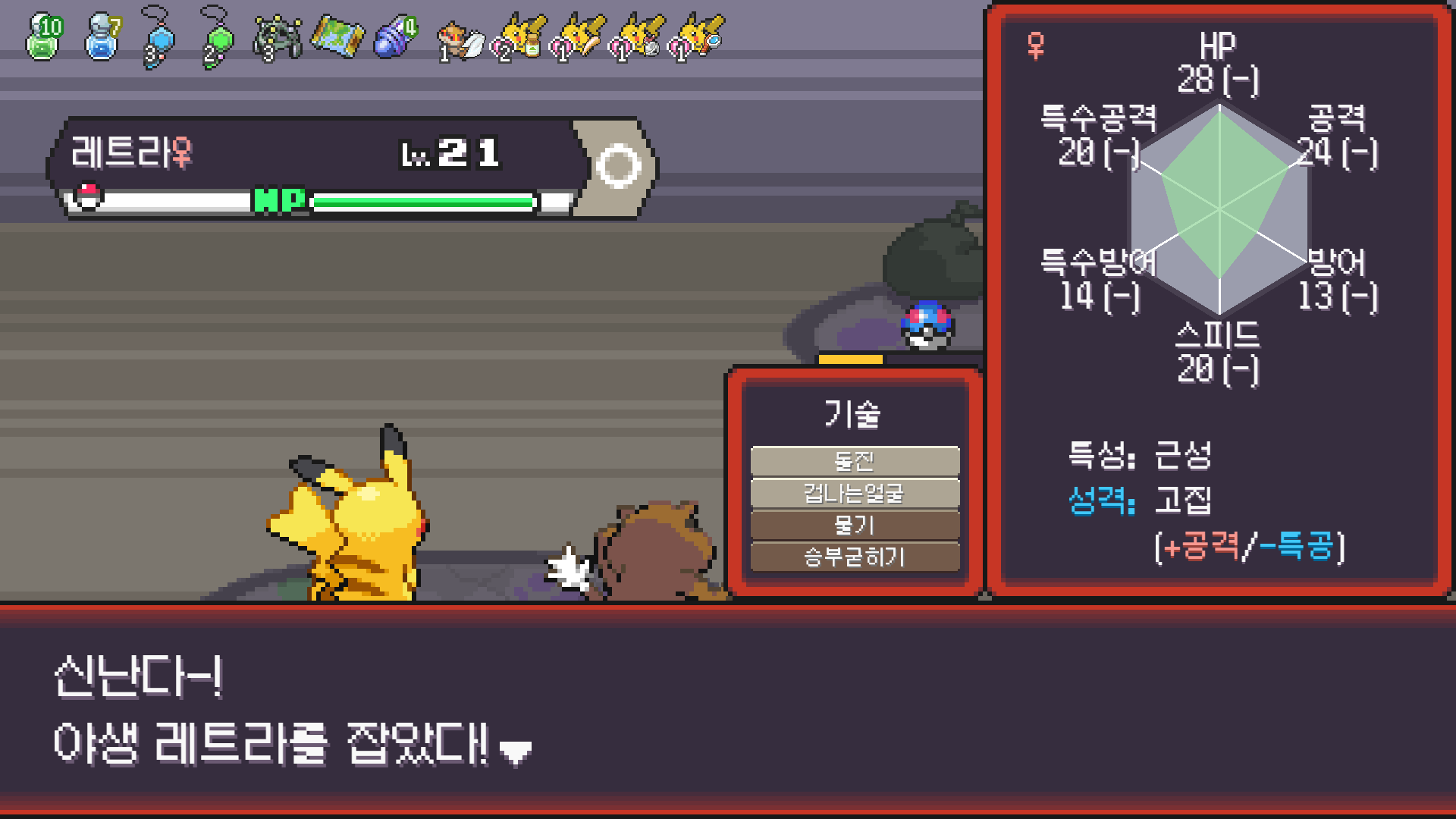 방출 1순위지만 쥐 포켓몬이 안 나올 수 있으니 성격 개조