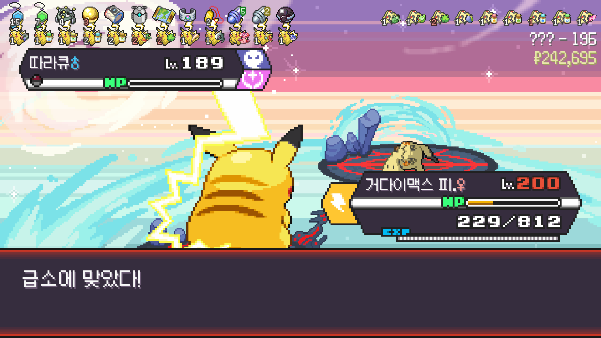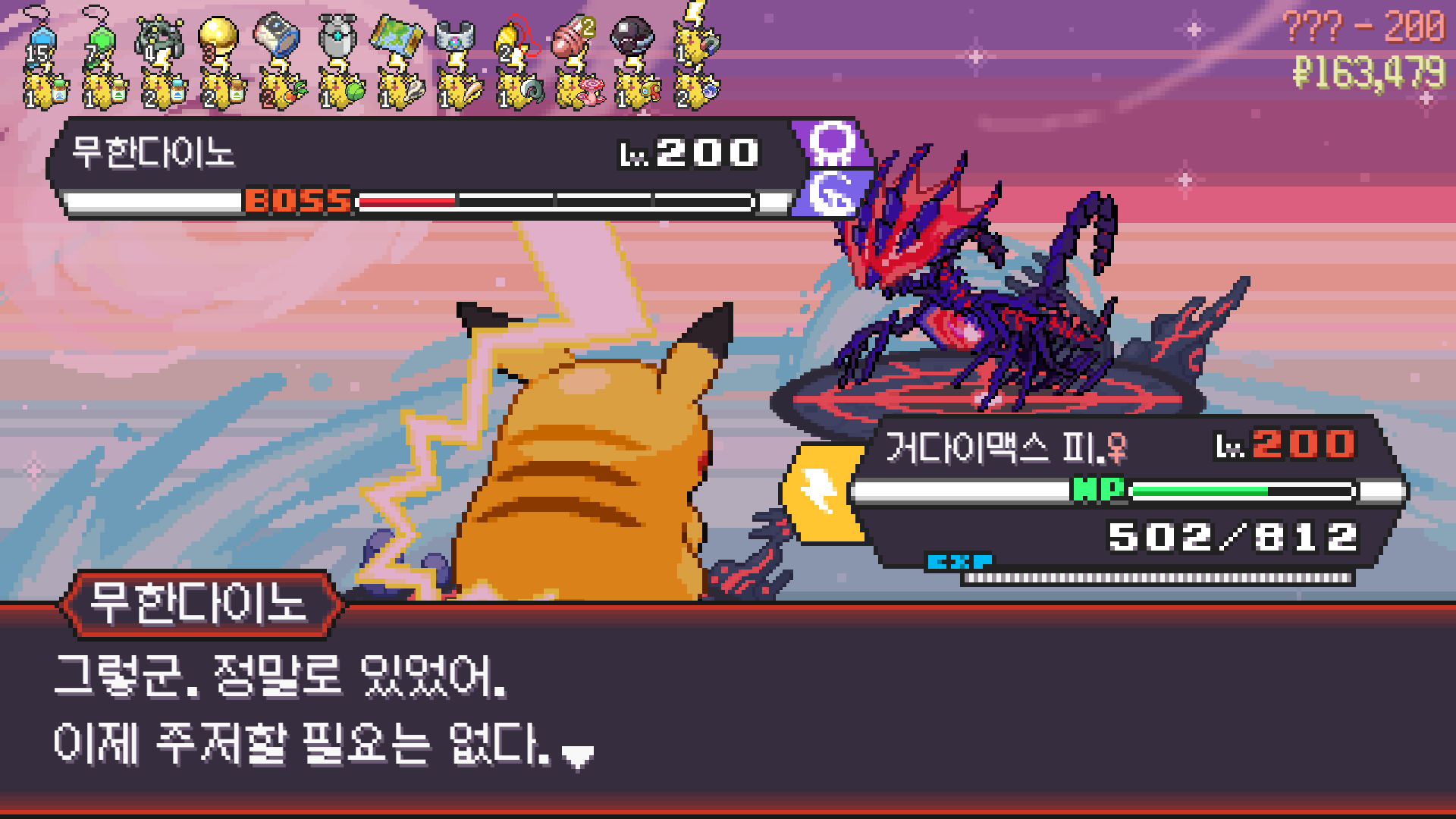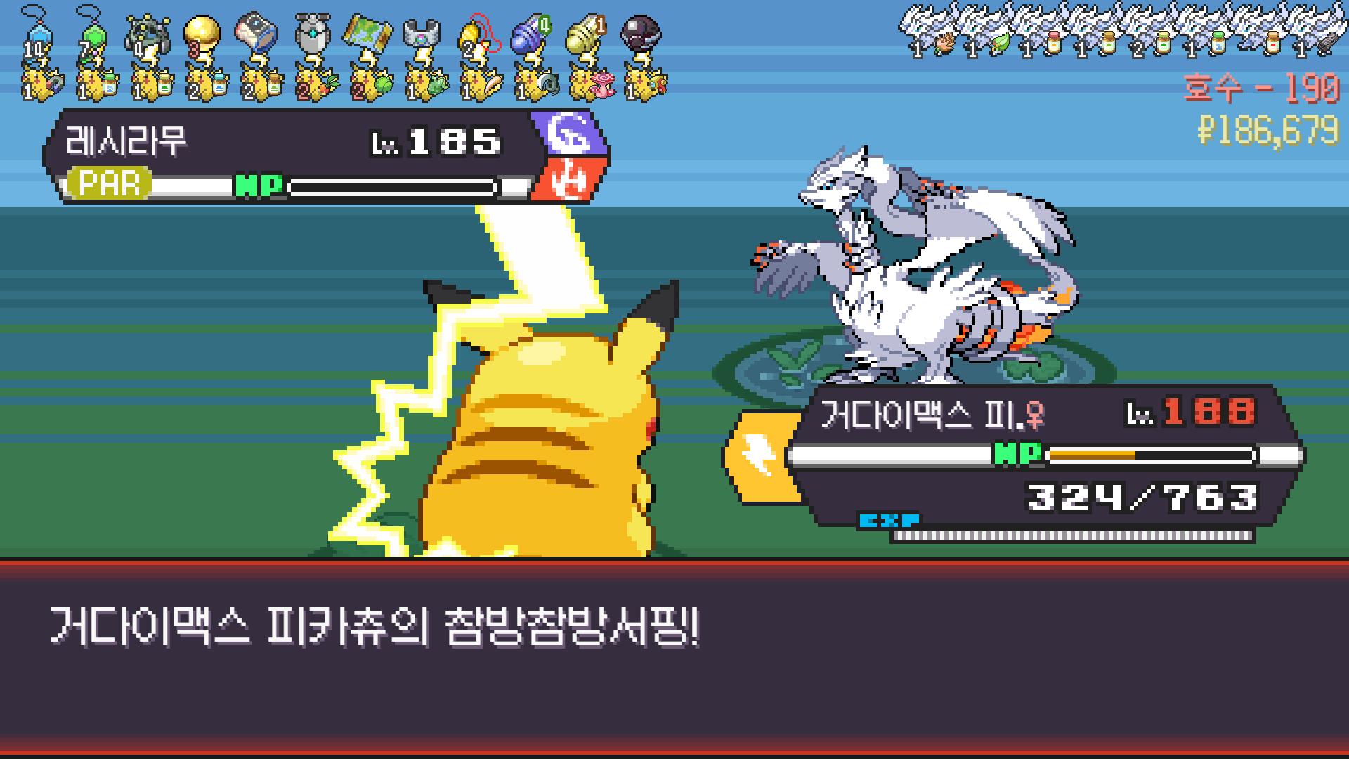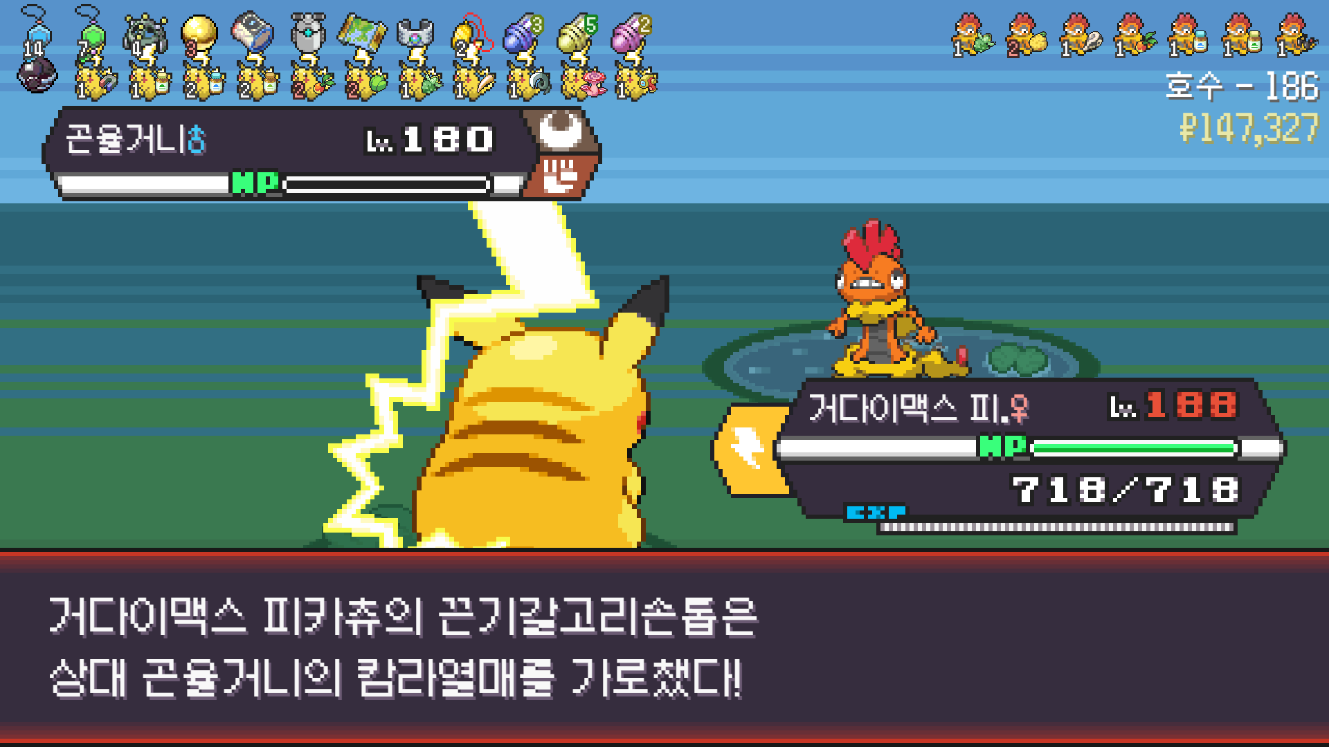 거다이맥스 후 몸도 튼튼해져서 몇 대 맞으면서 나쁜음모쓰고 다 찢어버린 에이스
