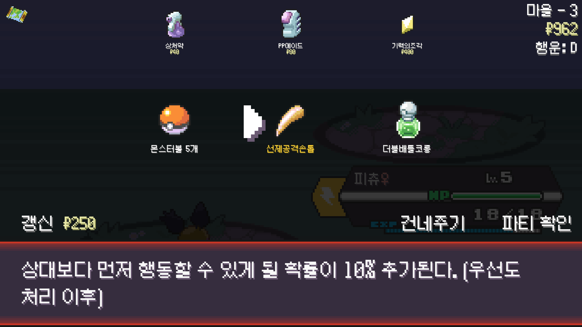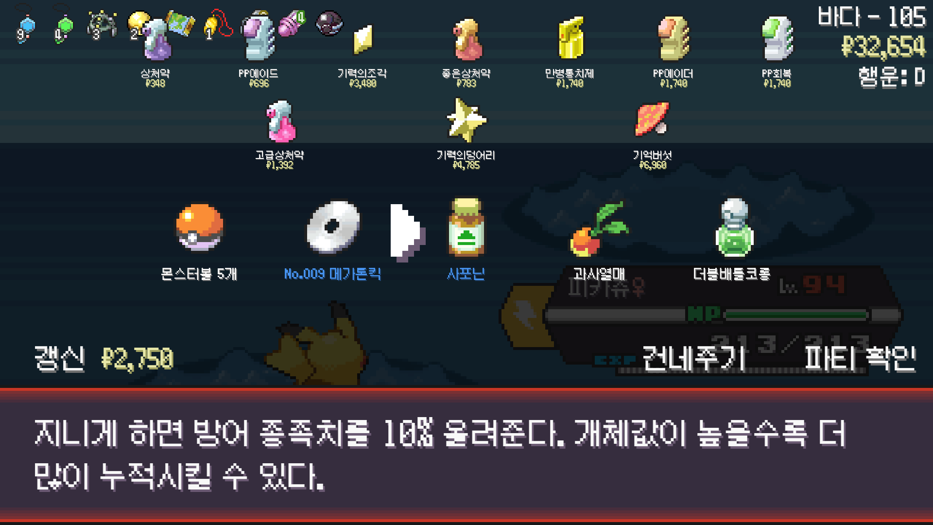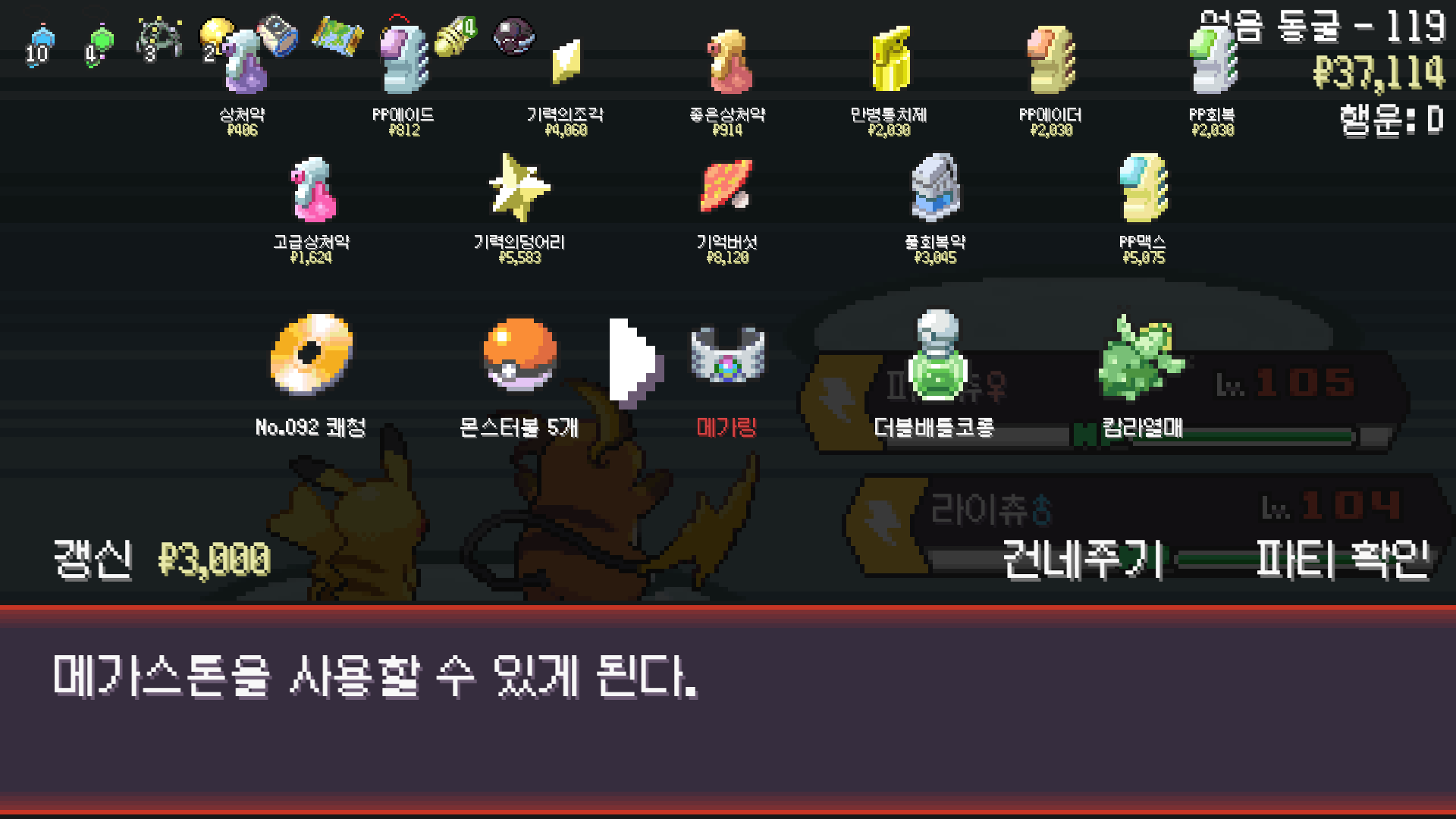 평온의 방울 3개가 아깝지만 굿바이 라이츄