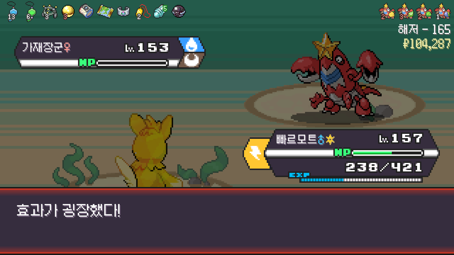 마기라스 추가해온 라이벌잡고 레트라에 화염구슬 장착